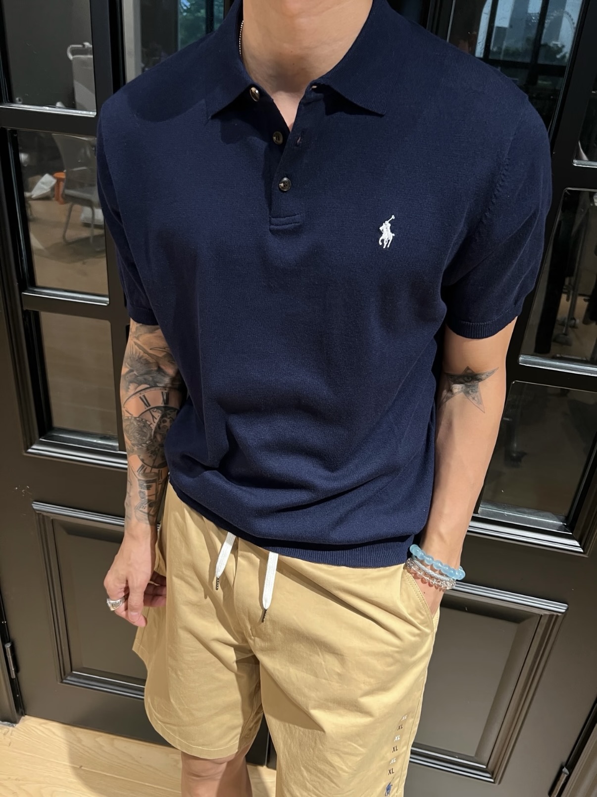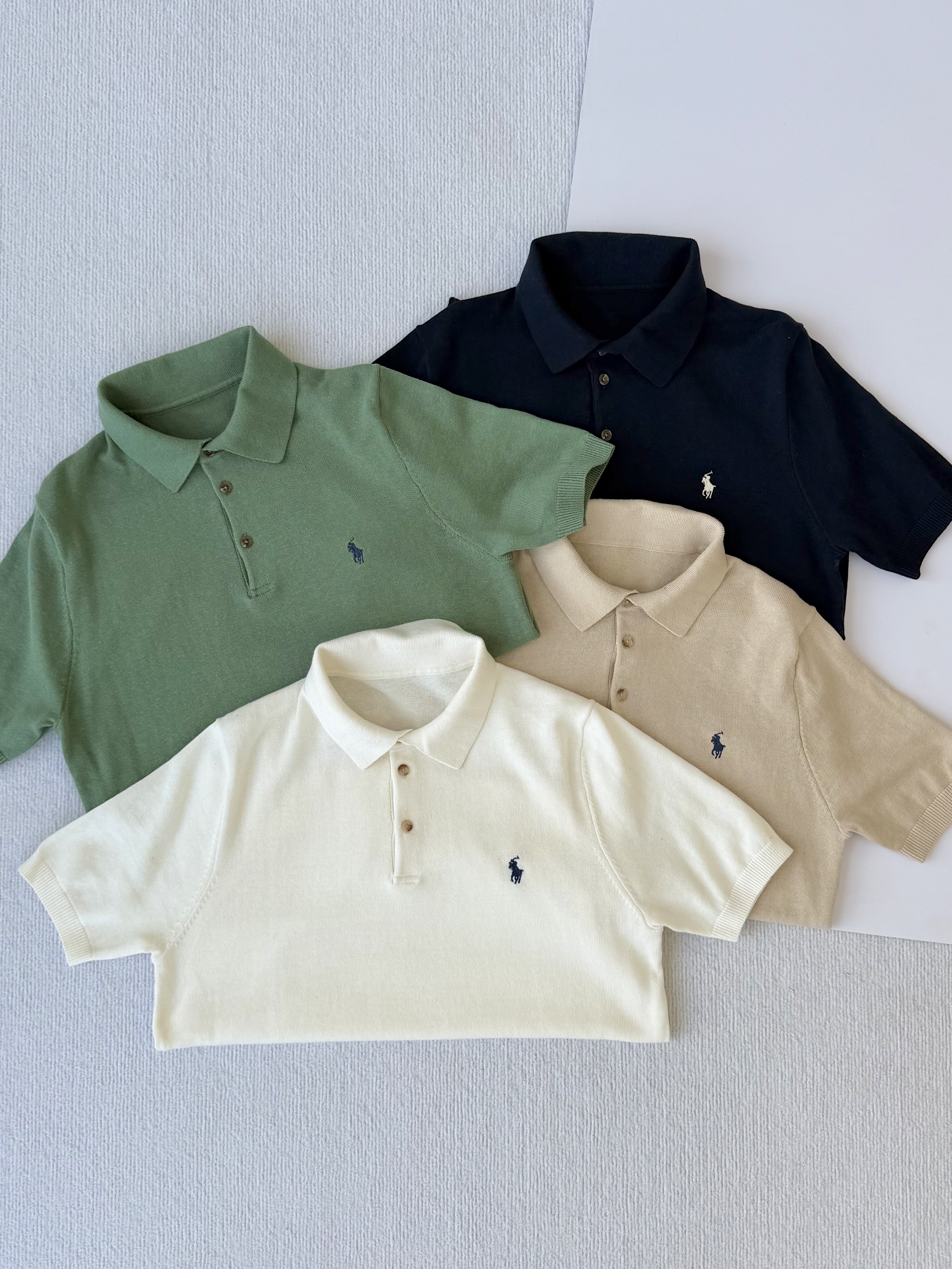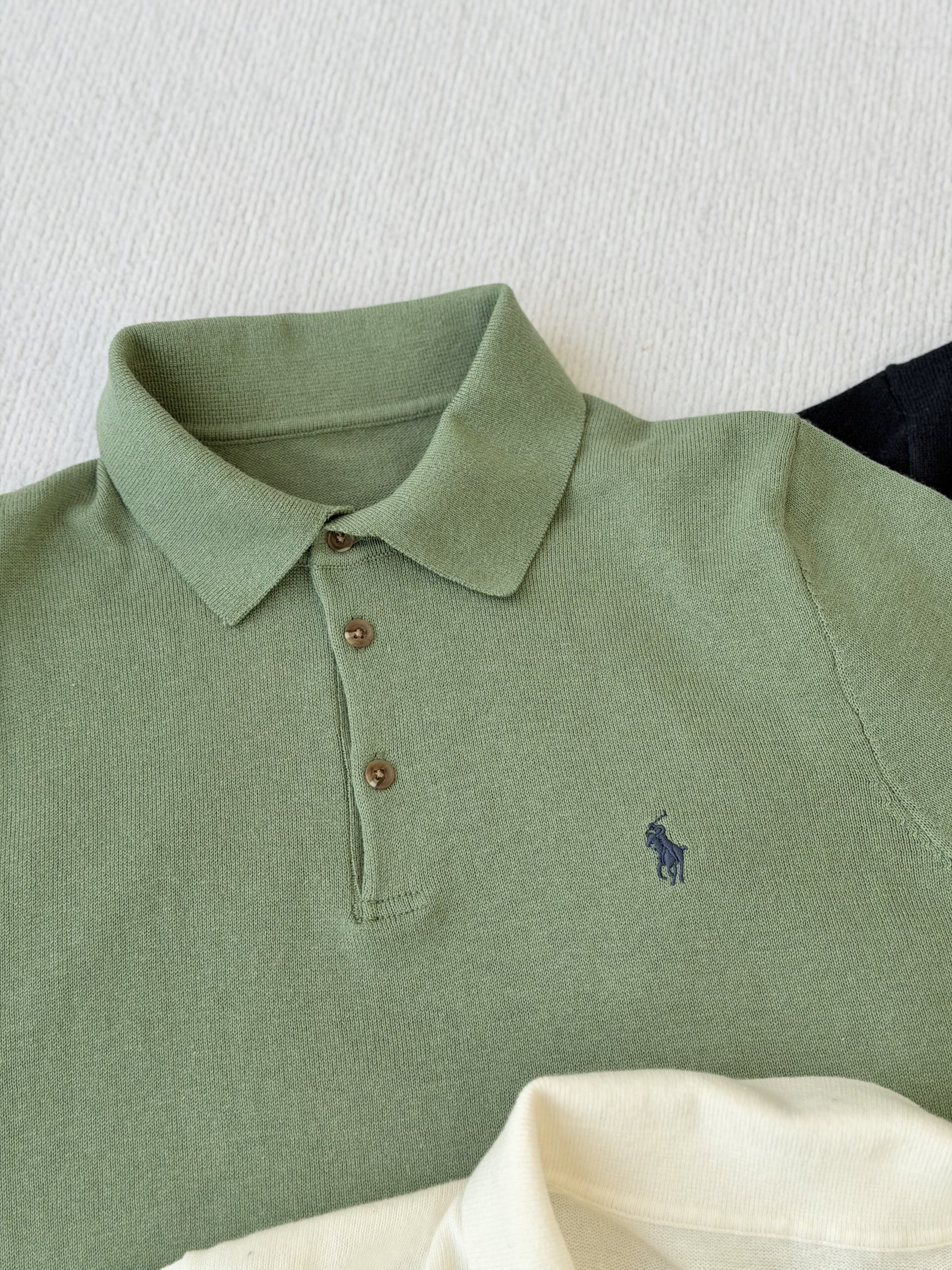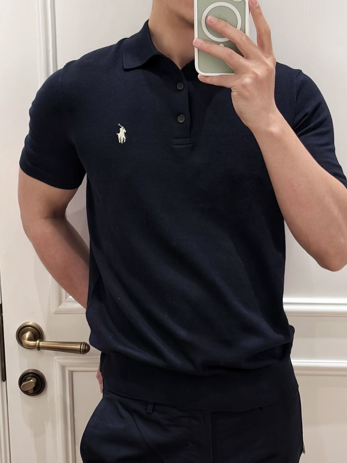 属于韩系/老钱风休闲款,主打软糯针织面料+经典翻领+小马刺绣标识,是春夏百搭的基础款