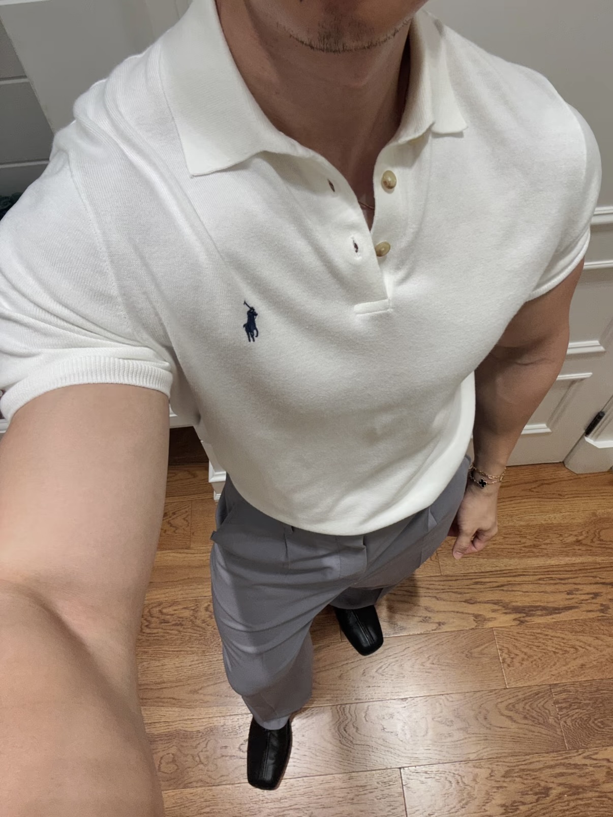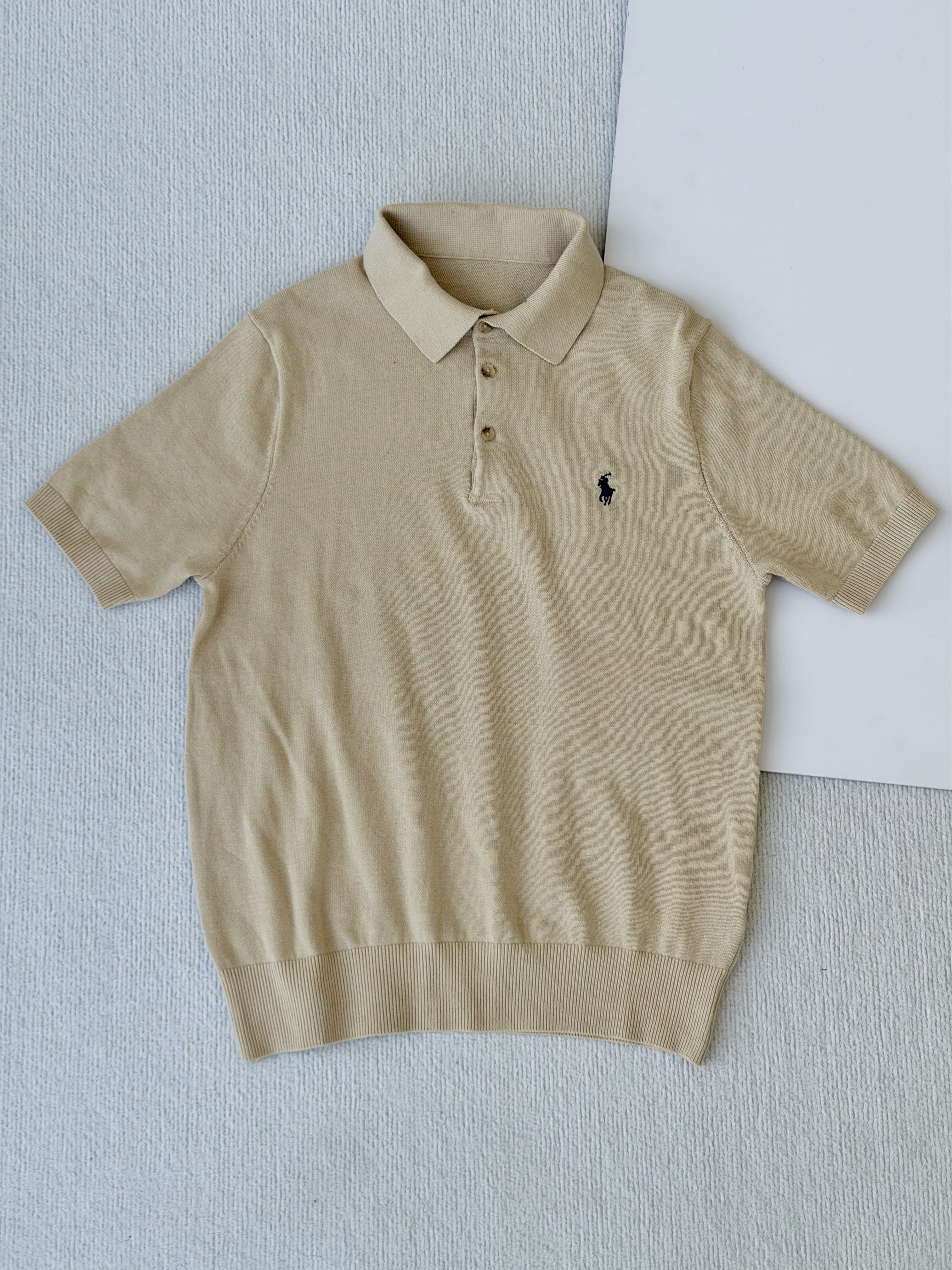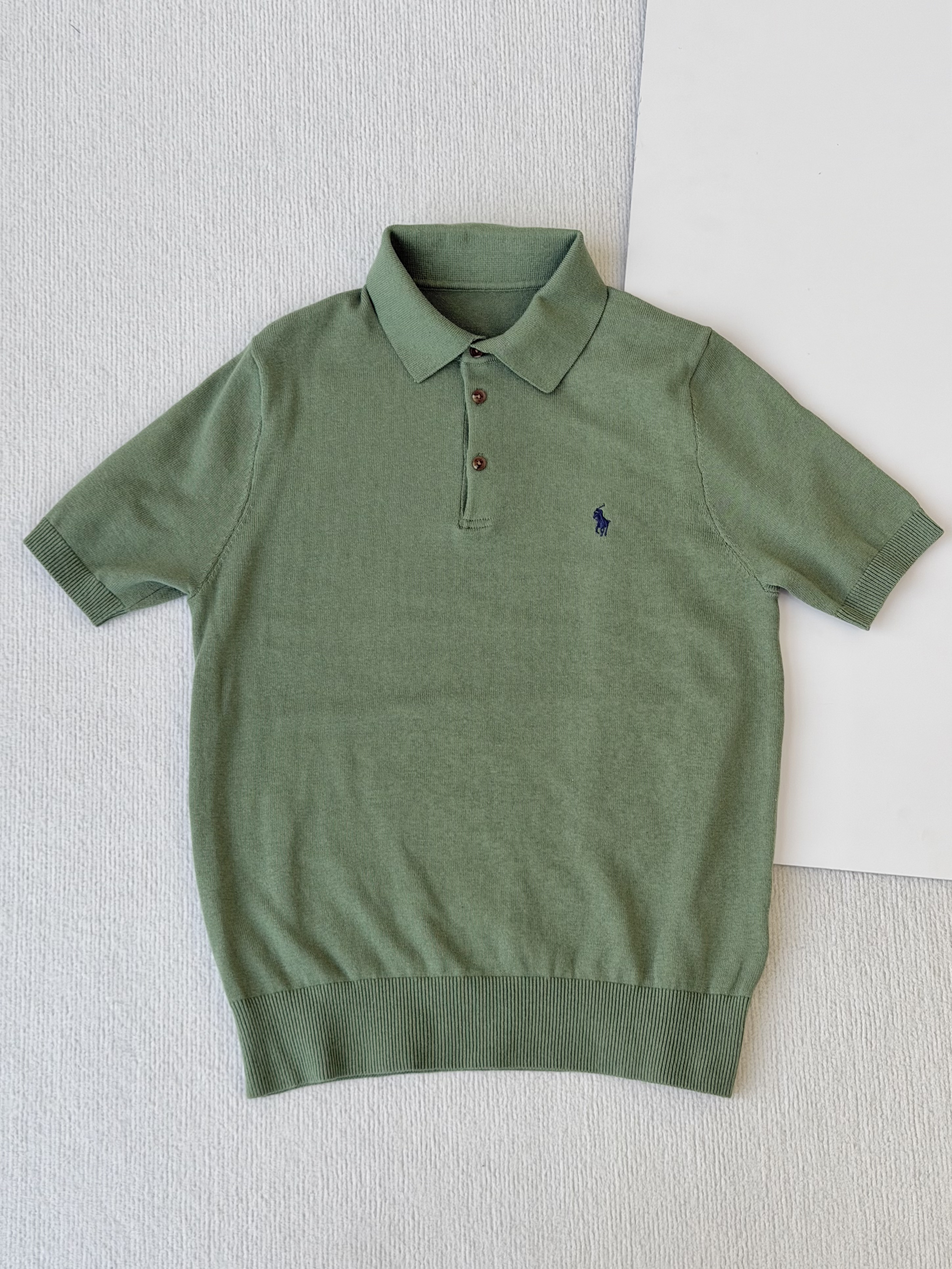 属于韩系/老钱风休闲款,主打软糯针织面料+经典翻领+小马刺绣标识,是春夏百搭的基础款