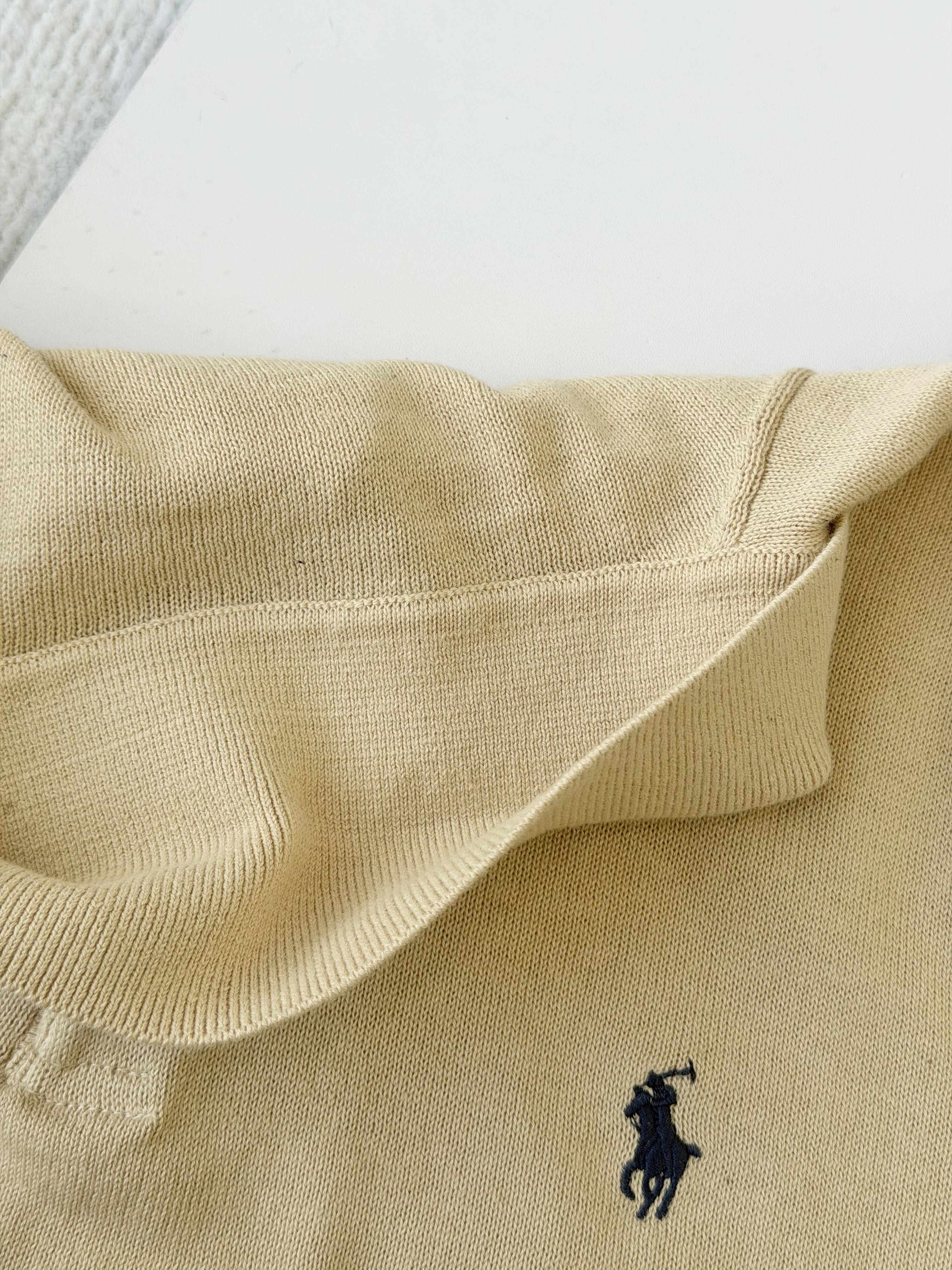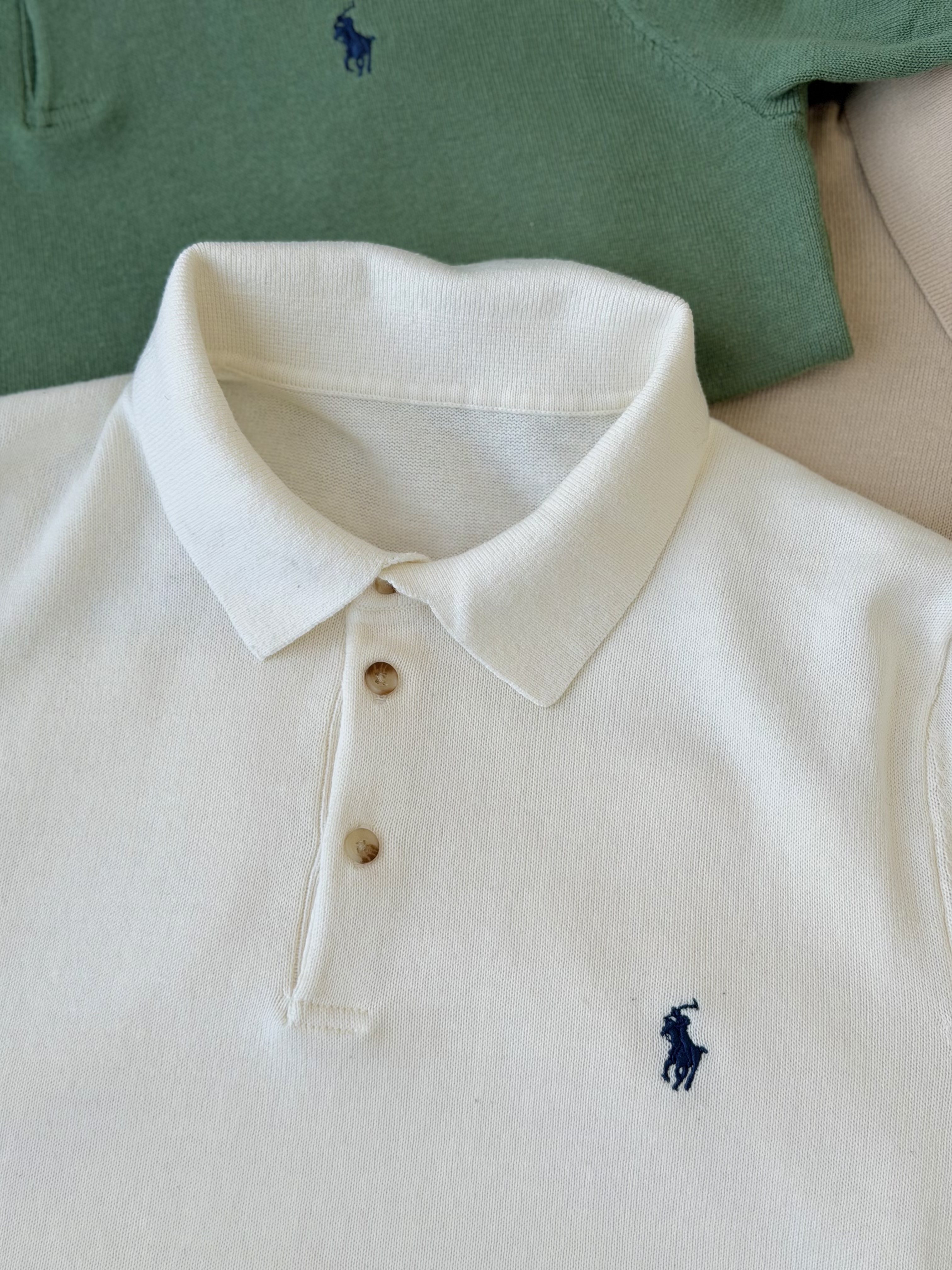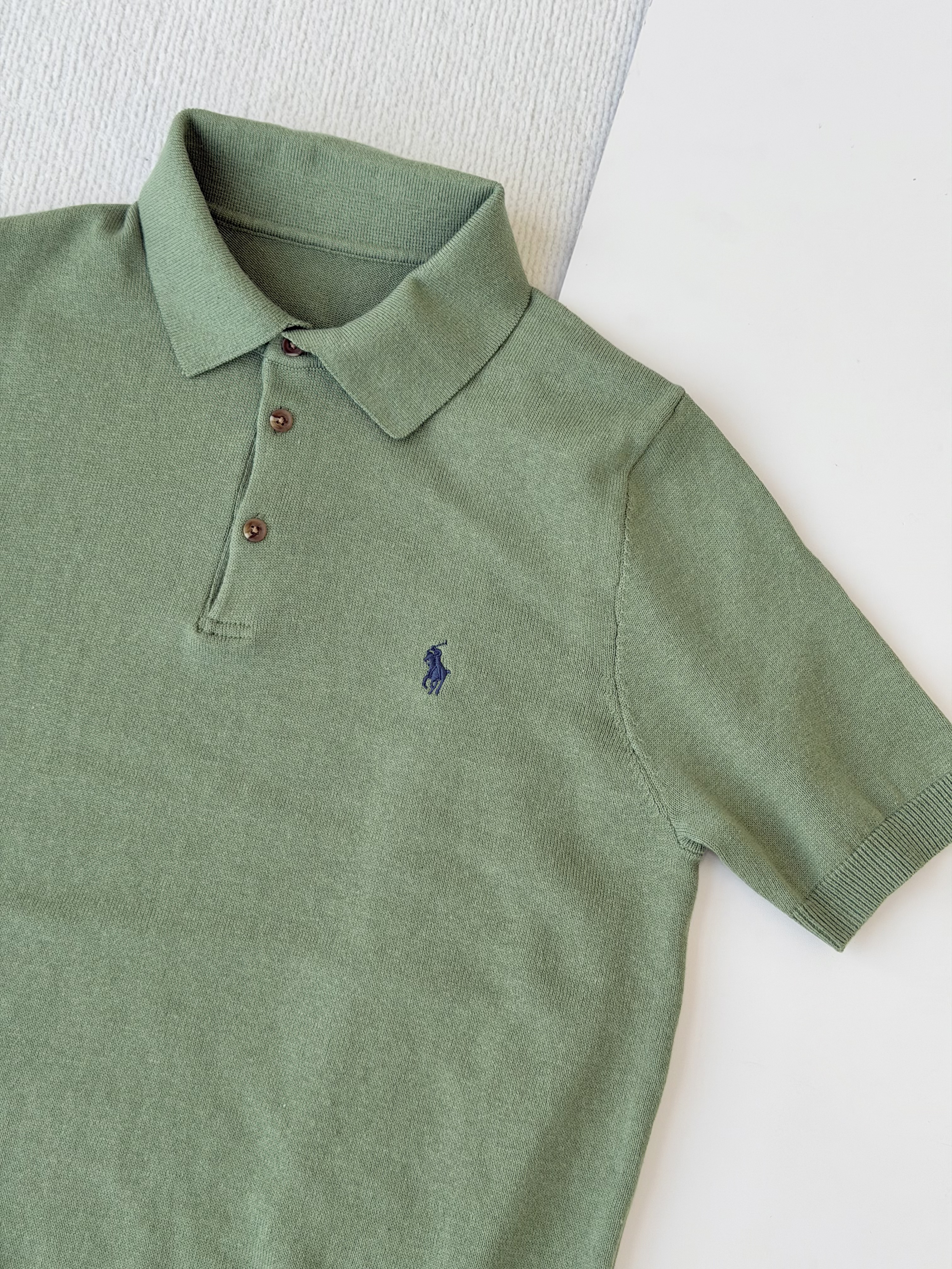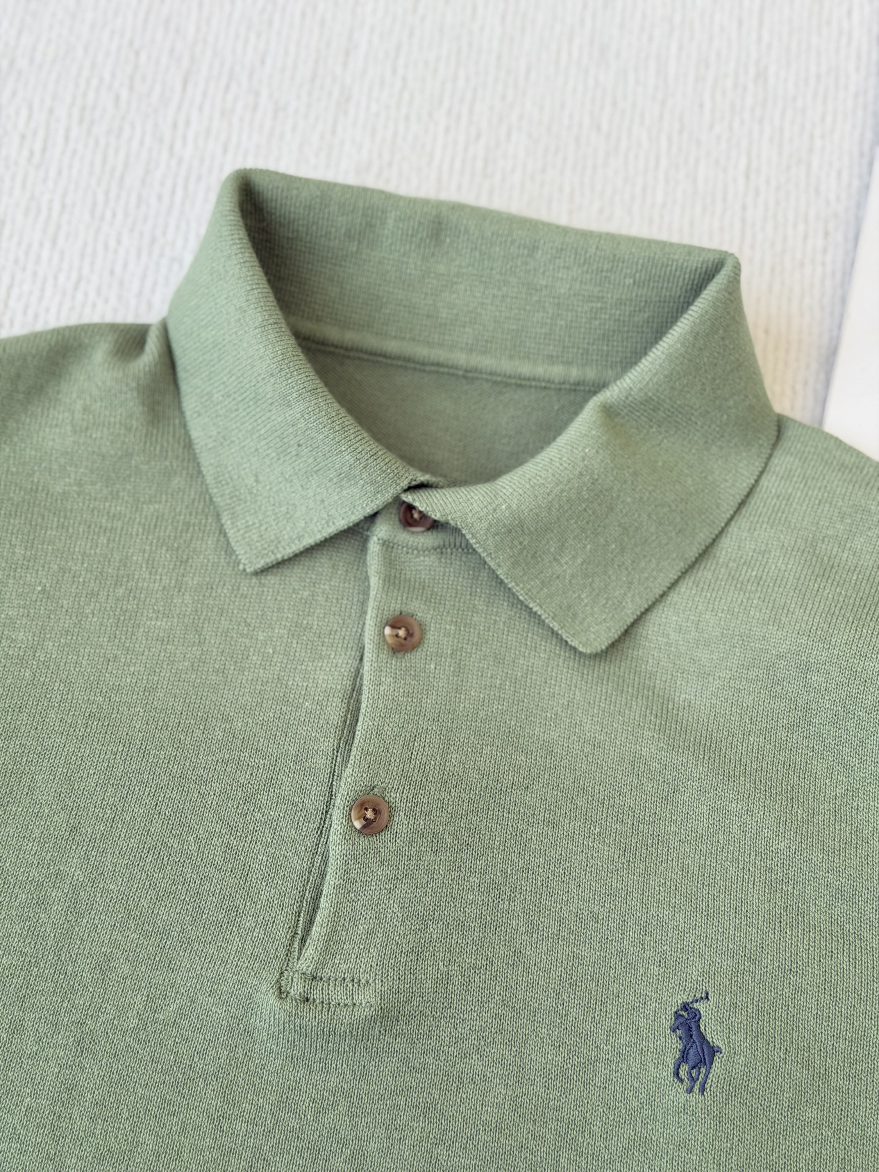 属于韩系/老钱风休闲款,主打软糯针织面料+经典翻领+小马刺绣标识,是春夏百搭的基础款