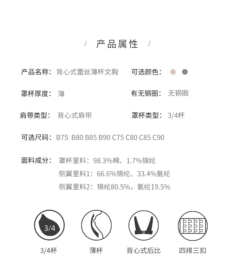 雅黛丽内衣女无钢圈侧收舒适文胸背心式薄杯蕾丝边胸罩DYW0687