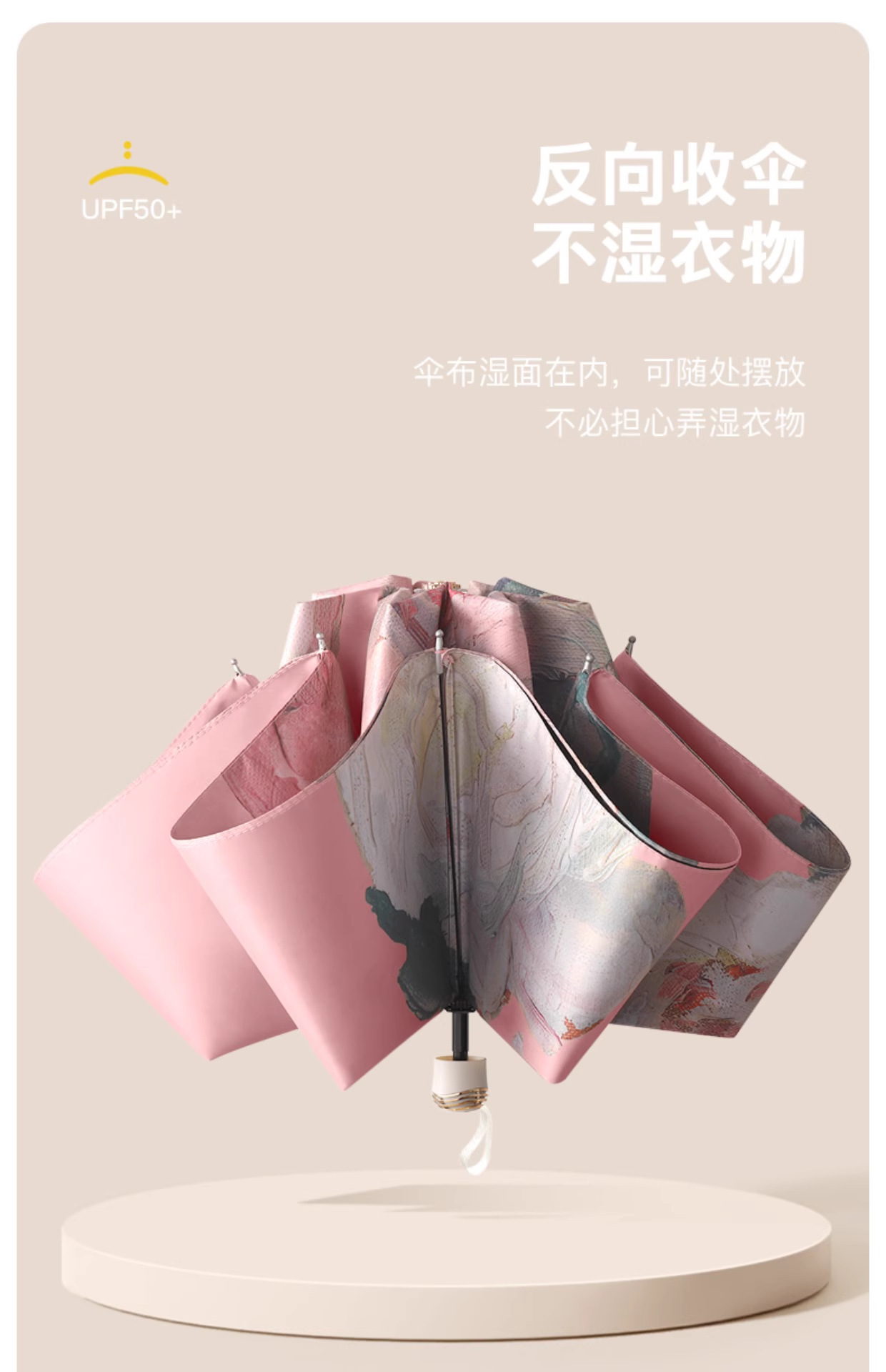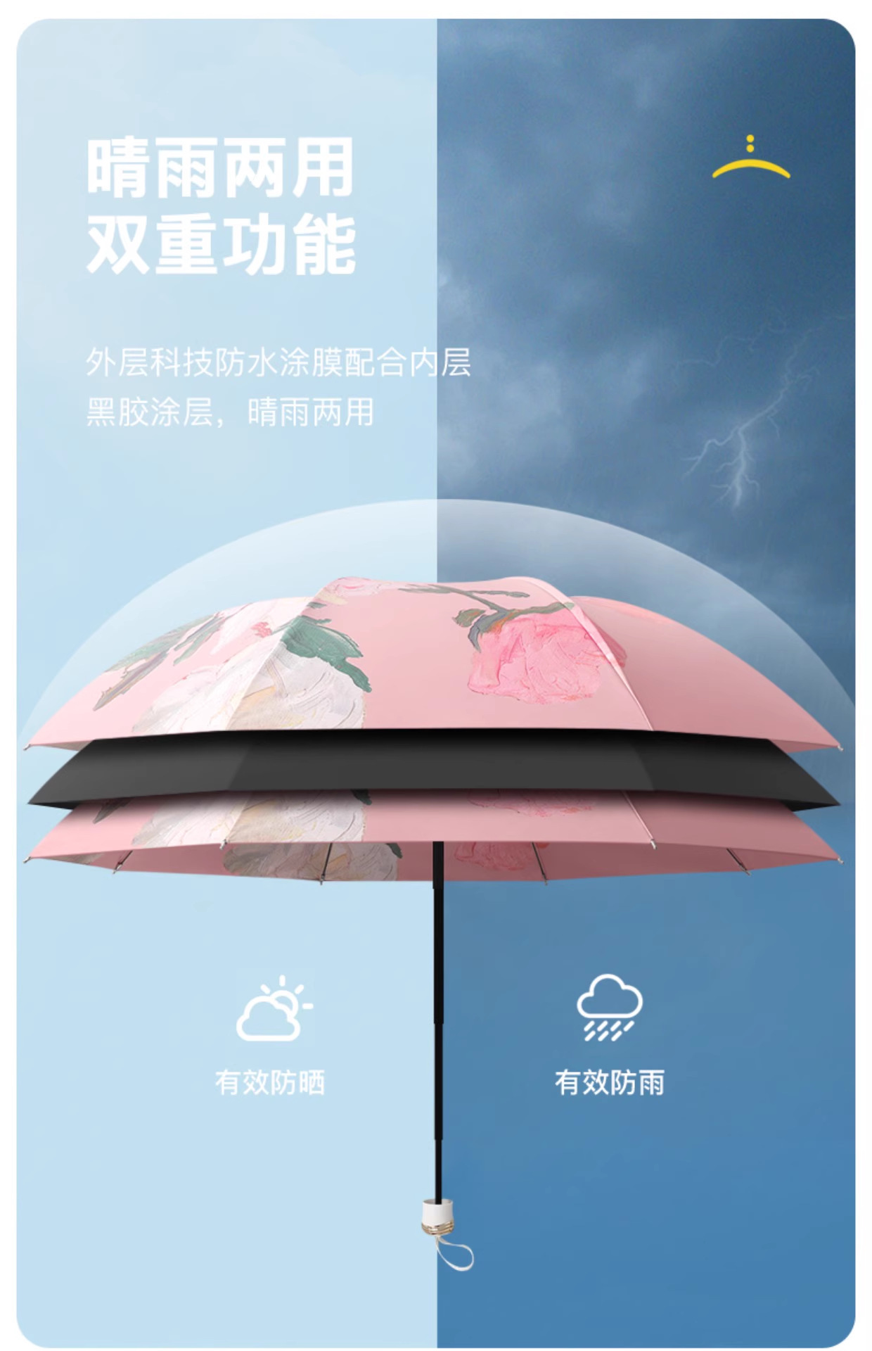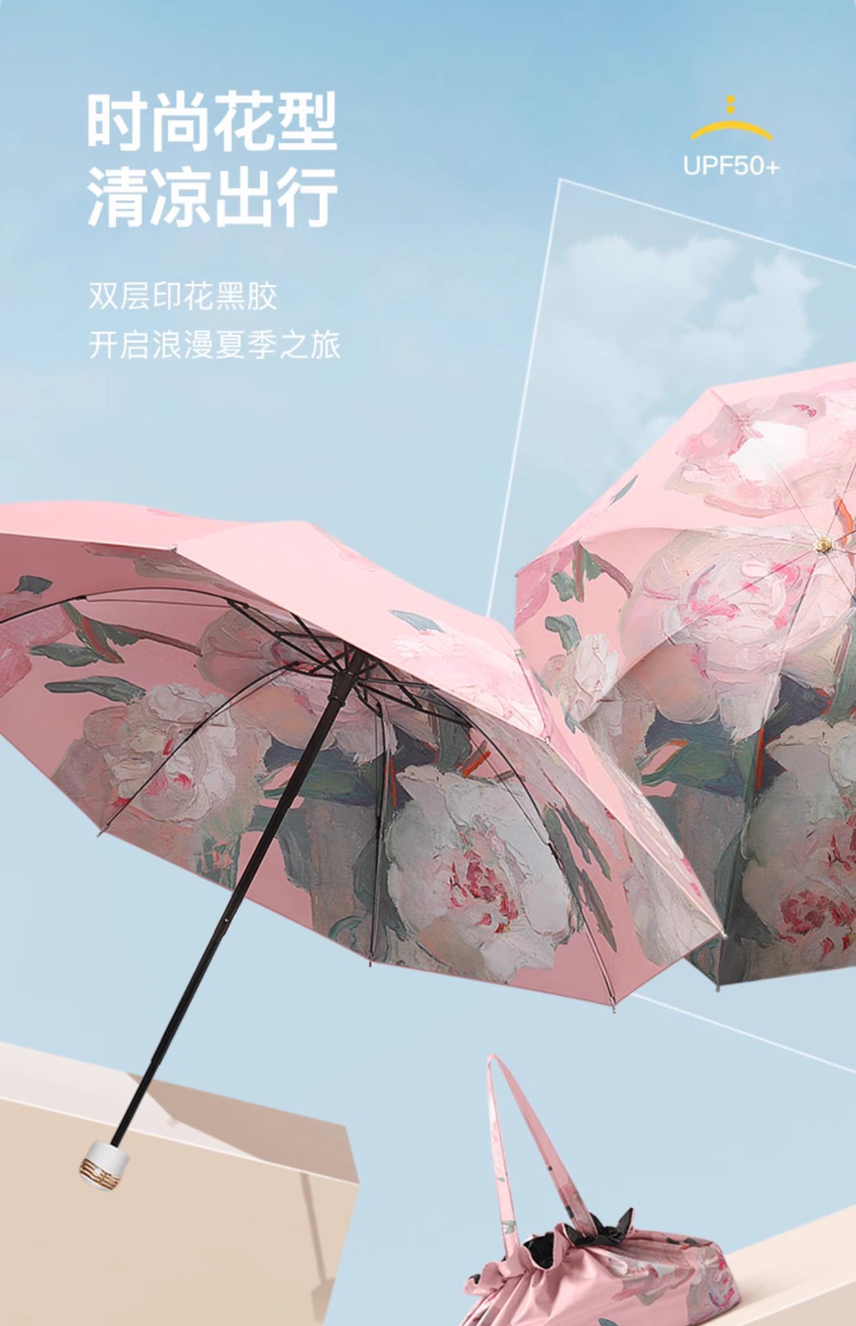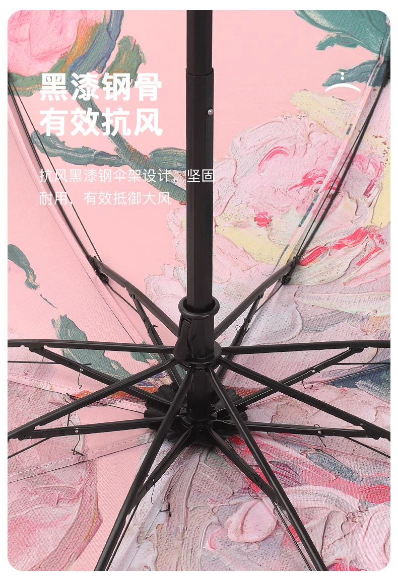 【颜值爆棚❗️UPF50+黑胶晴雨伞】晴雨两用,防紫外线,遇水成珠,雨伞大号自动女遮阳伞八骨油画L