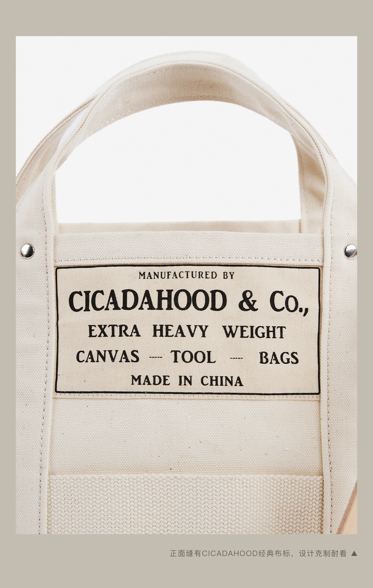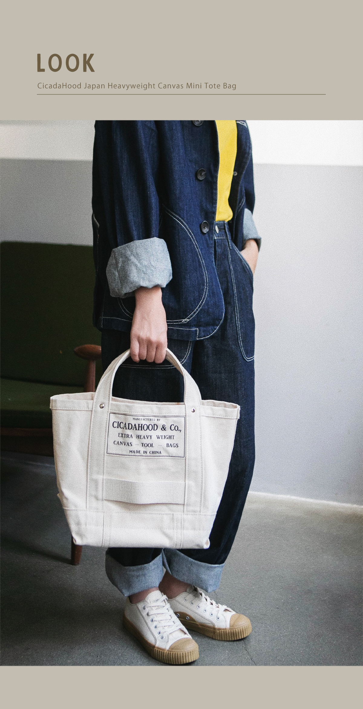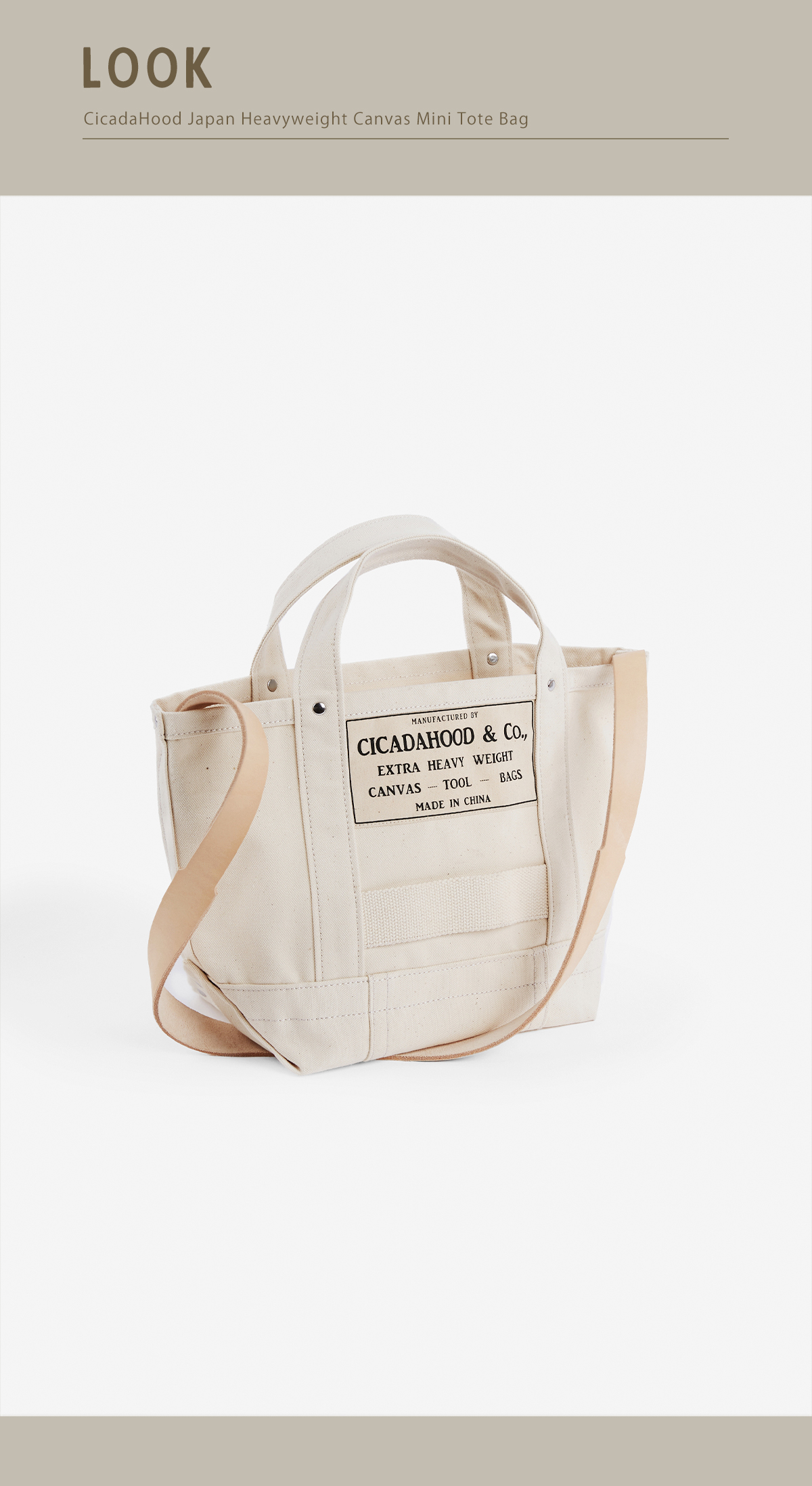 Cicadahood日本重磅帆布迷你Tote袋 配植鞣皮肩带 复古工装帆布包