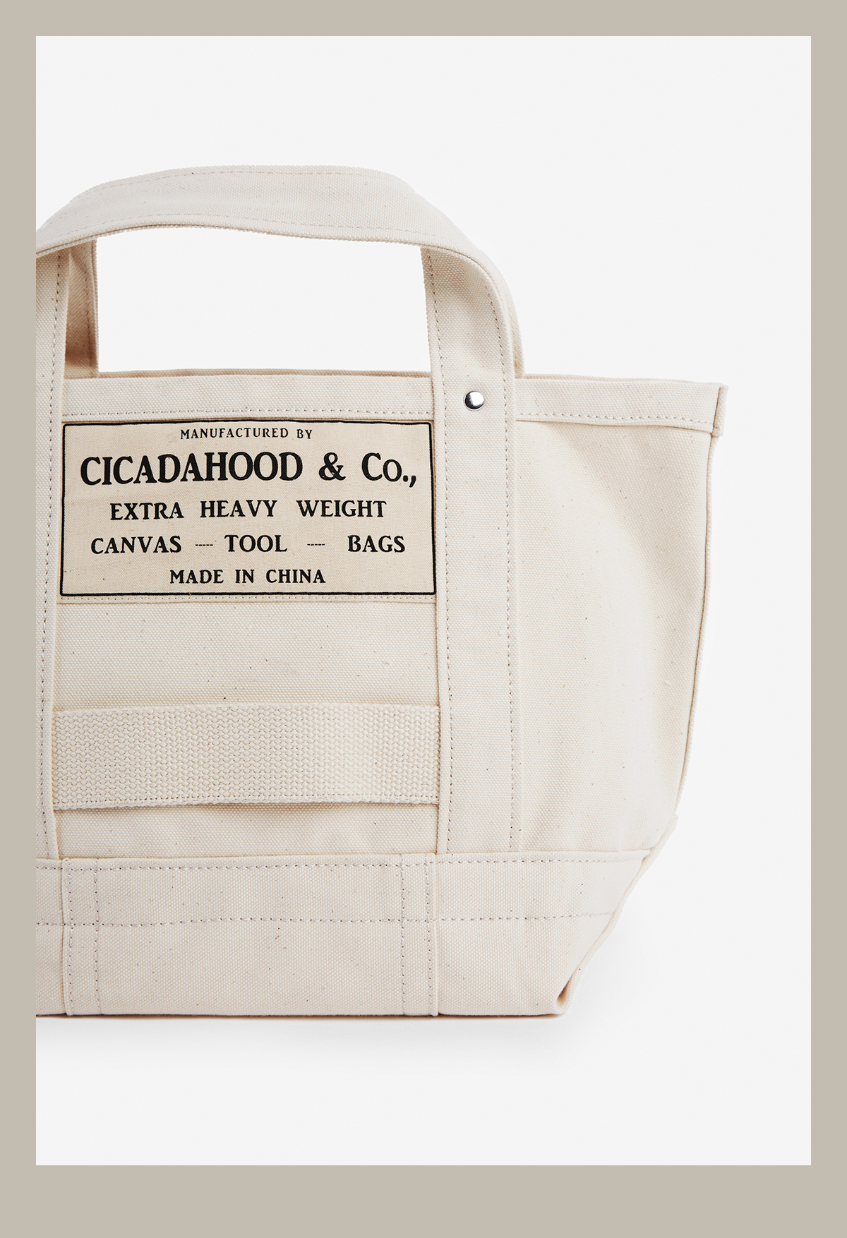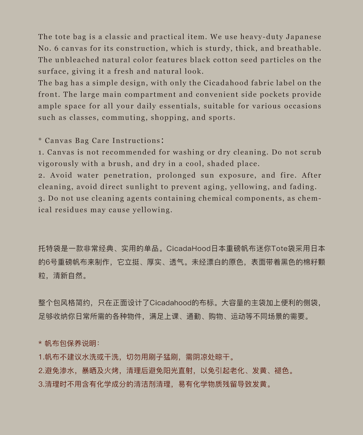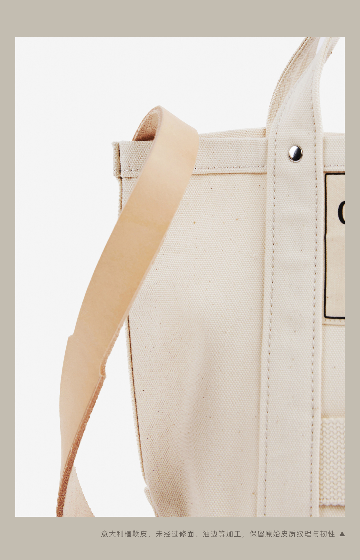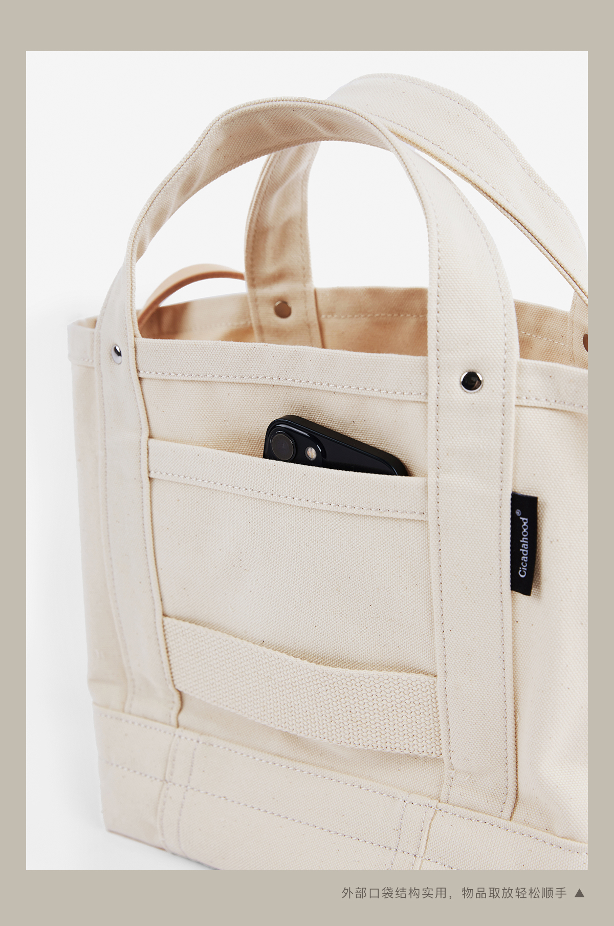 Cicadahood日本重磅帆布迷你Tote袋 配植鞣皮肩带 复古工装帆布包