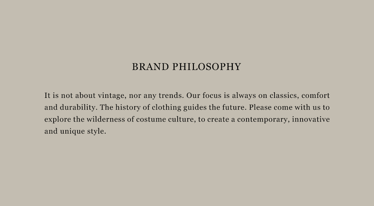 - 不局限于复古,更不会逐流于潮流,我们想挣脱快世界,关注永恒的经典、舒适和耐用,用对物质的极致追求,在荒芜之地饱满我们的内心,缓慢地得到一样东西是一种恩赐,品位从来不是速度与激情的产物。