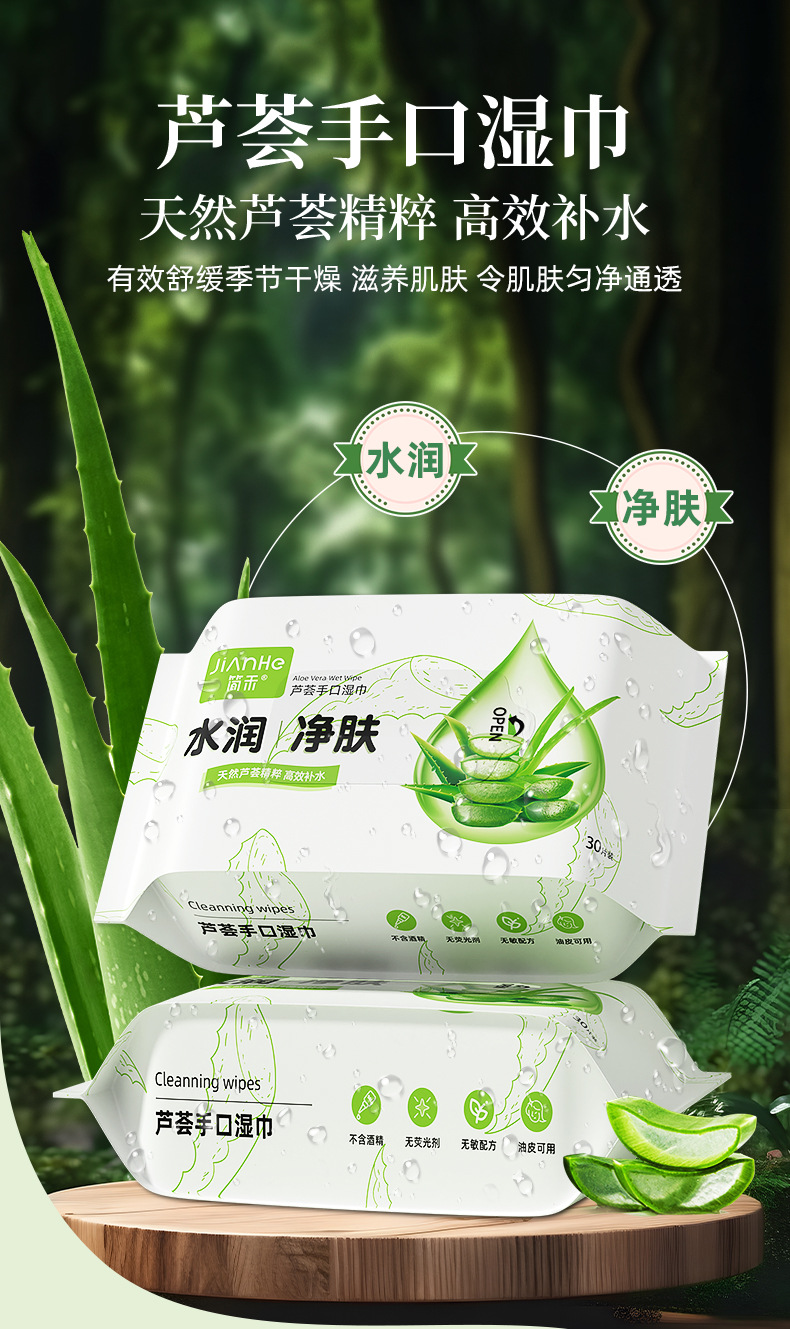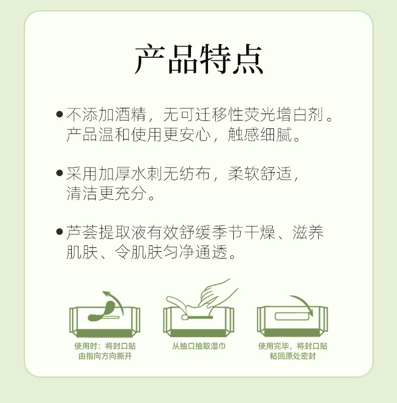 【肌肤“急救”!芦荟精粹水润湿巾】纯水保湿,舒缓滋养,均衡水油,清爽肌肤,手口可用!净肤补水清洁湿纸巾祛油清爽洁肤学生湿巾纸便携包装