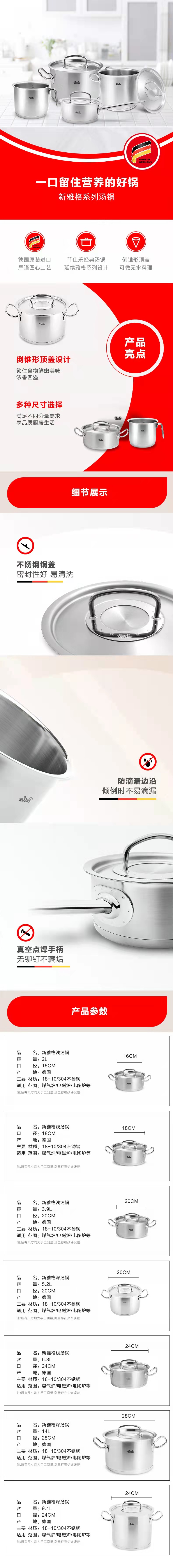 【春上新】10楼菲仕乐 德国原装进口 新雅格系列20厘米汤锅,吊牌价3180元 活动价2080元