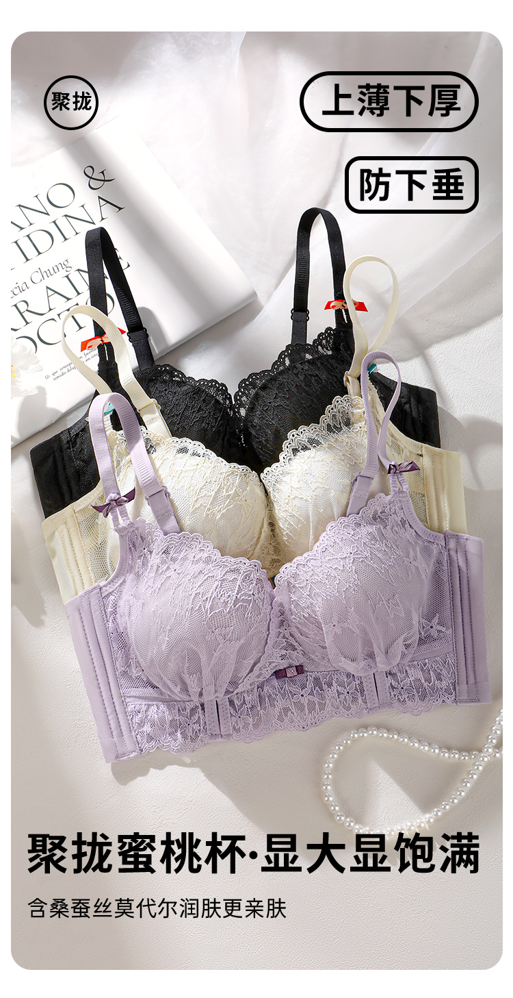 【298选3】A2-💟【70AB-85AB】【莫代尔桑蚕丝杯 小胸聚拢】性感蕾丝内衣聚拢收副乳调整型文胸 蜜糖甜梦
