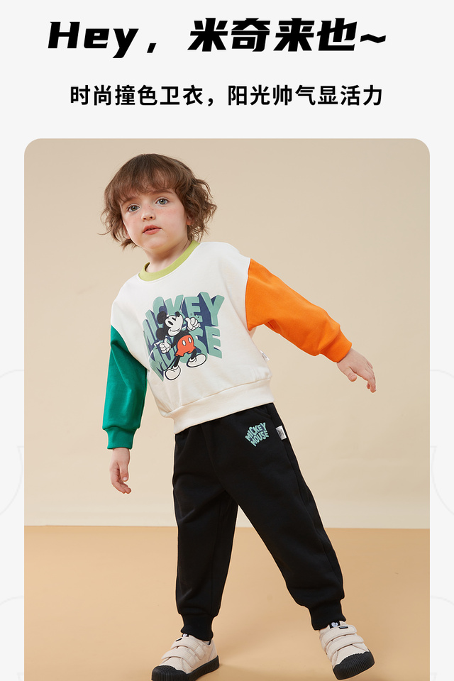 迪士尼(Disney)童装男童套装卡通米奇撞色卫衣套装舒适柔软秋新品ZD3CT011
