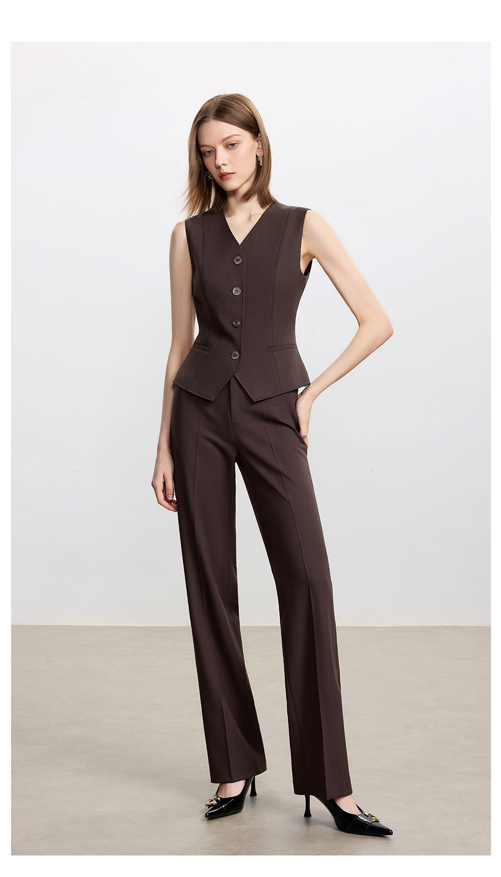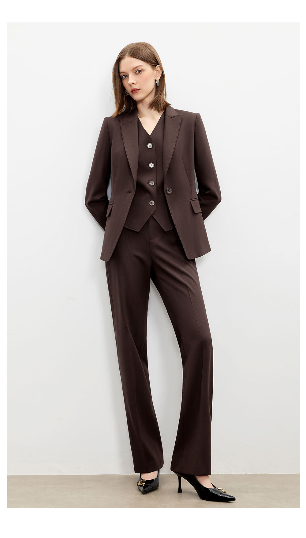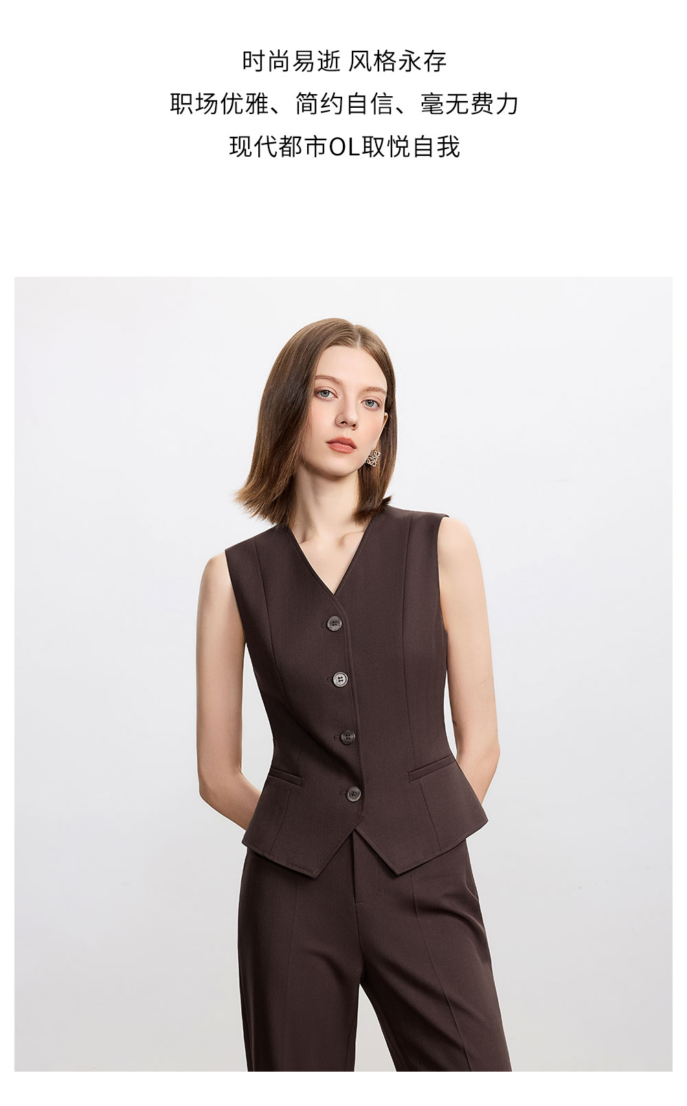 AD时尚通勤马甲职业装2025新款高级感深棕色羊毛西装裤气质两件套