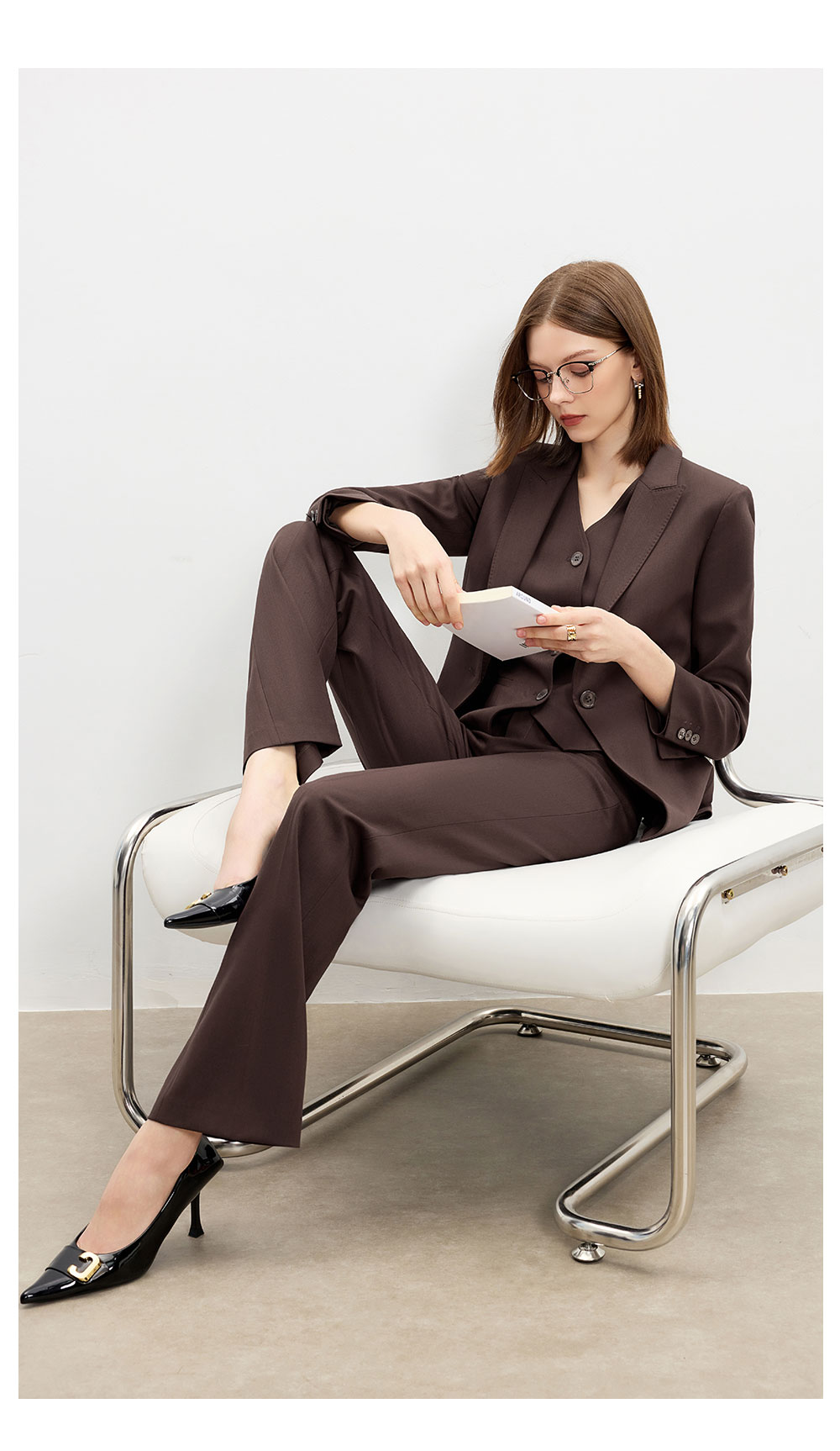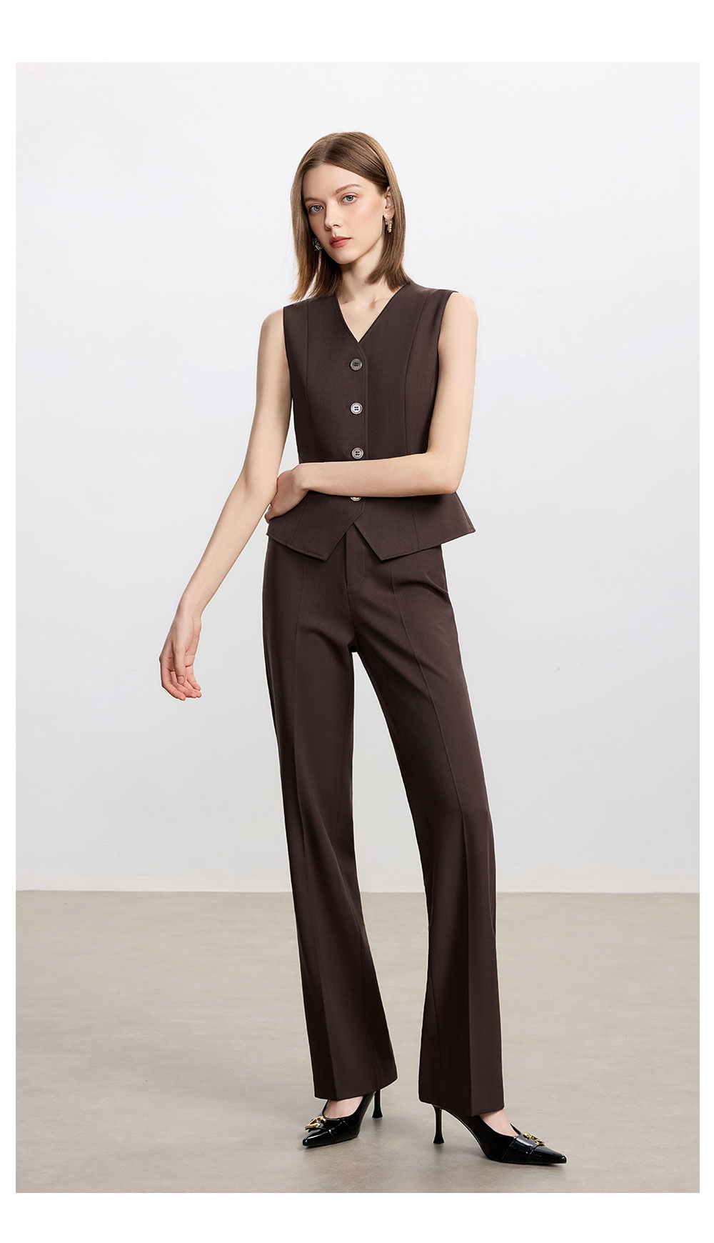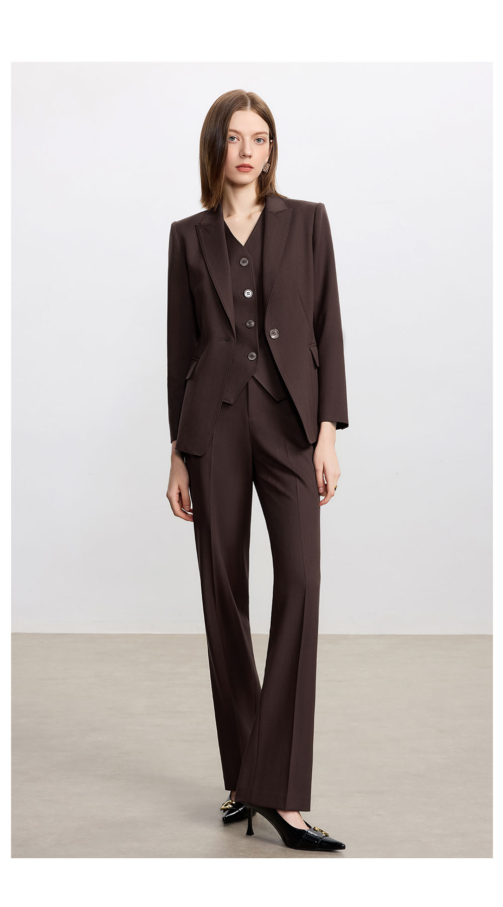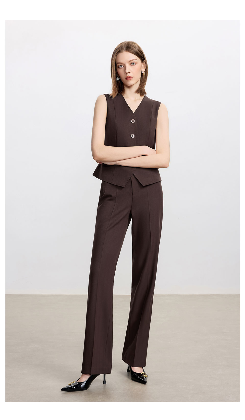 AD时尚通勤马甲职业装2025新款高级感深棕色羊毛西装裤气质两件套