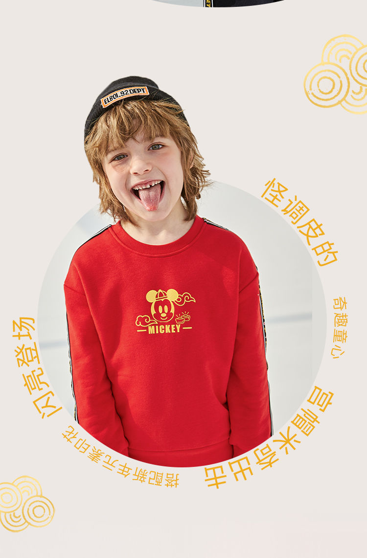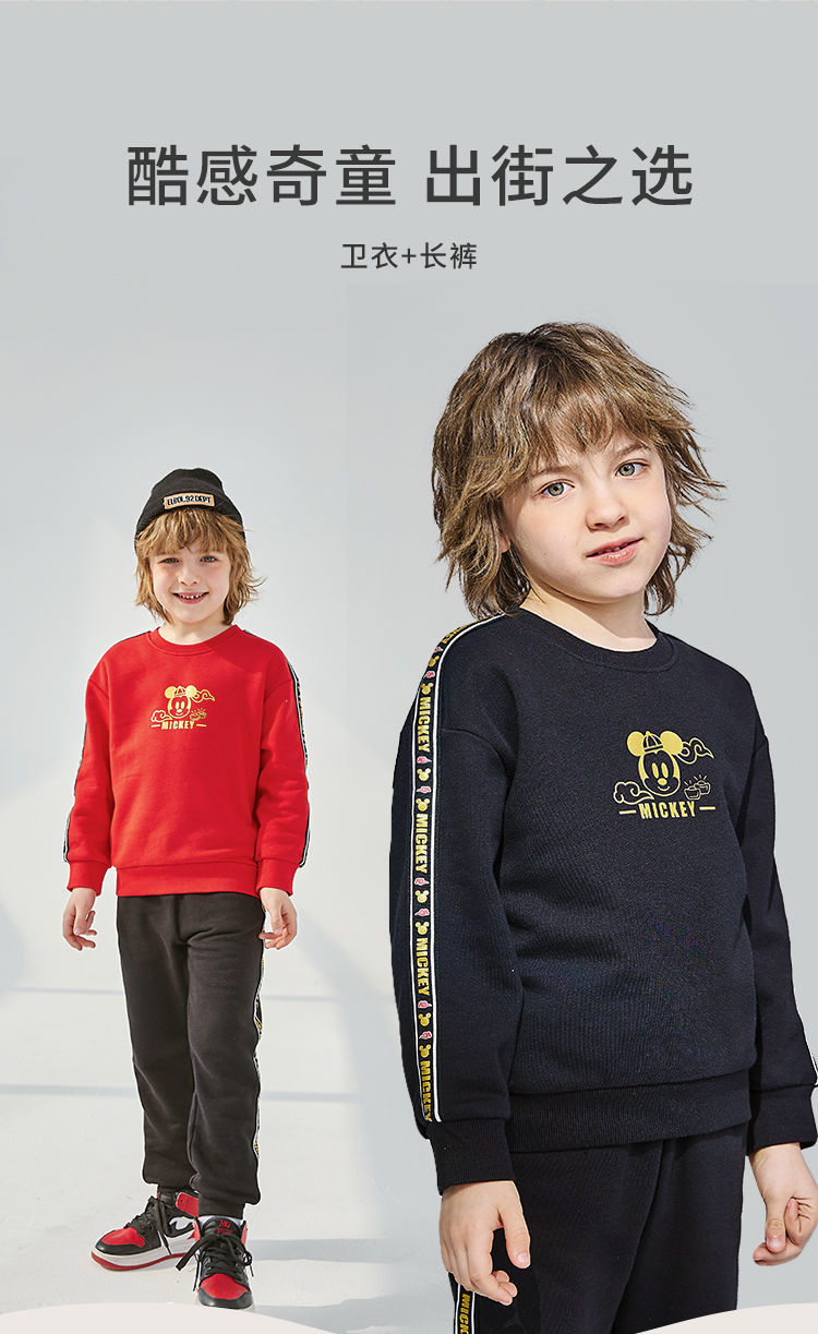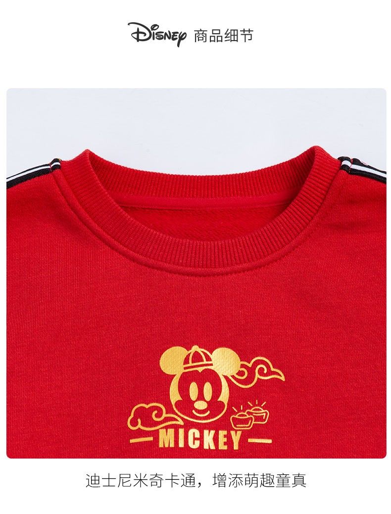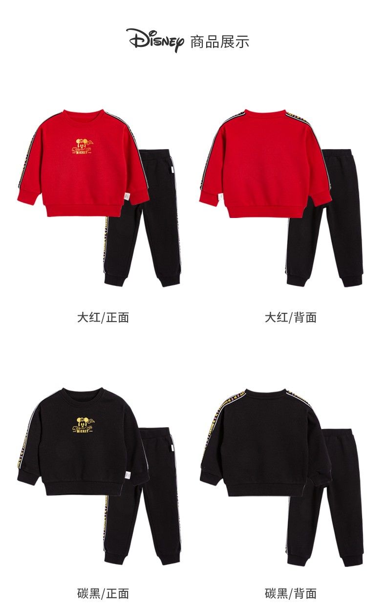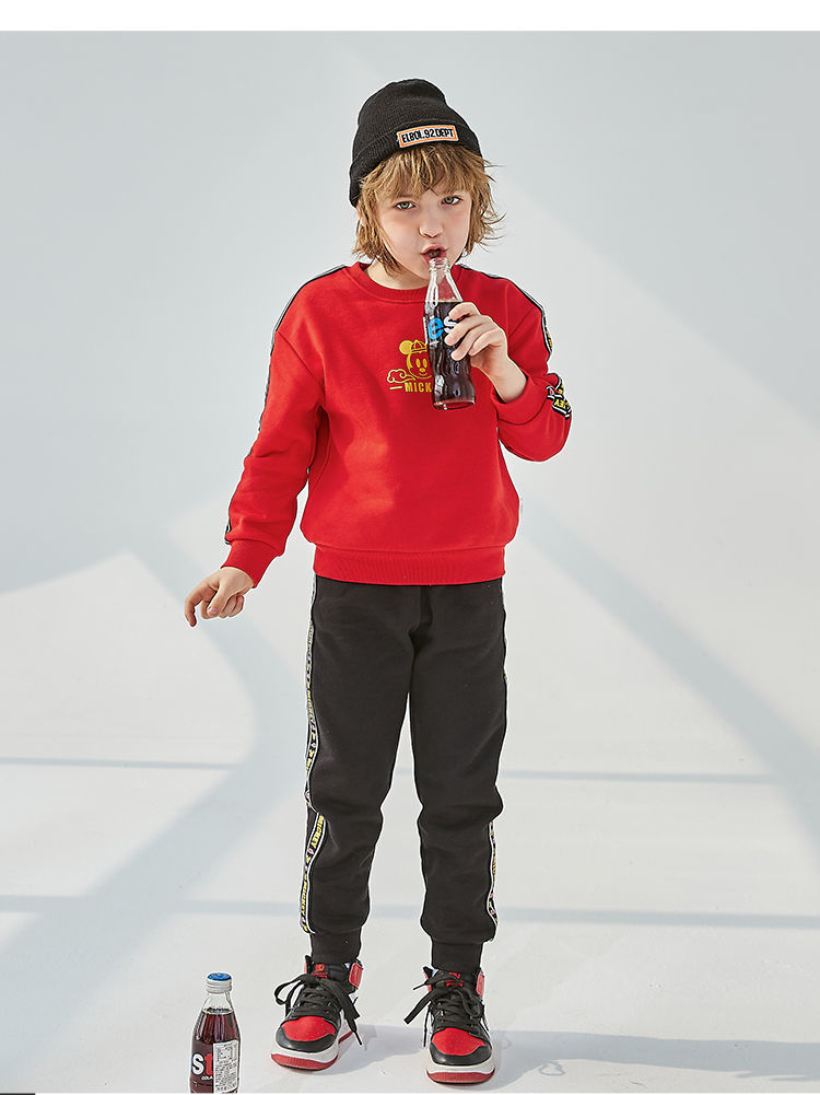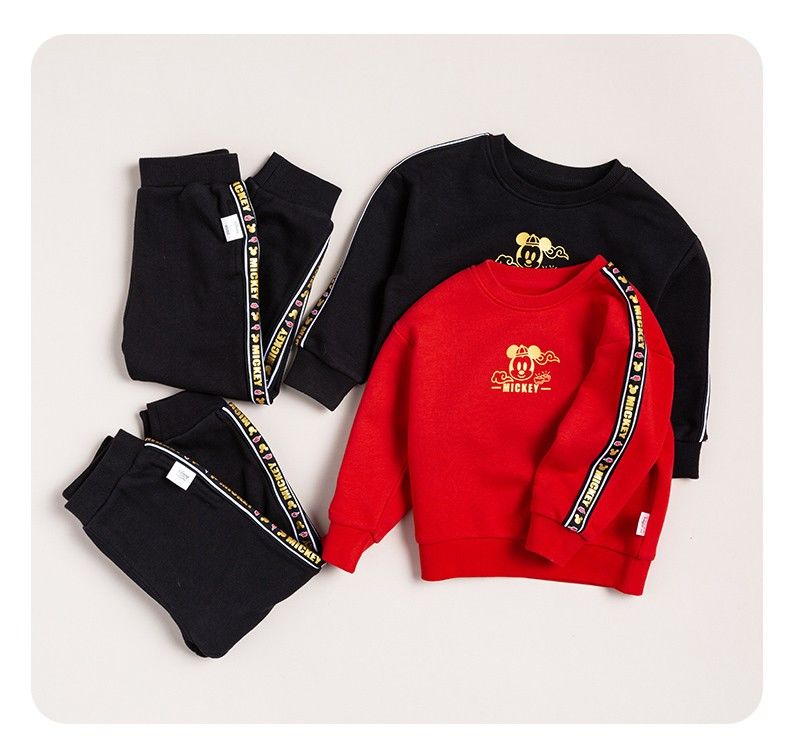 迪士尼童装 儿童新年款加绒套装春季新款男童红色卫衣卫裤两件套