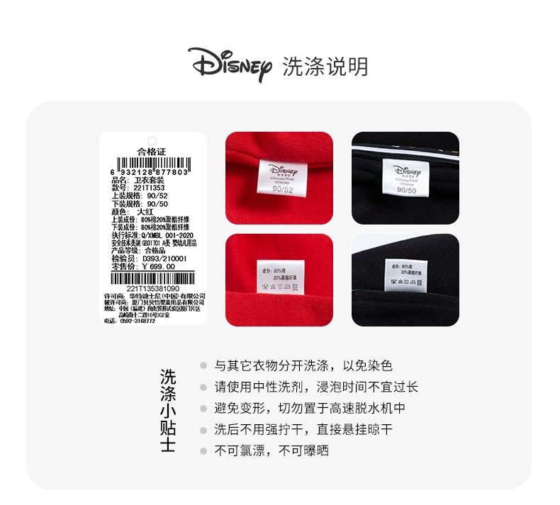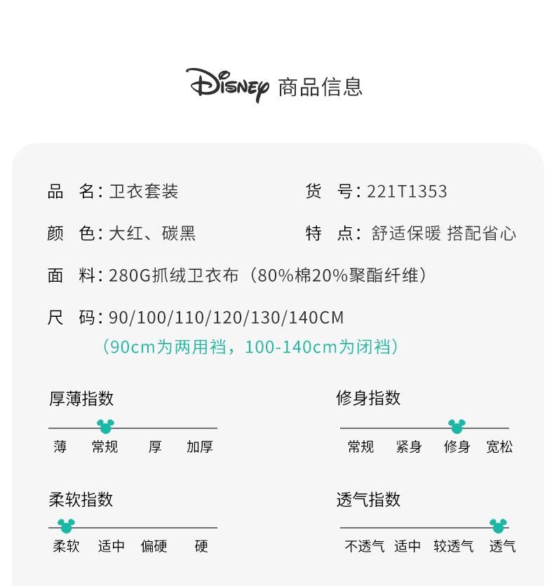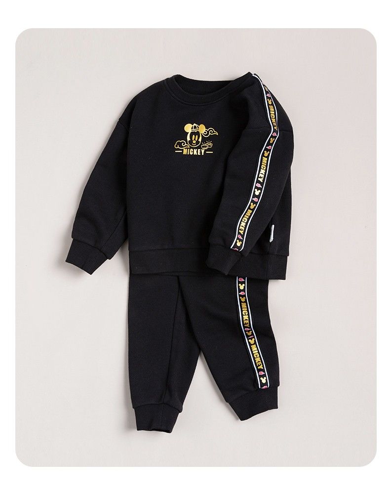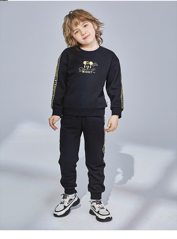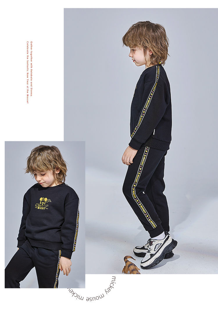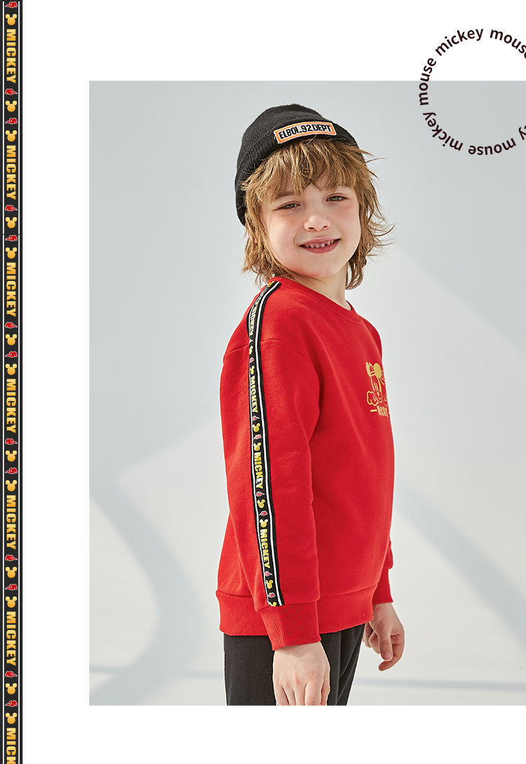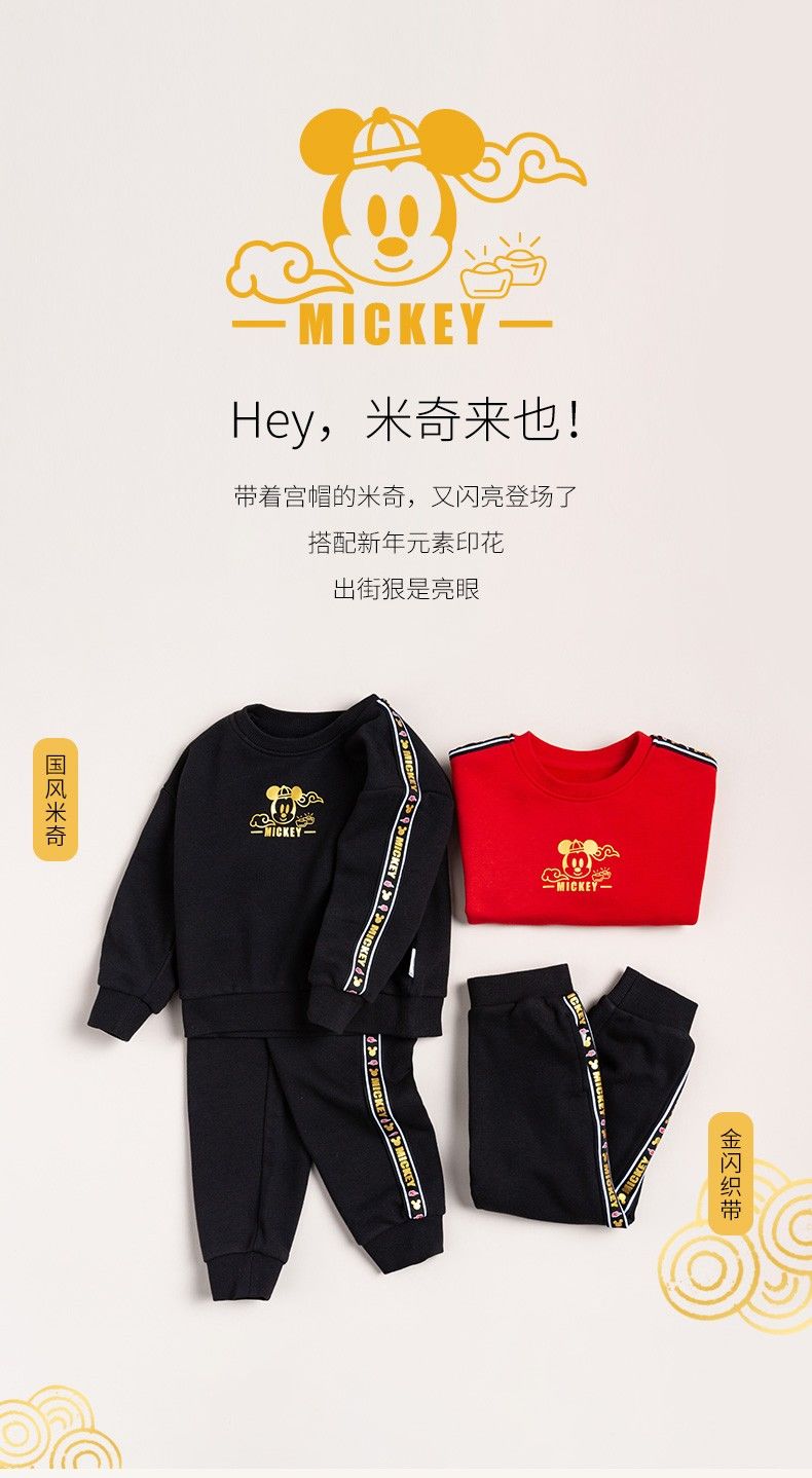 迪士尼童装 儿童新年款加绒套装春季新款男童红色卫衣卫裤两件套