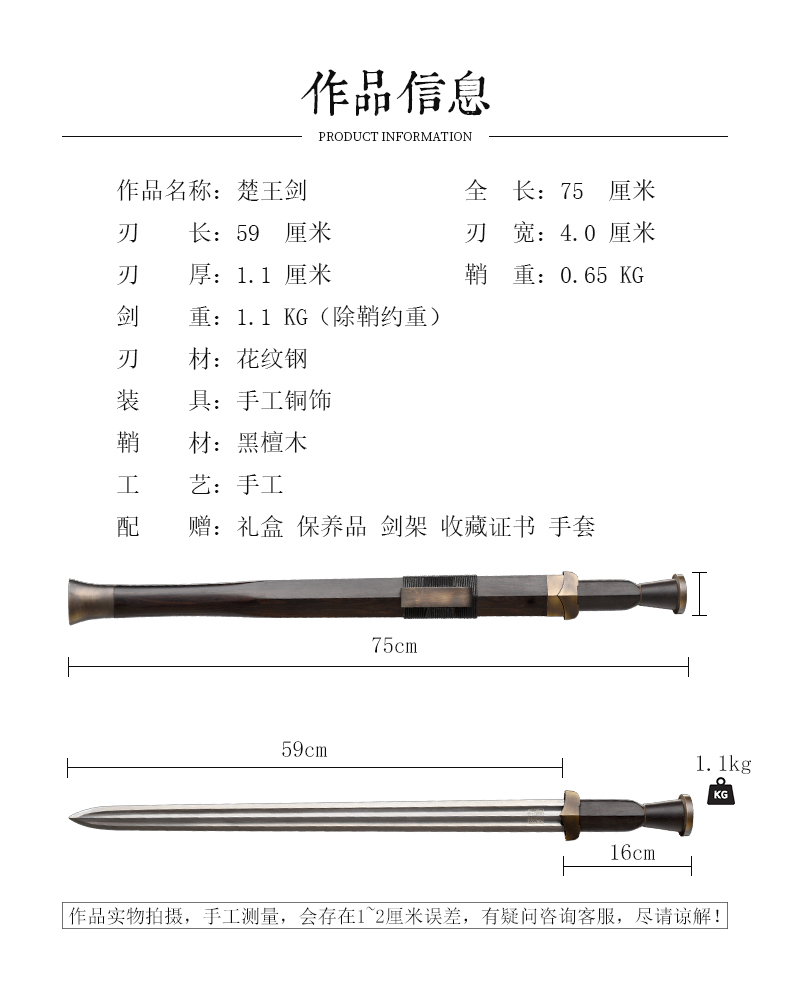楚王剑 硬剑手工传统宝剑 龙泉沈广隆宝剑 未开刃