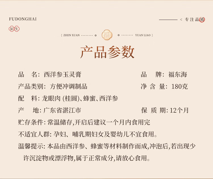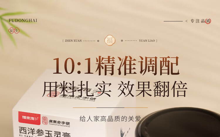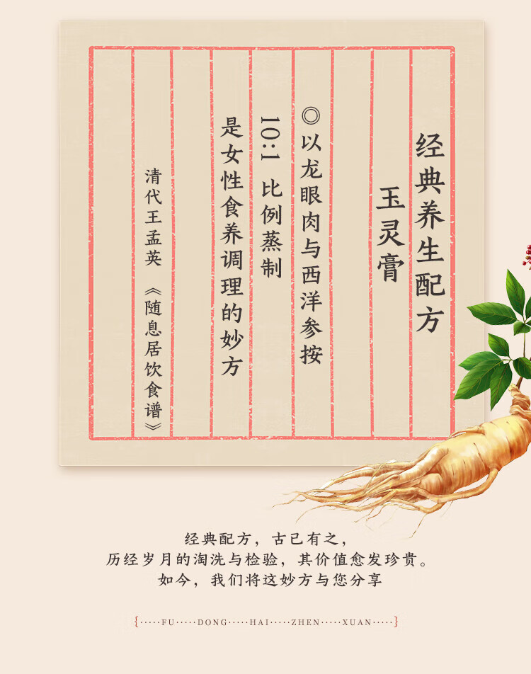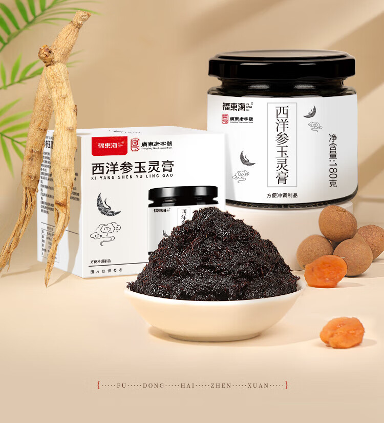 福东海 西洋参玉灵膏180克 手工古法蒸制搭女暖参膏冲服