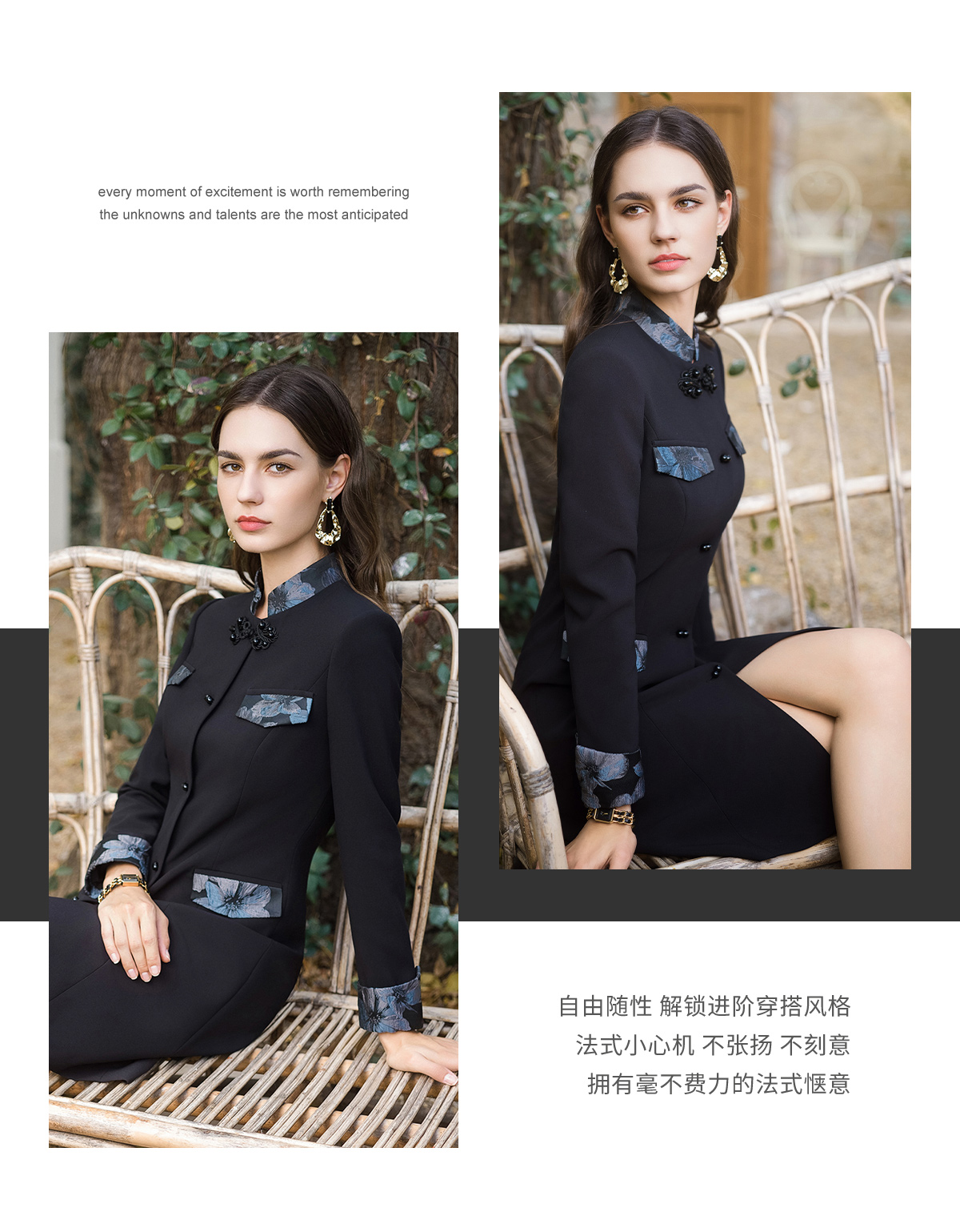 AD新中式连衣裙女春装2024新款高级感提花西装裙轻奢国风裙子黑色