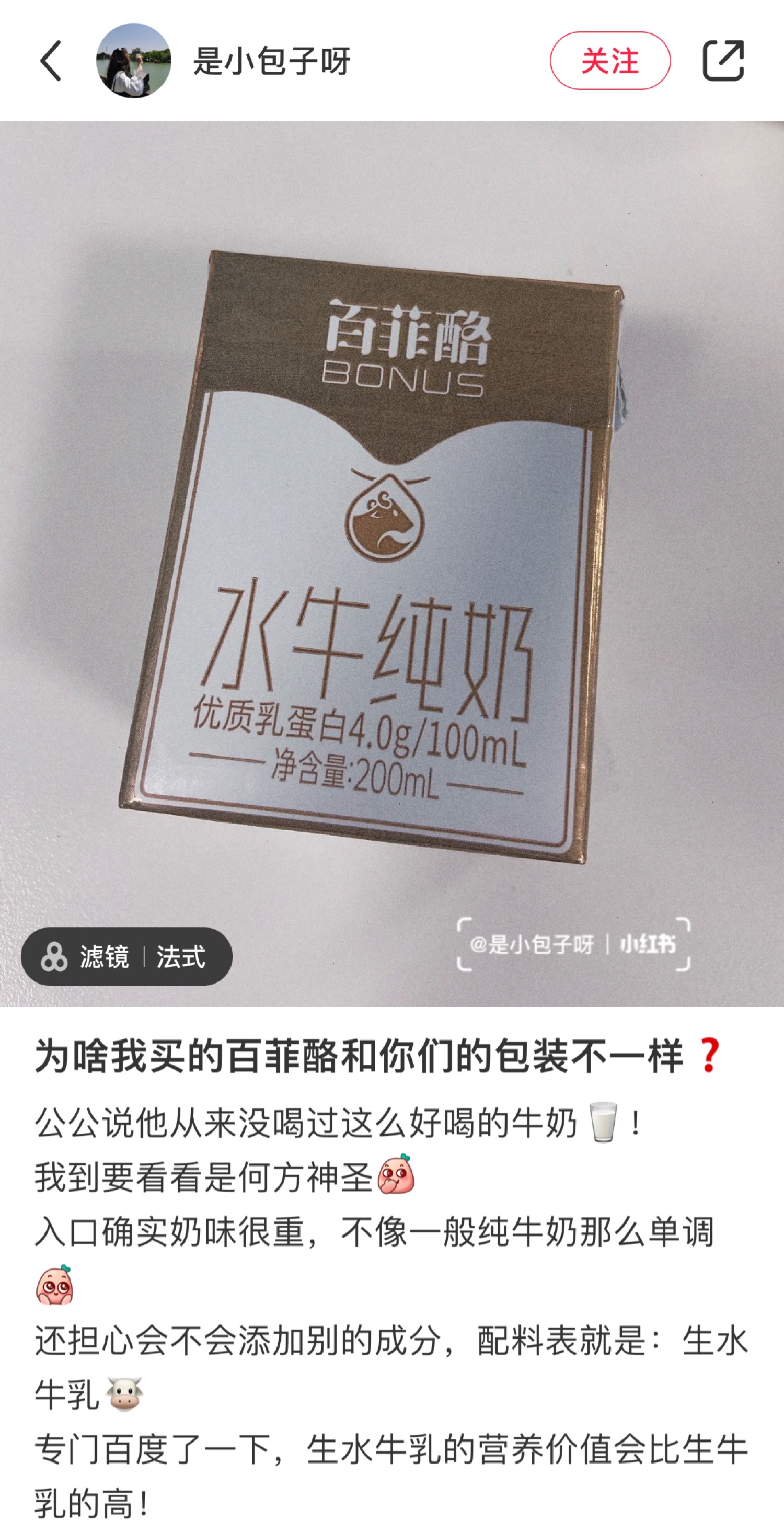 因为我不爱奶味,所以以前几乎是不喝纯牛奶的。但百菲酪的味道跟一般牛奶真的真的很不一样,非常非常可,喝起来是微微甜甜的,几乎没有牛奶的腥味。我发现它之后家里也就没断过,用它来冲永璞的咖啡,味道很绝!跟之前经典版的相比,4.0的会更醇厚一些,奶香也更浓郁!不考虑预算的话,非常推荐!