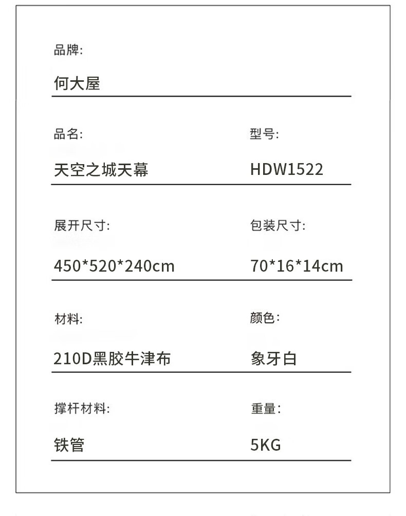 何大屋 天空之城天幕HDW1522【SZCT5.0】 商品图1