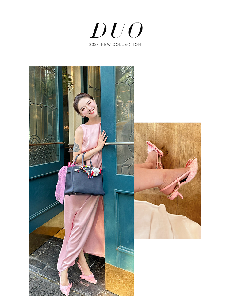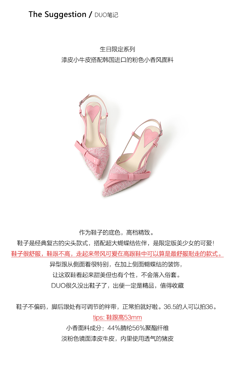 DUO智仙生 美少女线定牛皮进口小香风后袢带高跟鞋