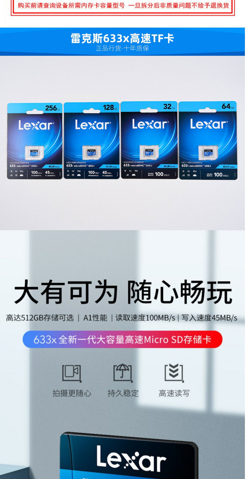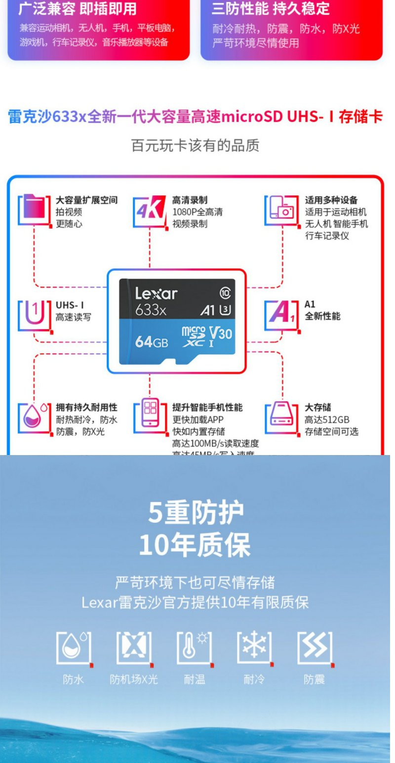 雷克沙 高速手机tf内存卡64g行车记录仪监控sd存储卡1个