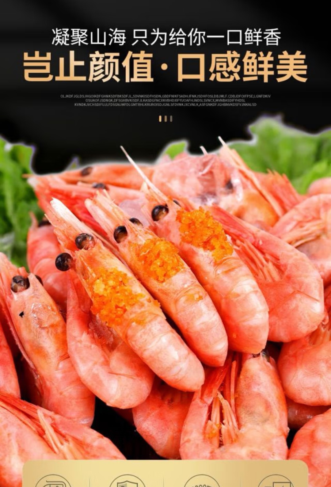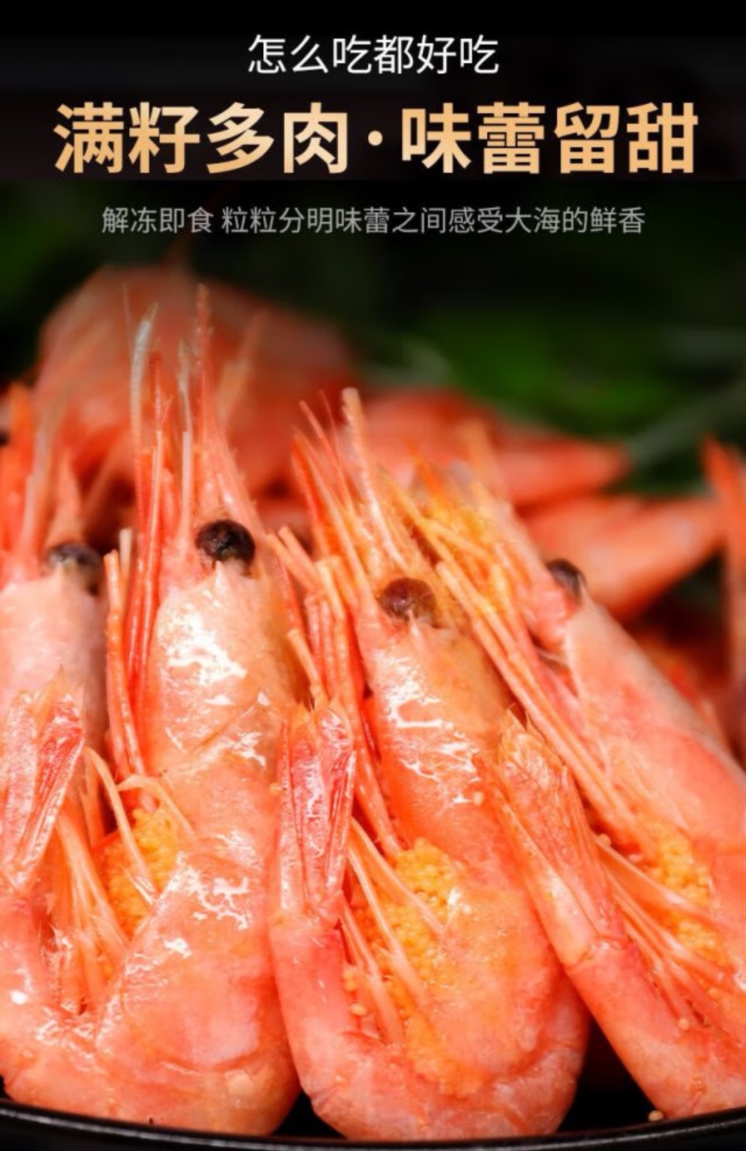 甜虾大号满腹籽熟冻北极甜虾 1kg/盒