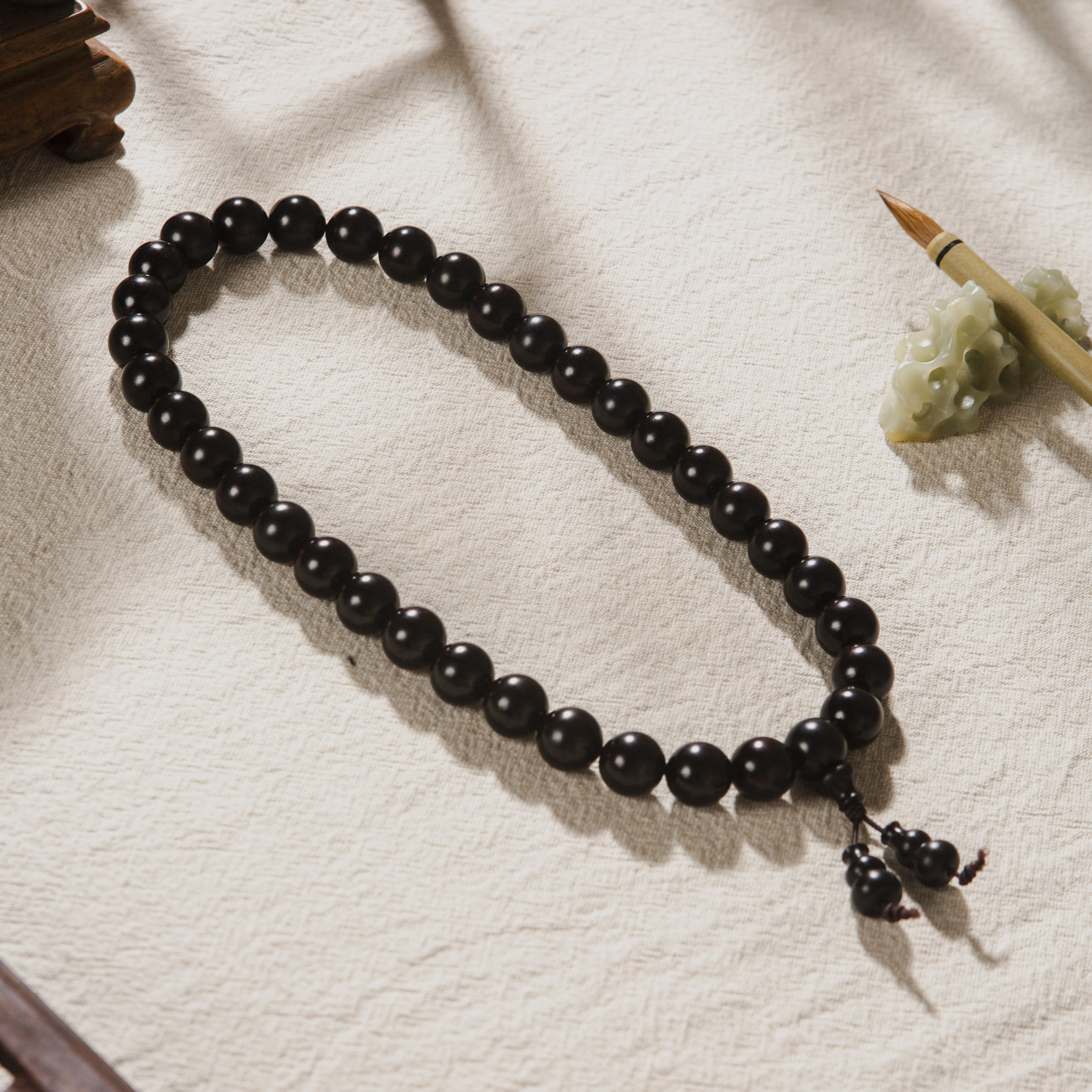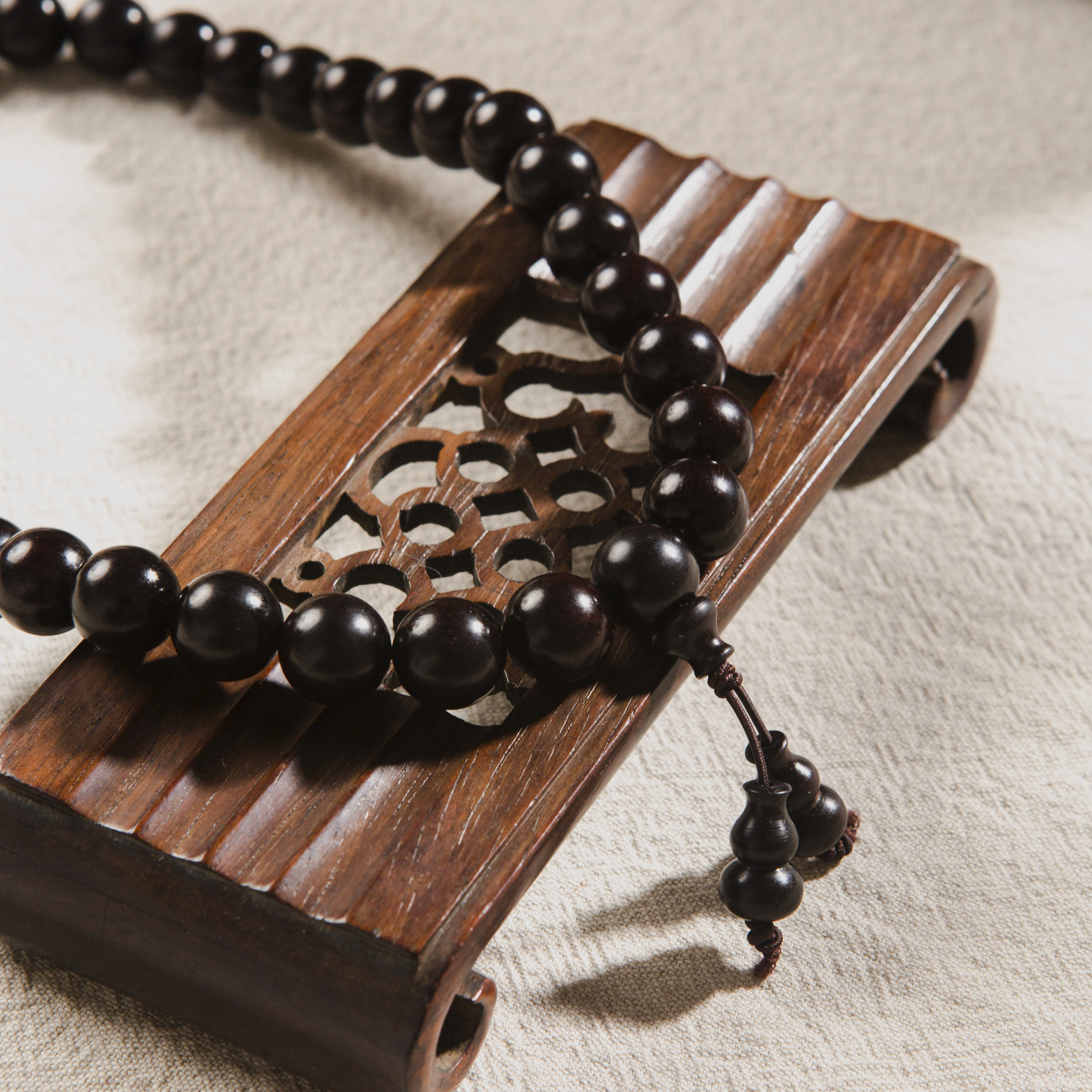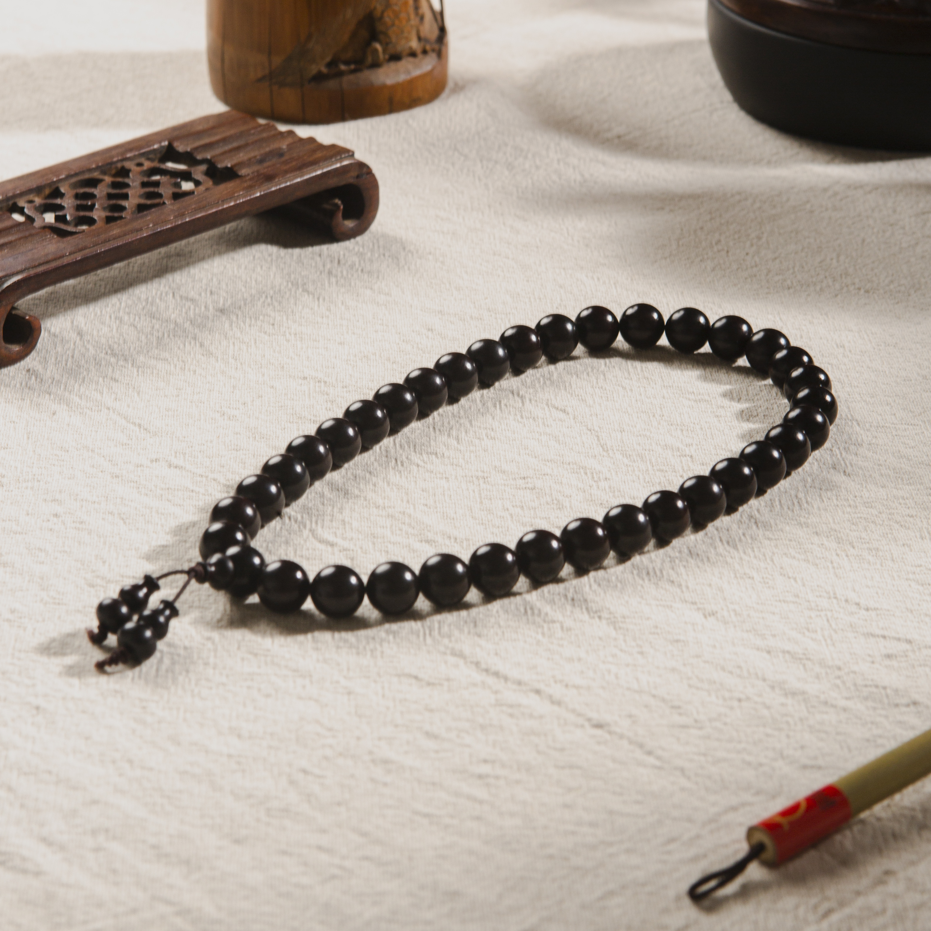 清代紫檀家具老料制手持。百年紫檀老料油性大、密度高,气息古朴沉稳。手工制珠精细至极。是难得的清玩之物。