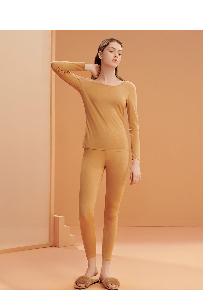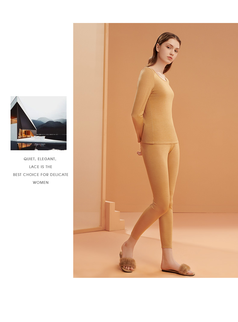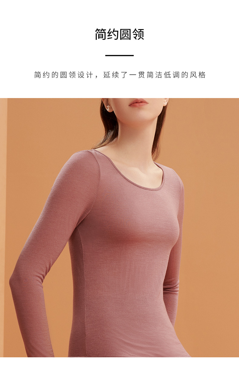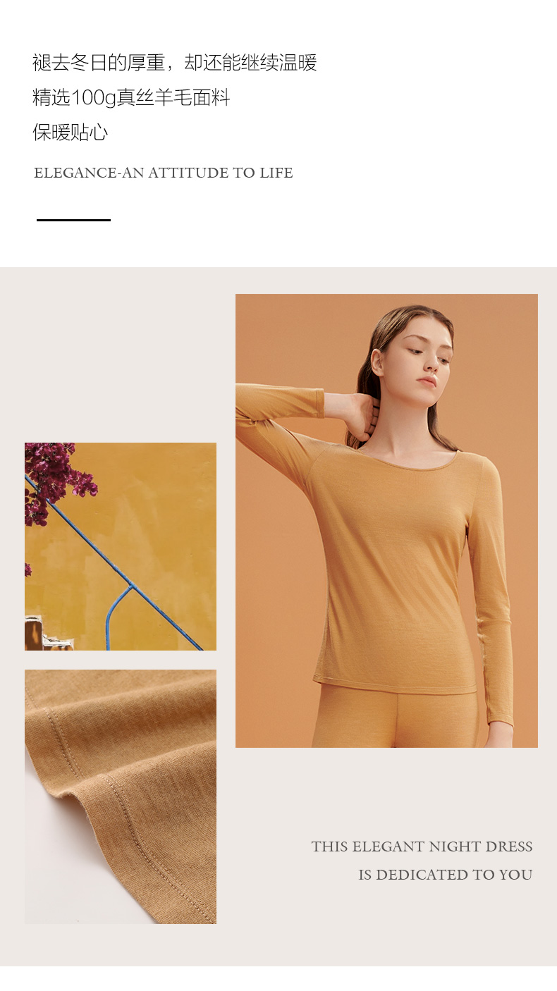 金三塔蚕丝羊毛保暖舒适 弹性贴合纯色圆领内衣套秋衣秋裤女士秋冬新品 NYFBD103