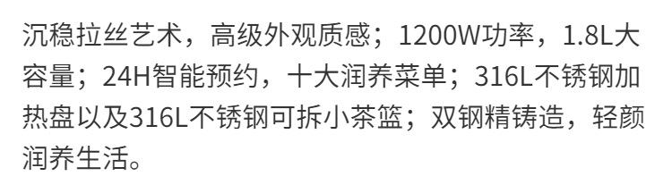 九阳养生壶家用1.8L升316L智能预约玻璃花茶壶煮茶壶电水壶烧水壶
