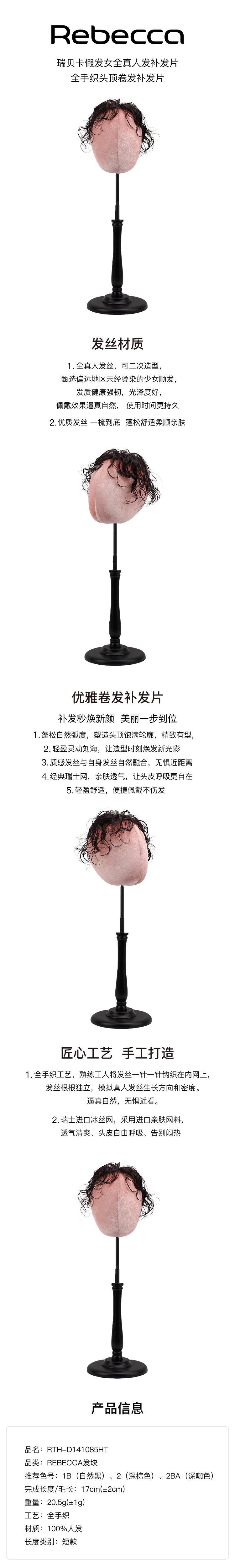 Rebecca瑞贝卡假发女全真人发补发片全手织头顶卷发补发片