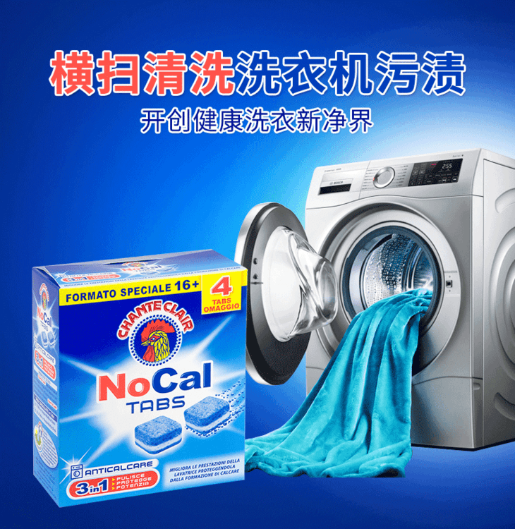 【给洗衣机一个清白】意大利大公鸡头洗衣机槽清洗剂 家用滚筒式波轮泡腾片 清理污垢杀菌消毒