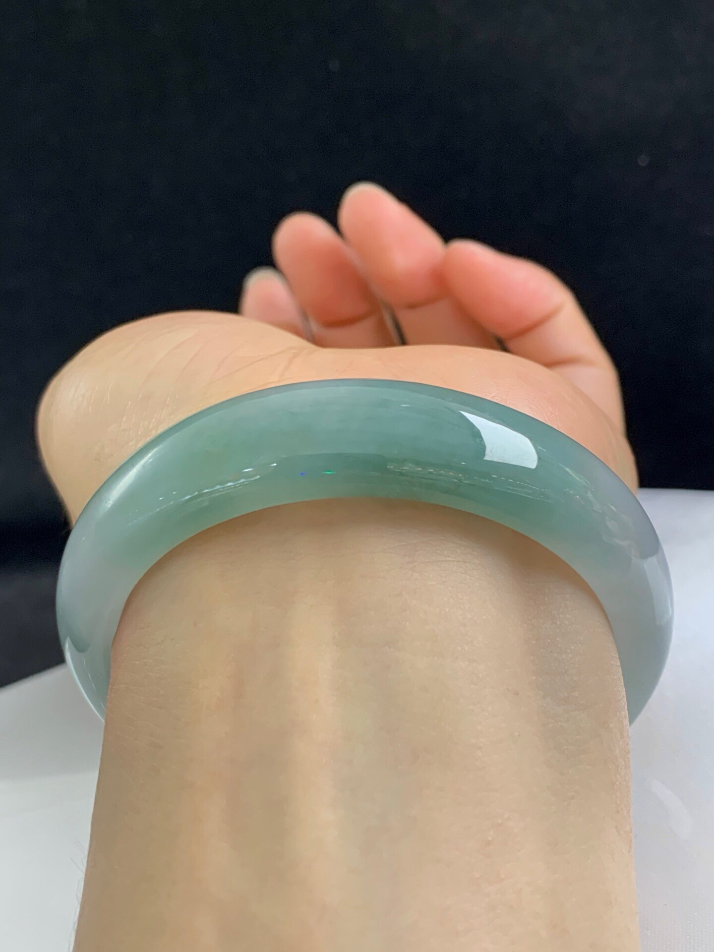 612962,57圈口,糯冰半山水油青正圈平安镯,种老水足,微透手,底子细润,无裂,尺寸:57-14.6-8,超值价💰11400 #优石客珠宝#香玉荟萃