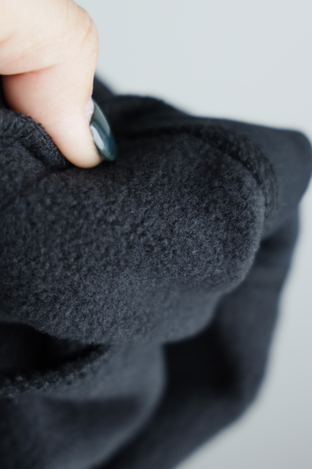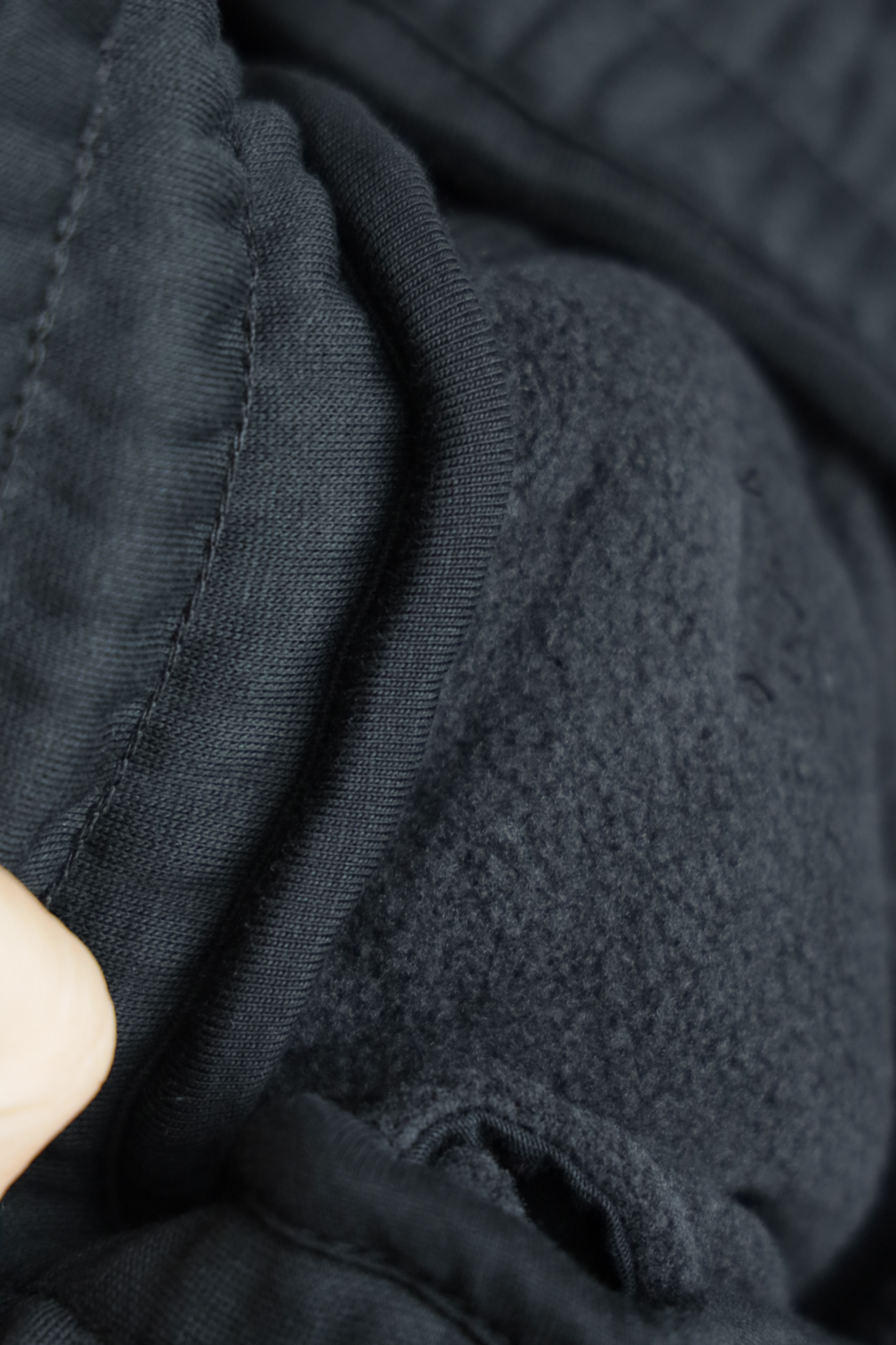 外层棉涤混纺,内里摇粒绒面料,加厚保暖,面料手感柔软舒适