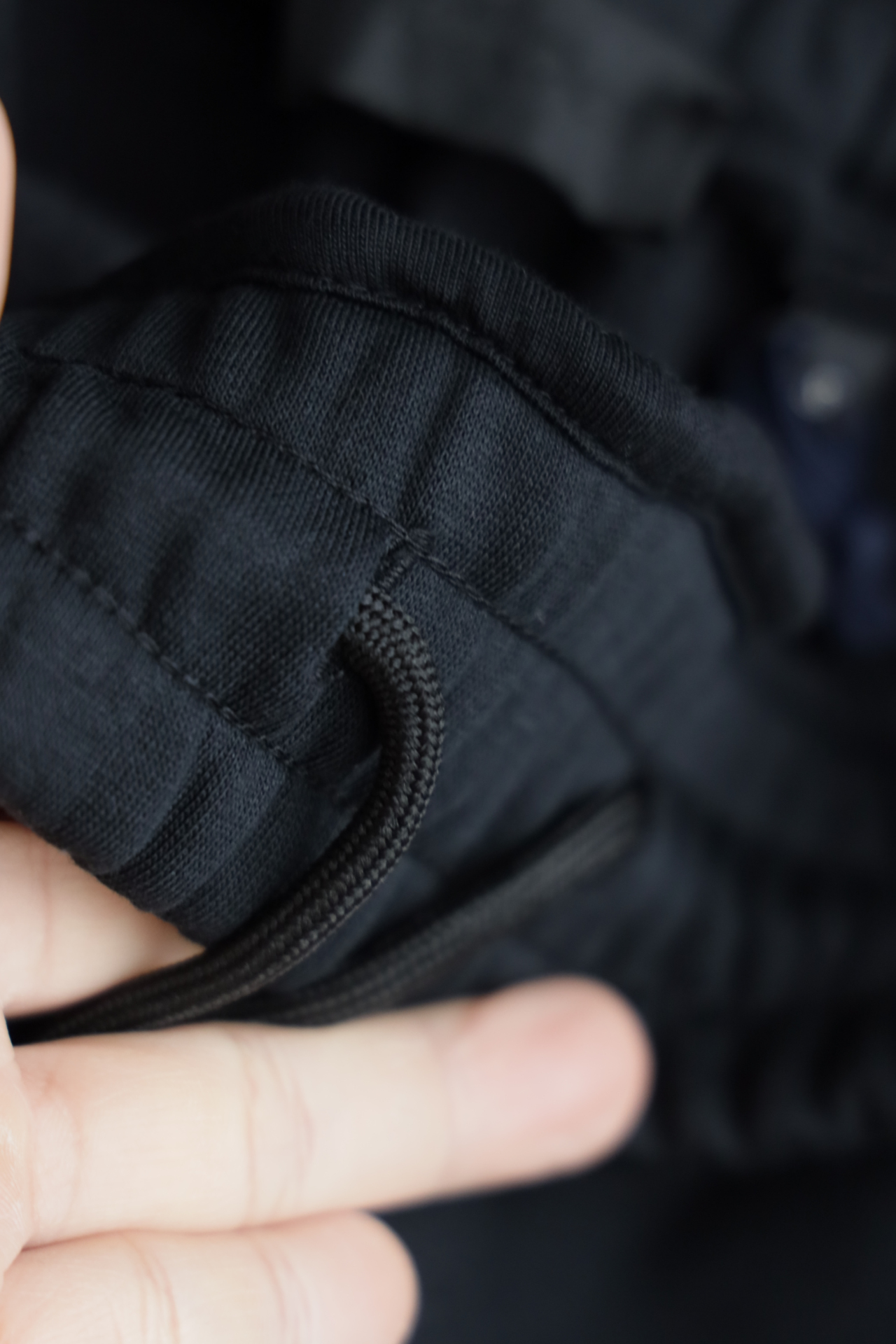 手感柔软有弹力,松紧腰围可拉伸,内置抽绳,双侧有口袋,单侧橡胶logo
