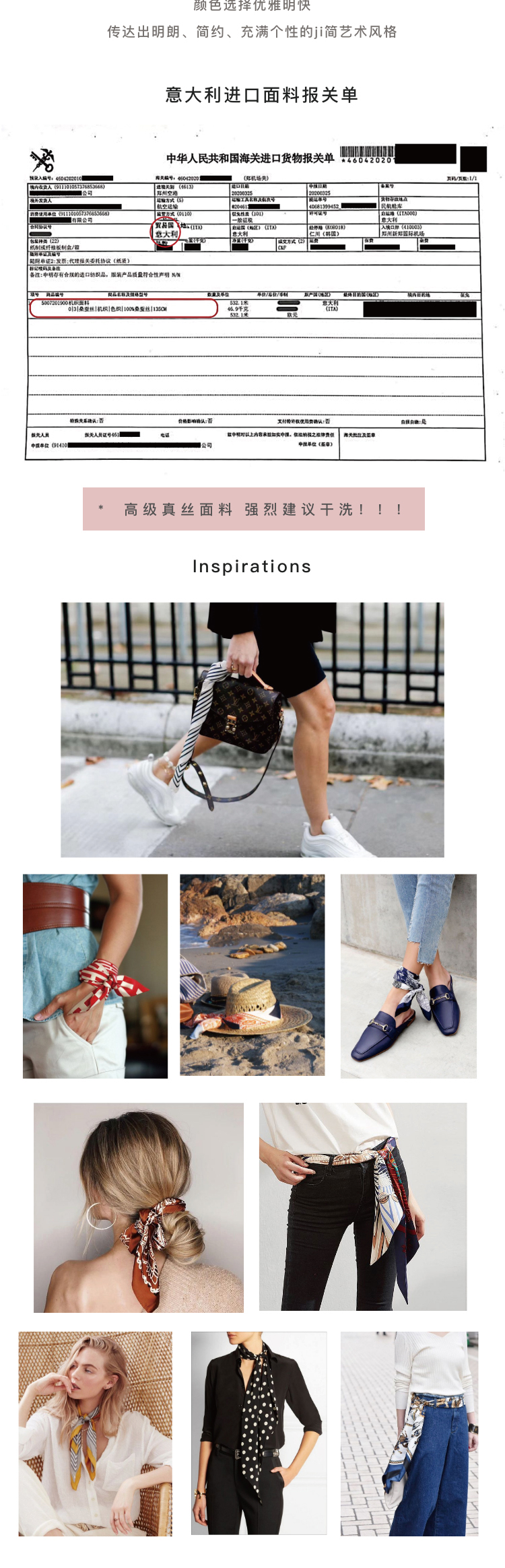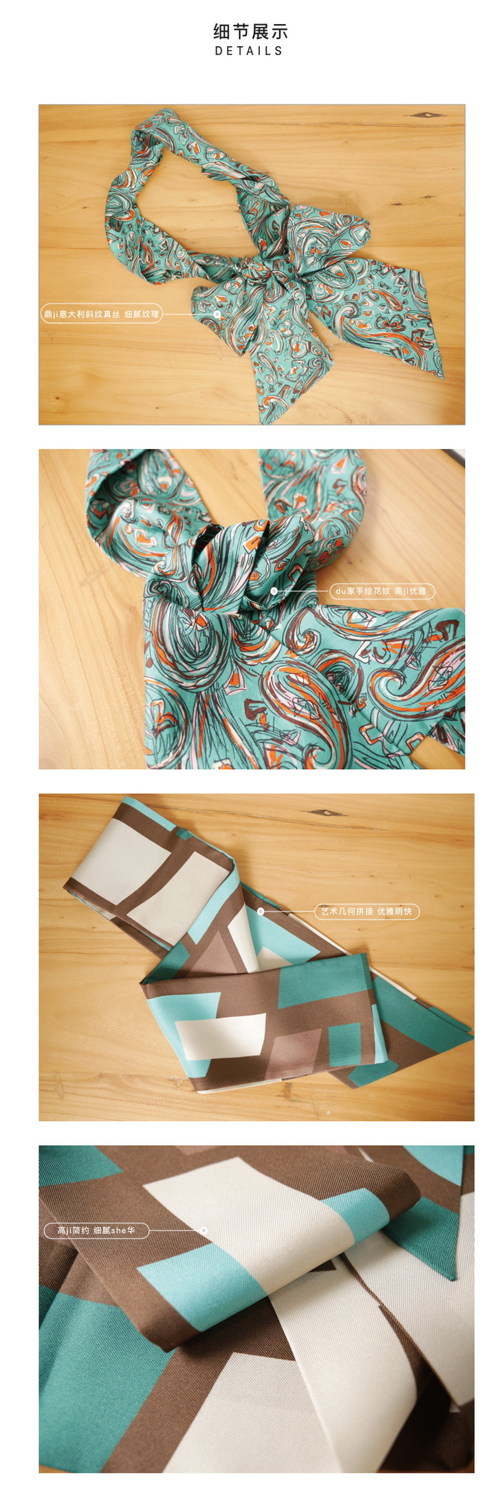 意大利进口真丝斜纹绸印花长丝巾 百搭细窄围巾领带