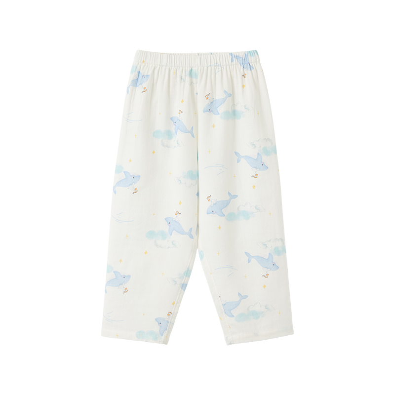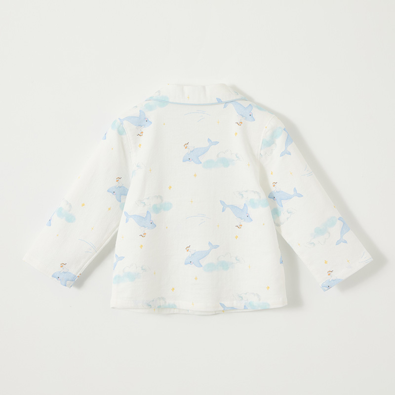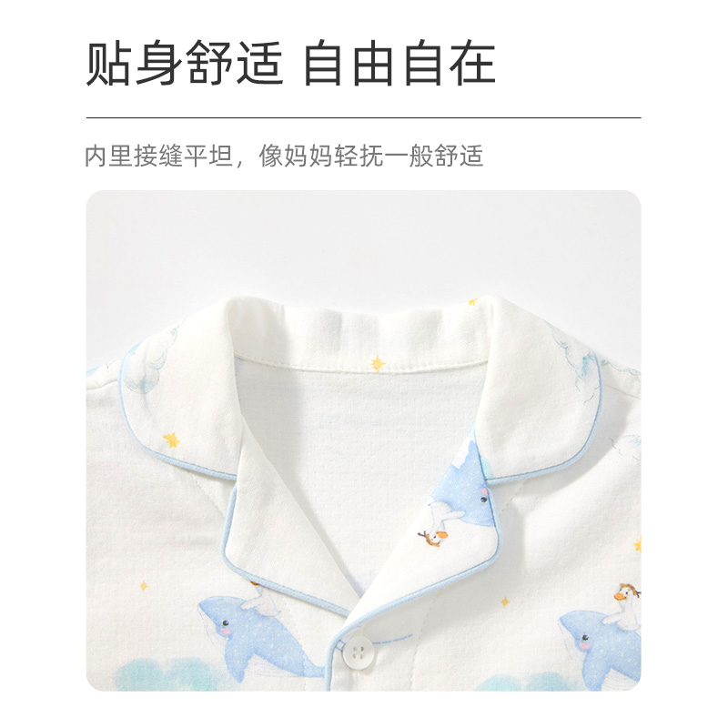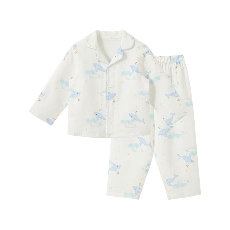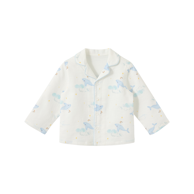 怡比云鲸之境家居长袖开襟套装HY26SPN103白蓝色调(90#-130#)