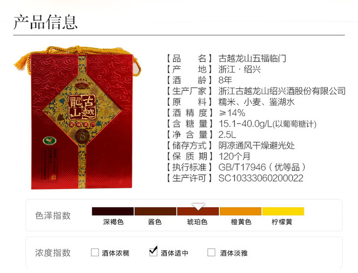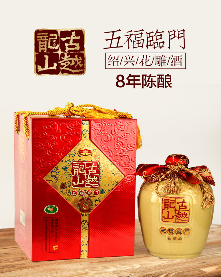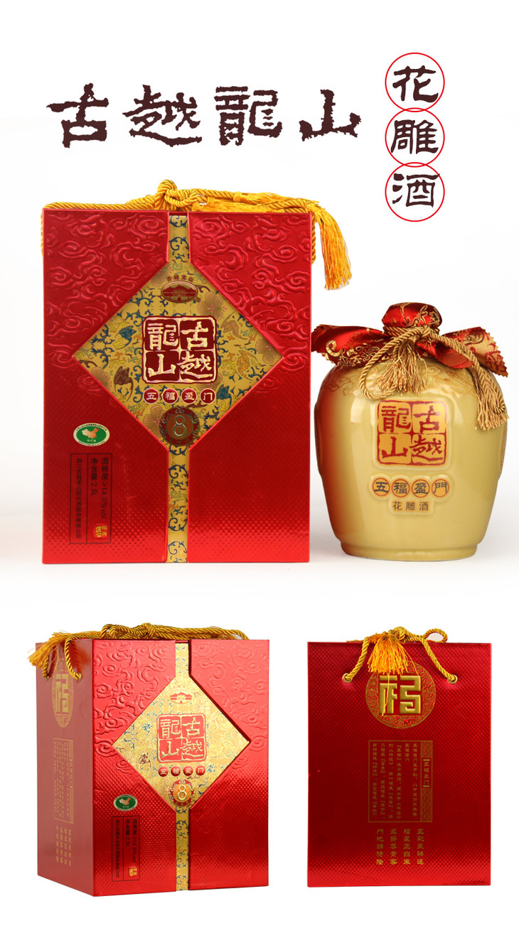 古越龙山八年五福盈门花雕酒手工酿造坛装 2500ml 14.0%VOL