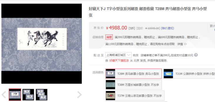 比如1978年发行的《奔马图》小型张,如今市场价已达到4988元一枚。