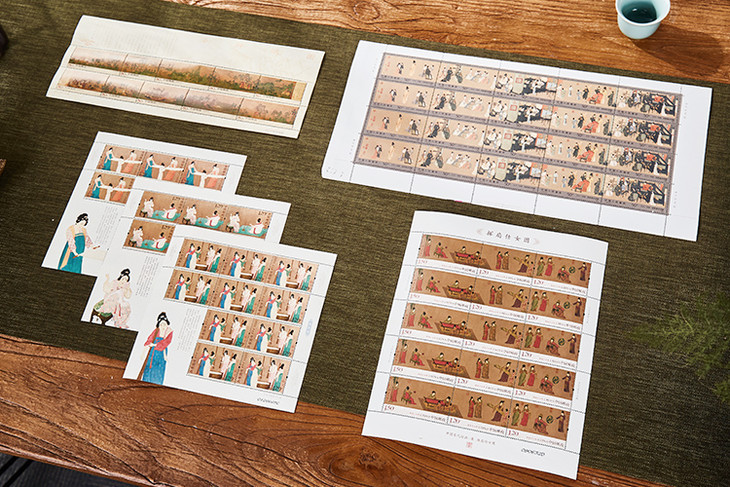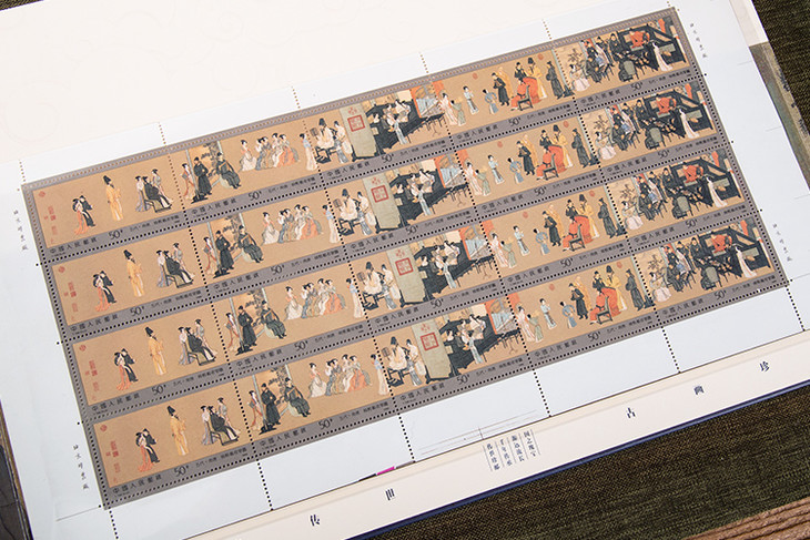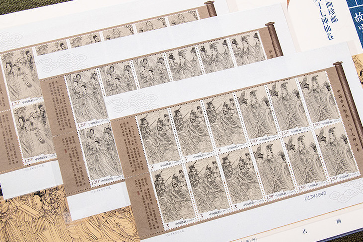 这套珍邮,涵盖六大版人物及风俗名场面珍邮,有《清明上河图》《洛神赋图》《韩熙载夜宴图》《高逸图》《挥扇仕女图》《捣练图》《八十七神仙卷》。