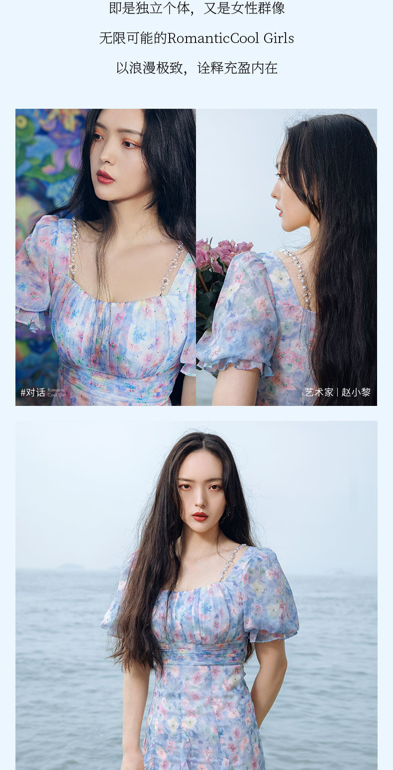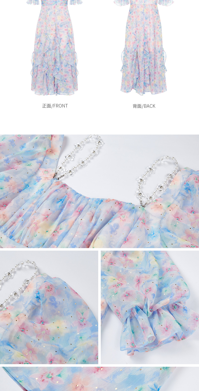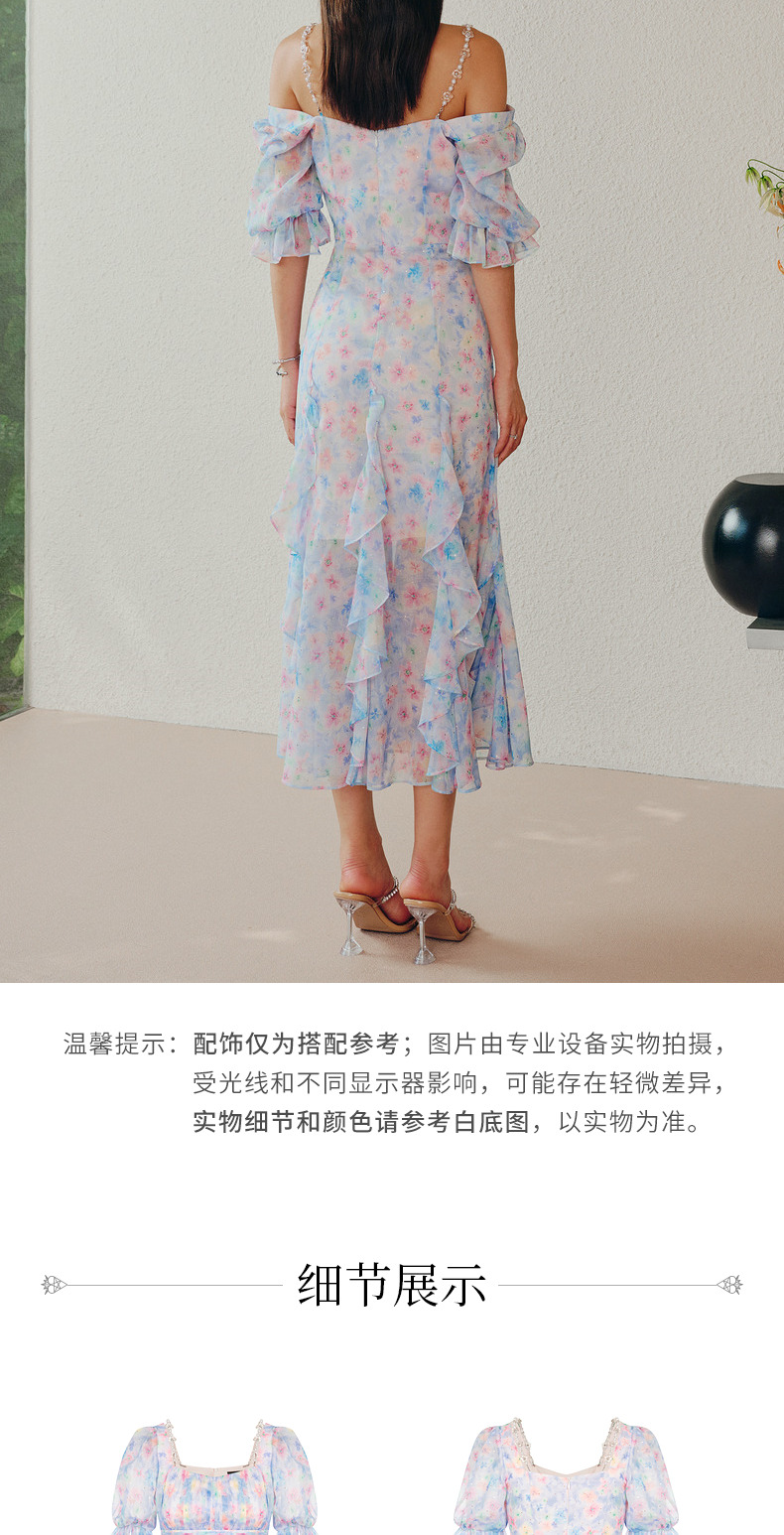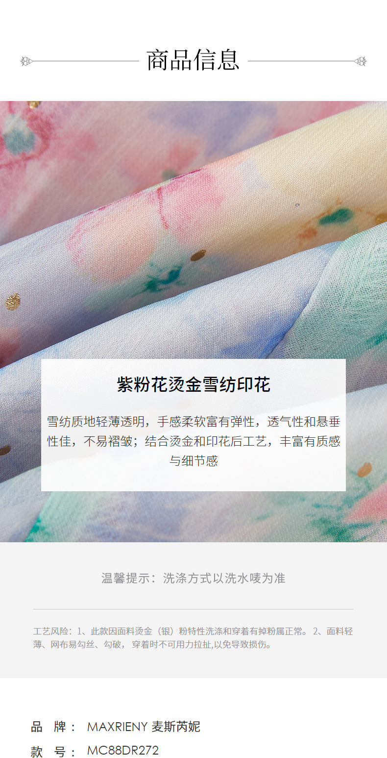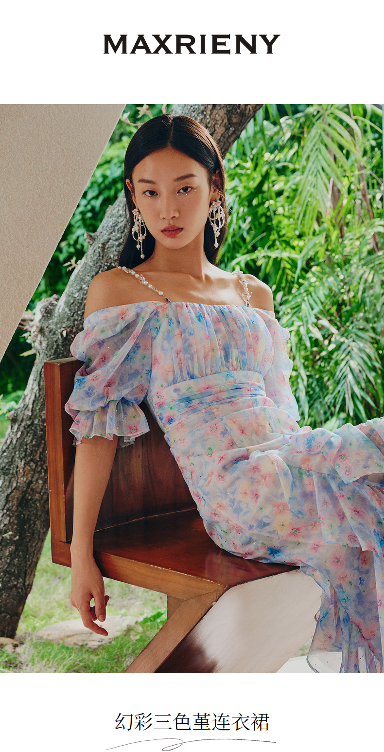 【商场同款】MAXRIENY幻彩三色堇连衣裙吊带*裙子碎花抽褶长裙(货号:MC88DR272)