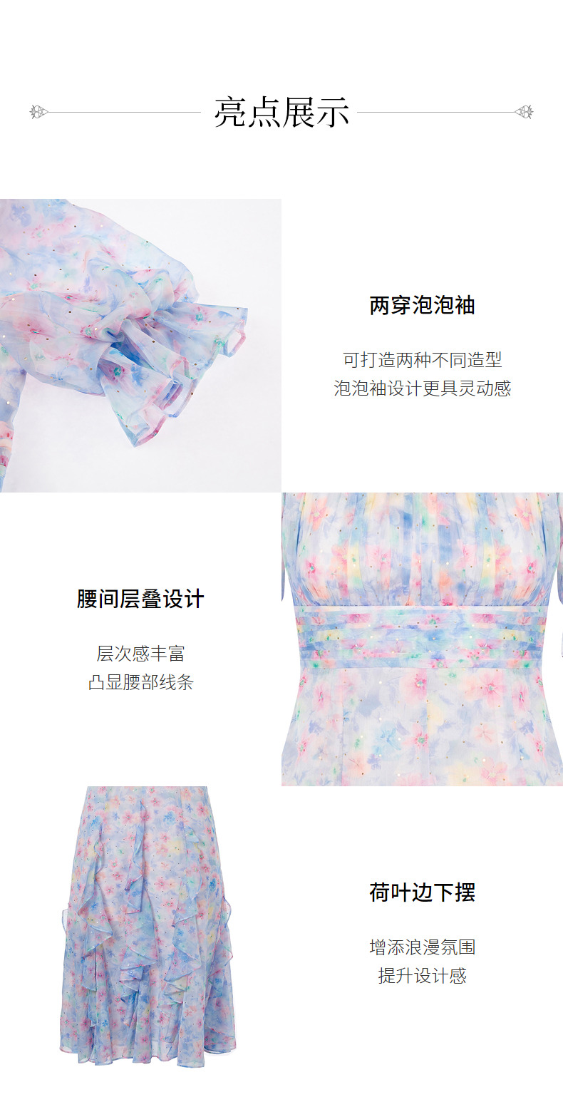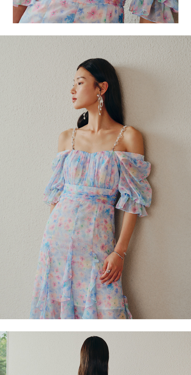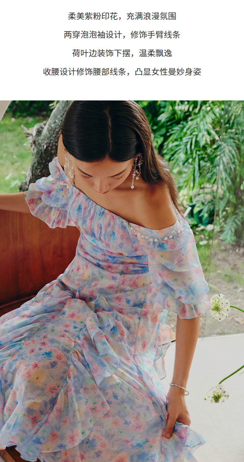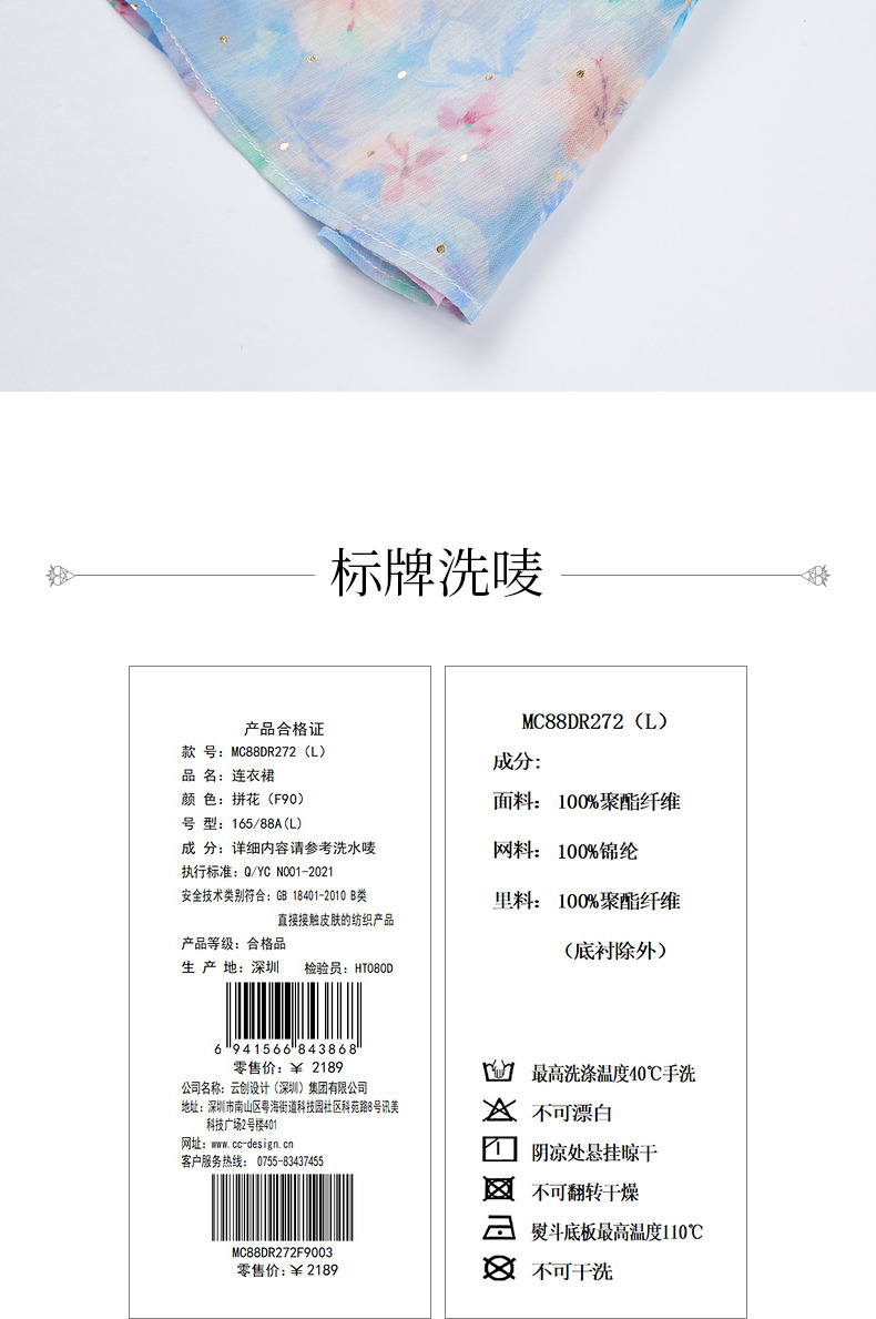 【商场同款】MAXRIENY幻彩三色堇连衣裙吊带*裙子碎花抽褶长裙(货号:MC88DR272)