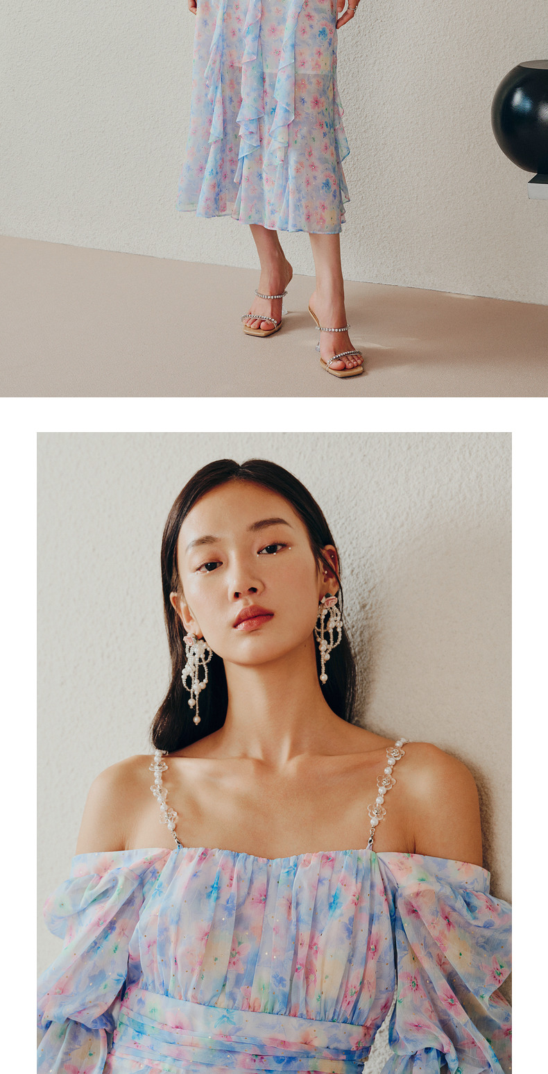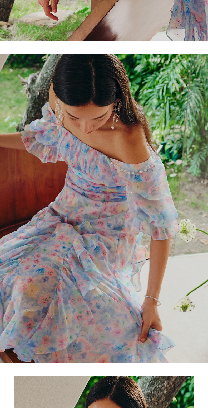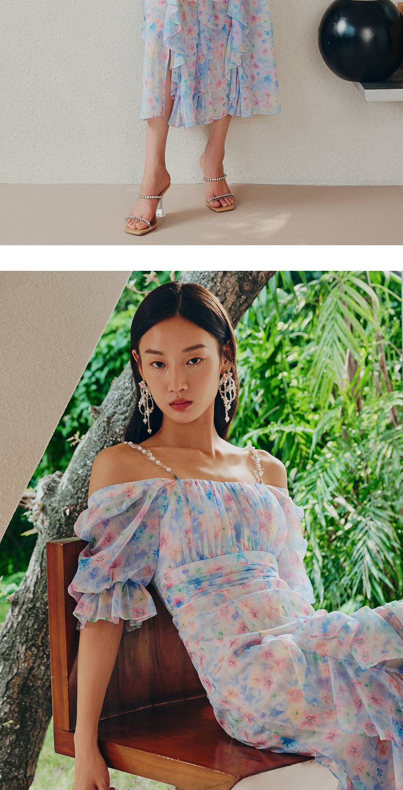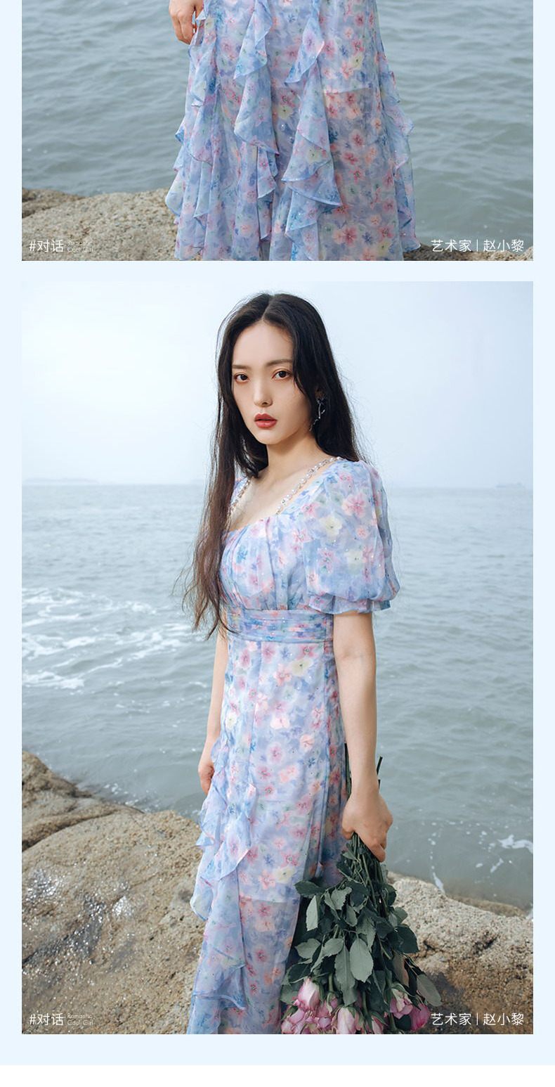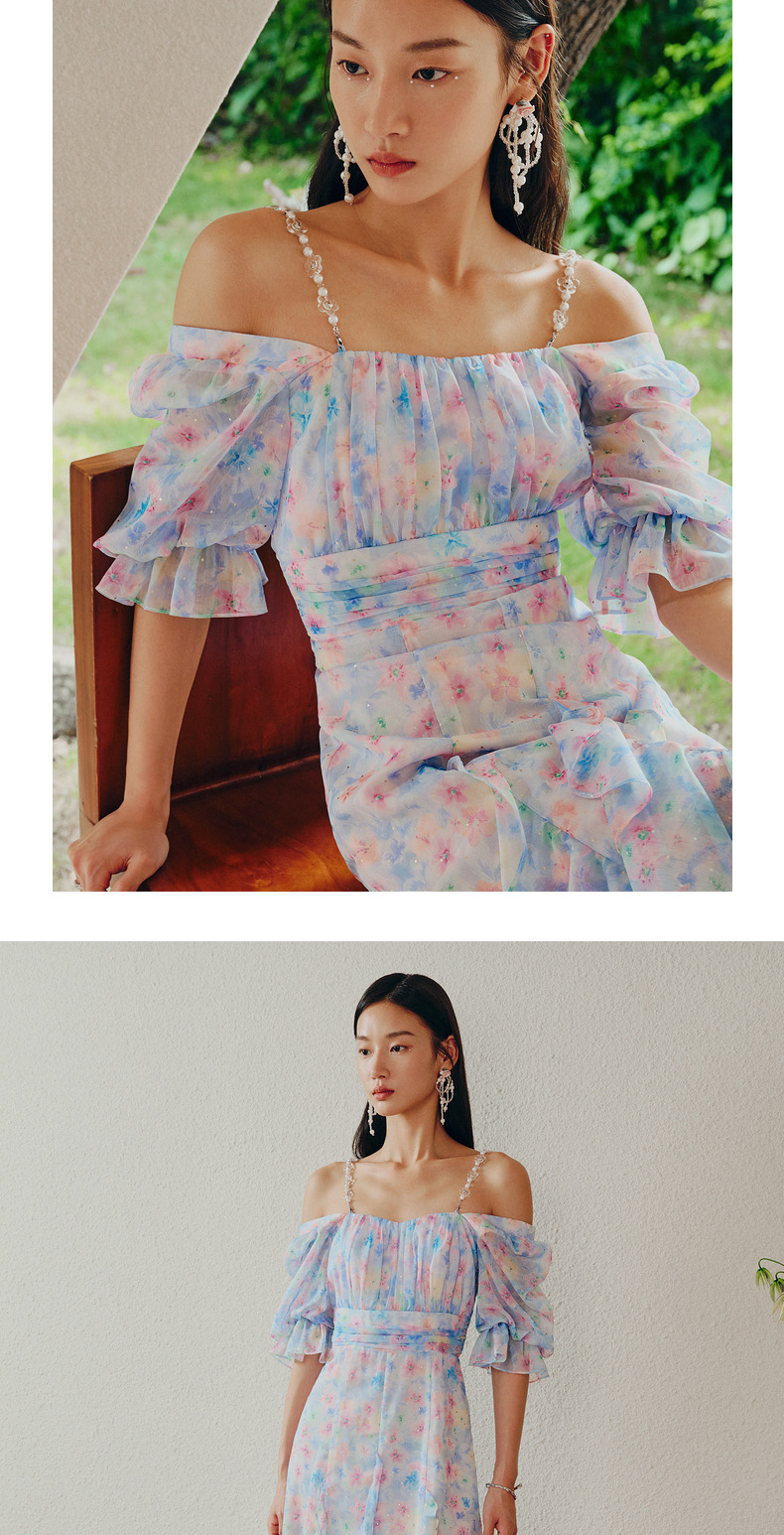 【商场同款】MAXRIENY幻彩三色堇连衣裙吊带*裙子碎花抽褶长裙(货号:MC88DR272)