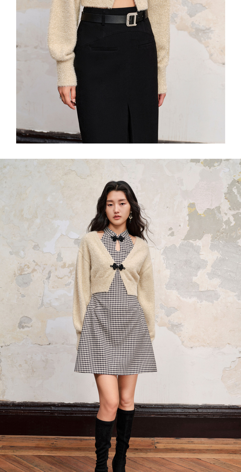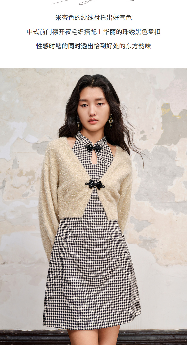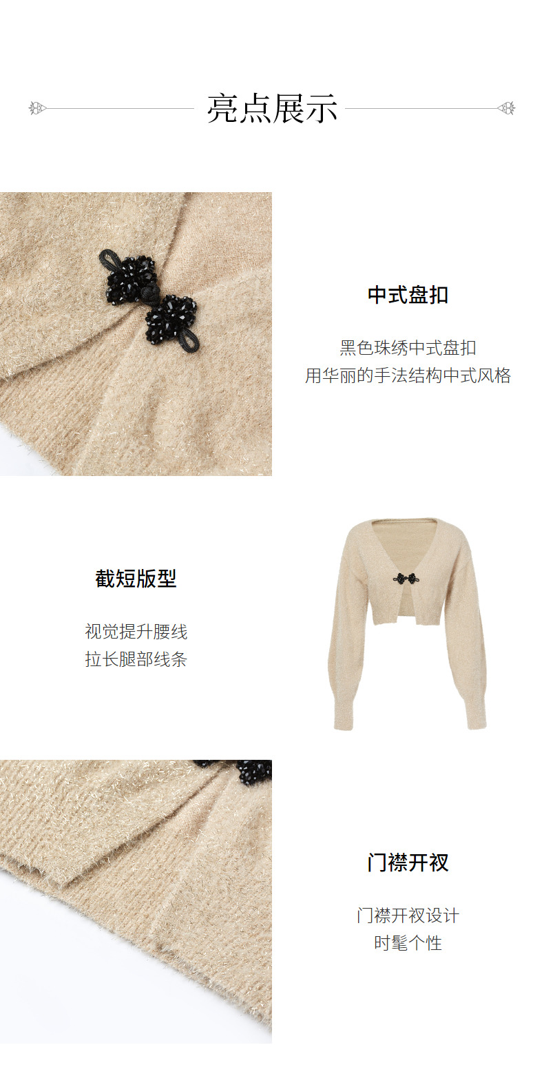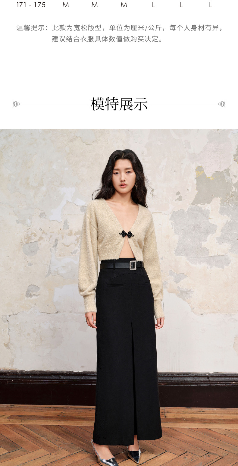 MAXRIENY中式前门襟盘扣开衩毛织外搭针织上衣女(货号:MC88JA576)