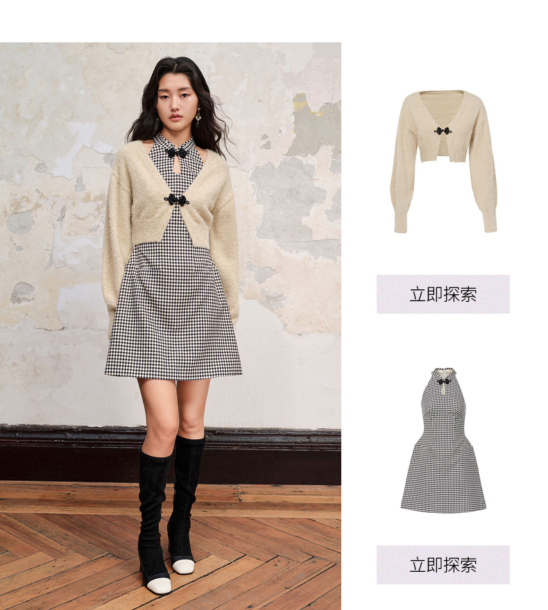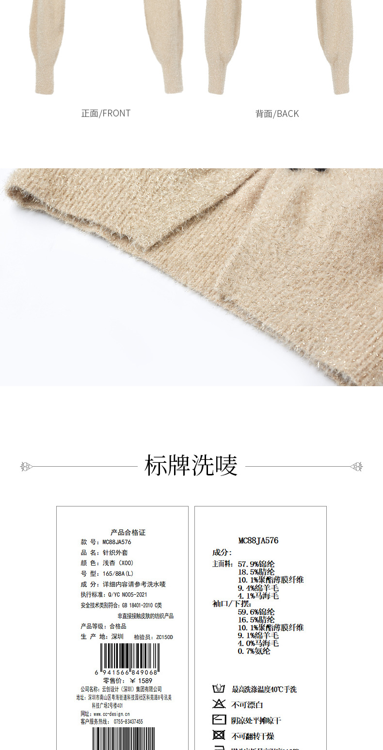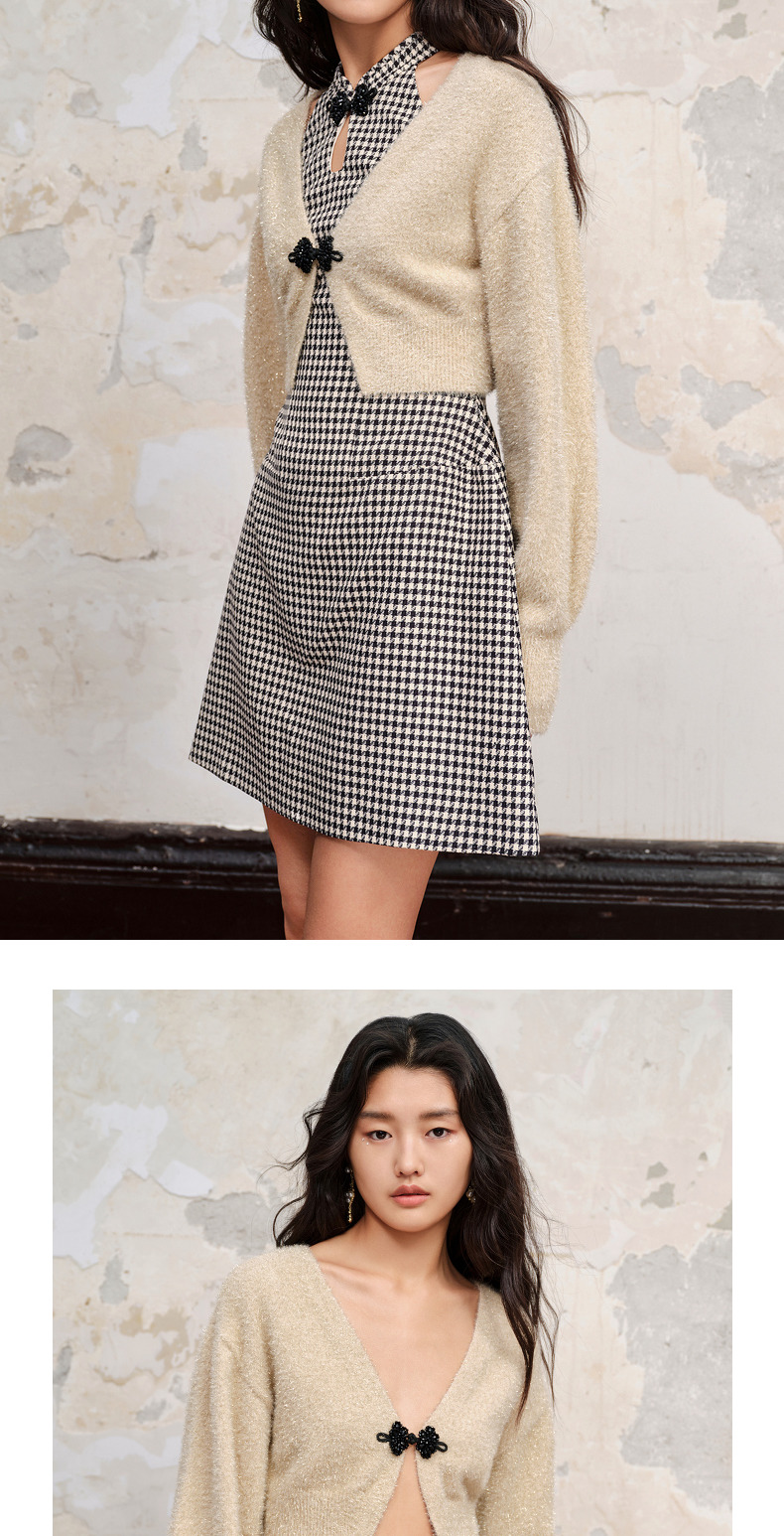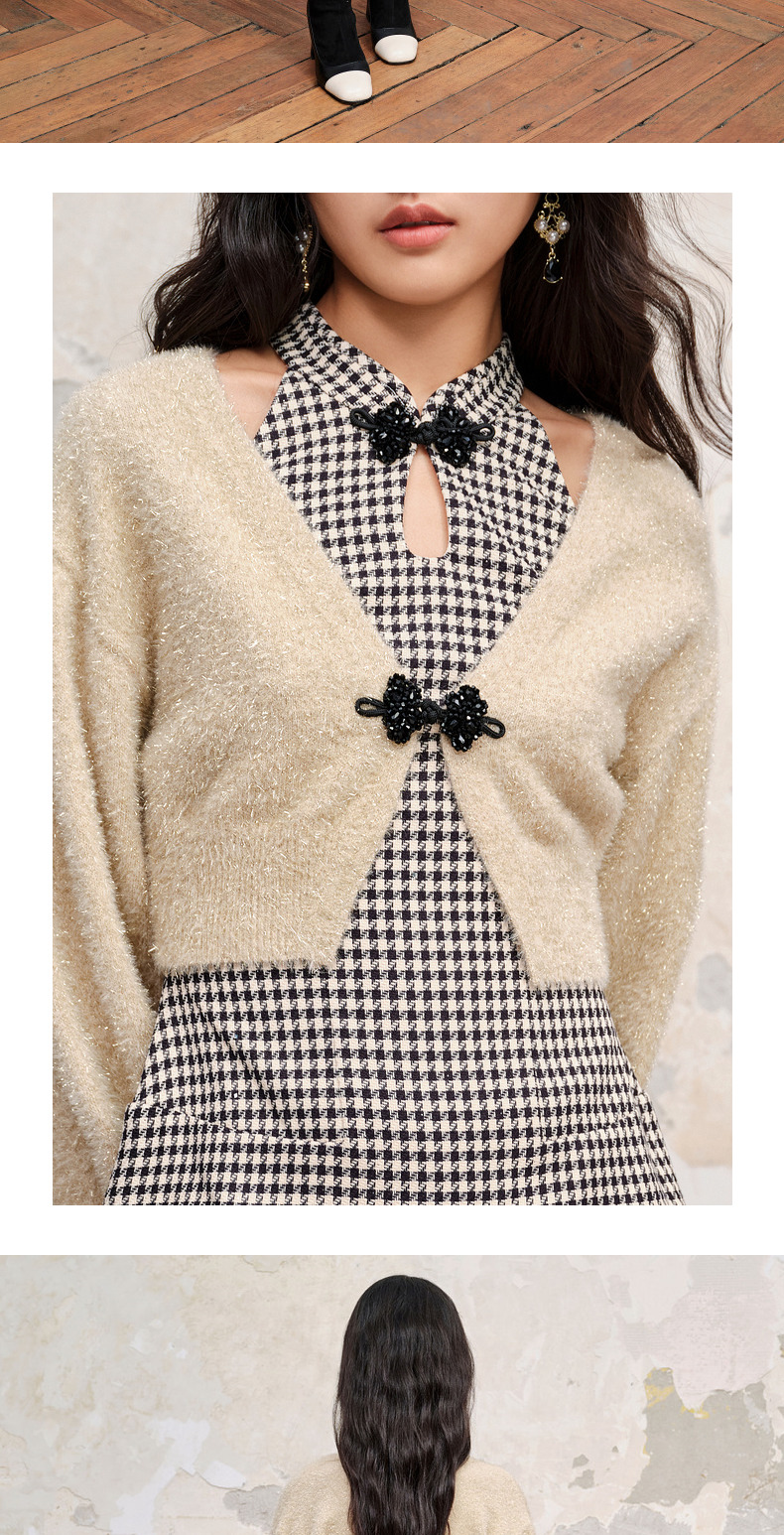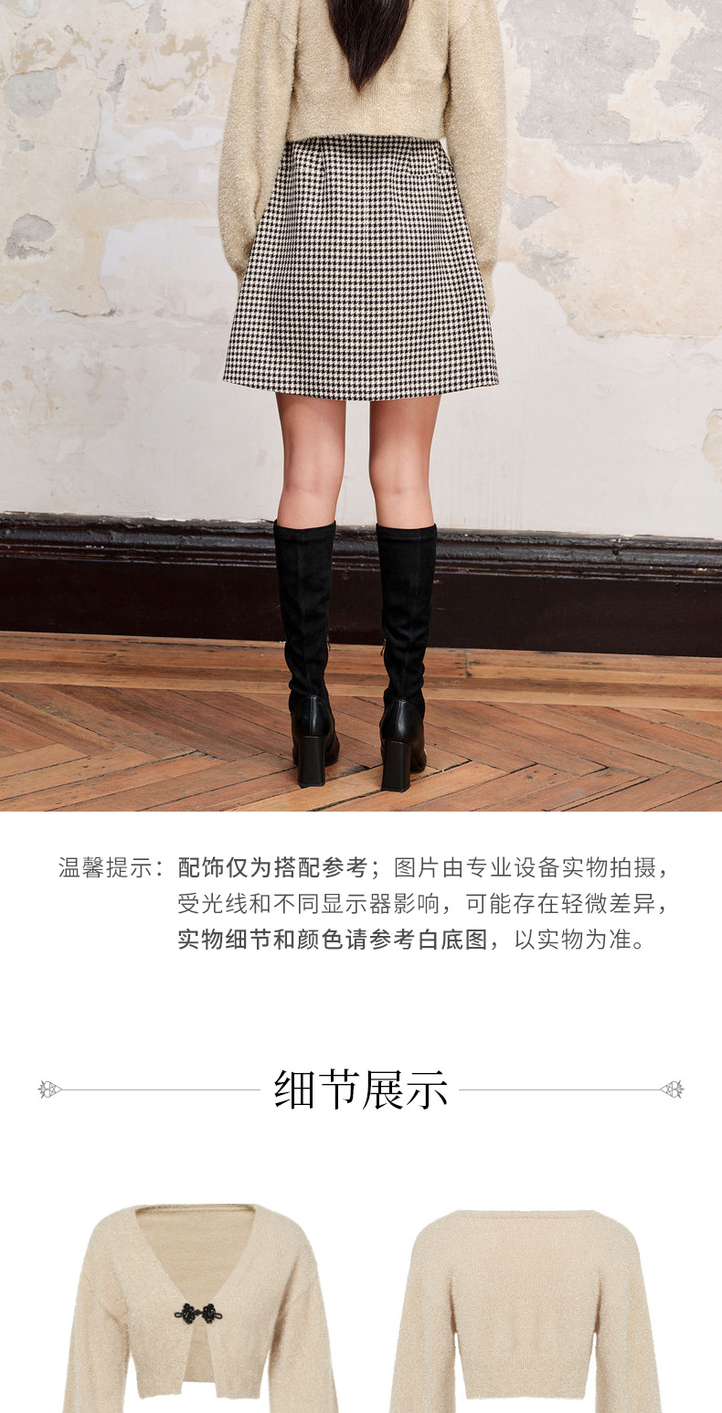 MAXRIENY中式前门襟盘扣开衩毛织外搭针织上衣女(货号:MC88JA576)