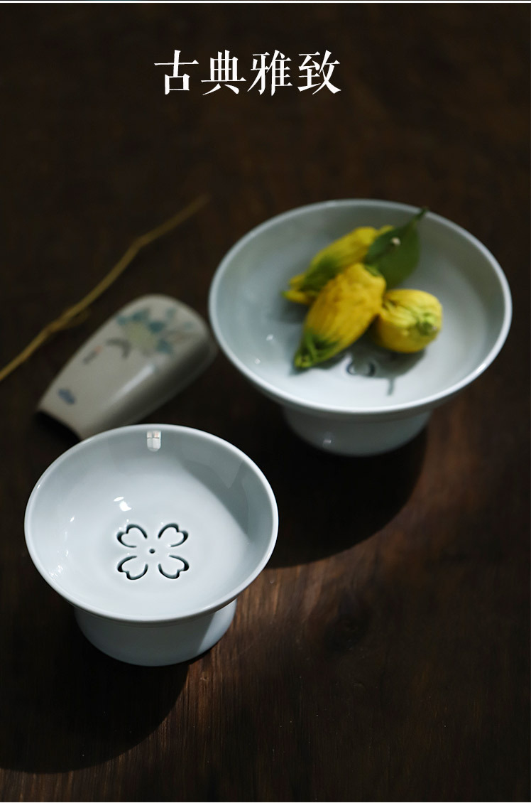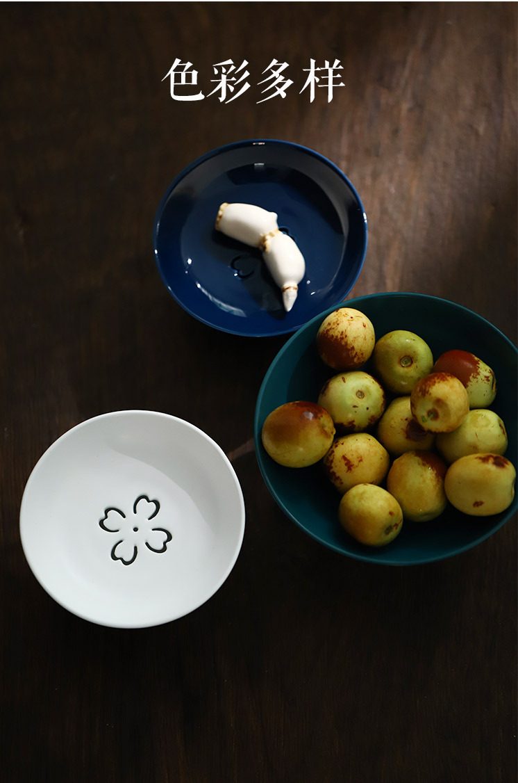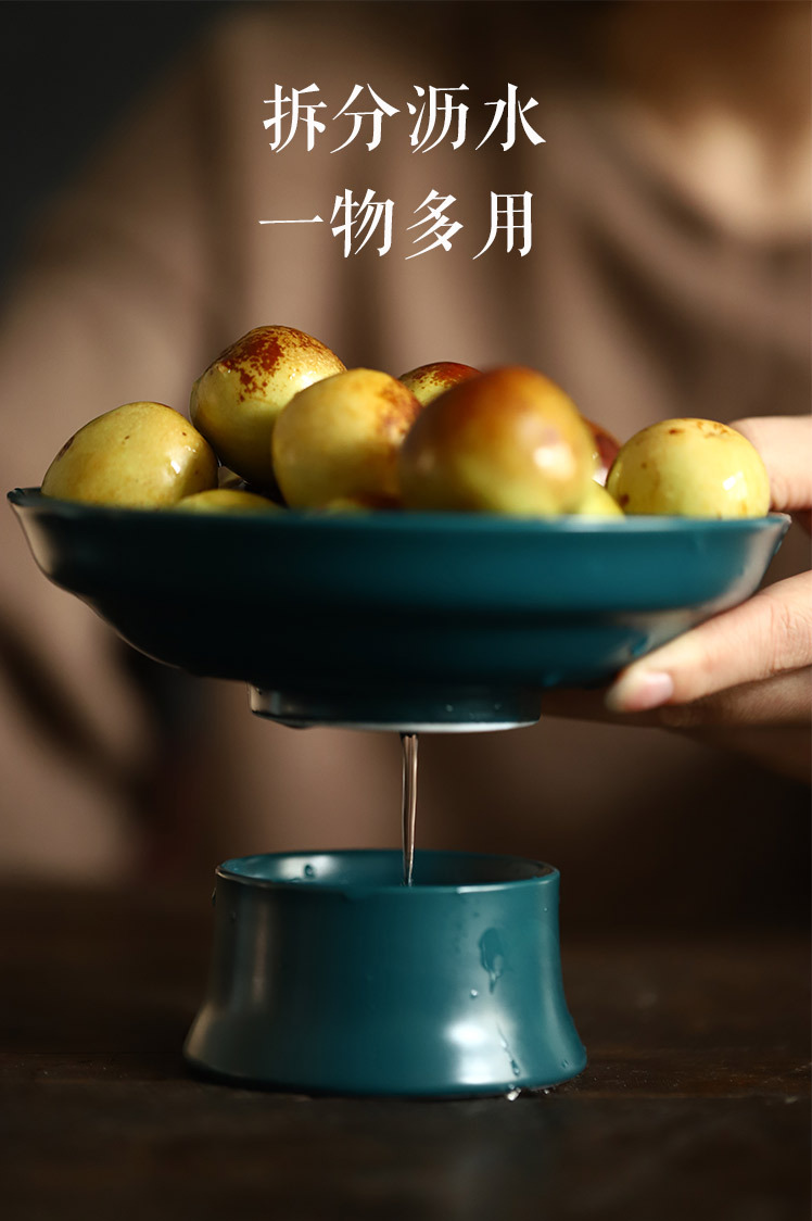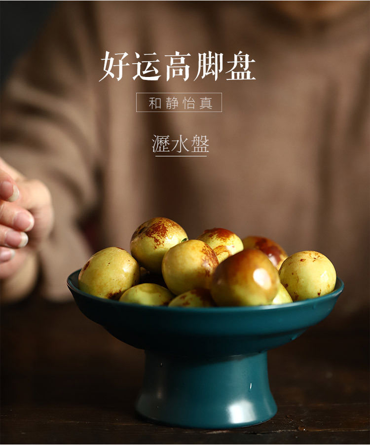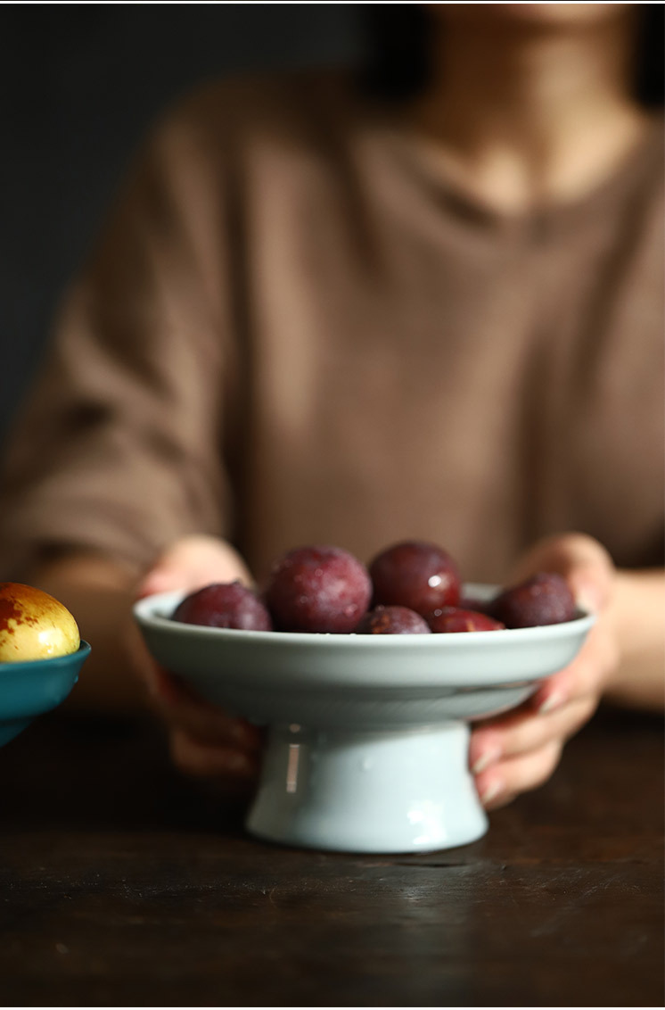 「新中式可沥水果盘」家用古典陶瓷高脚茶点盘 茶具点心干果碟零食托盘
