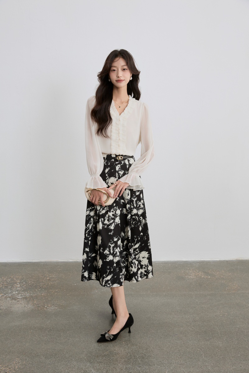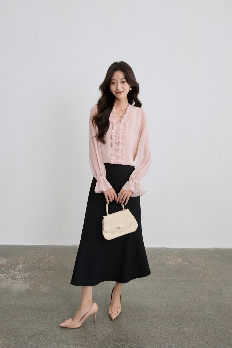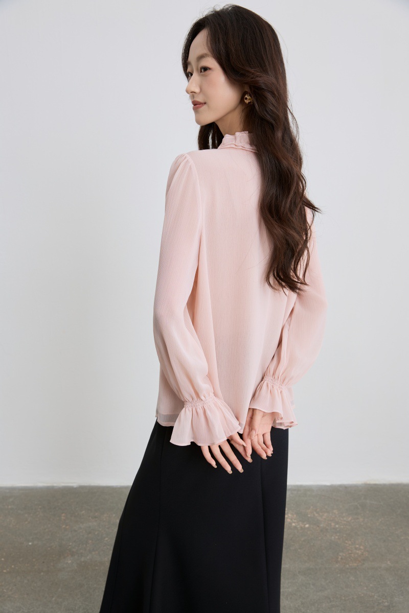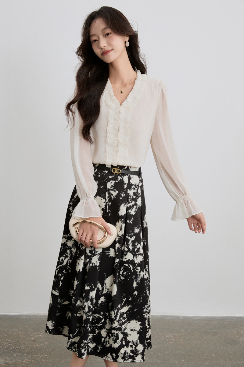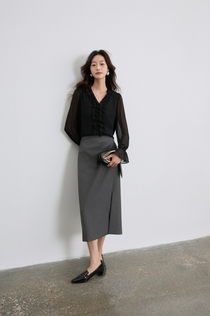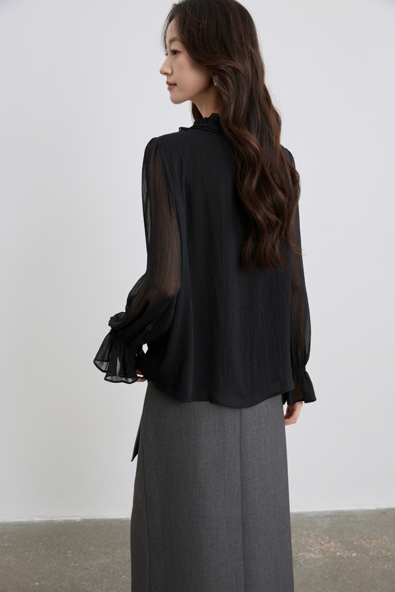 「自」全新升级【铂金会员165/天猫219/差价54】(70416)洛诗琳法式V领显瘦衬衫2025秋季新款花边拼接雪纺上衣女