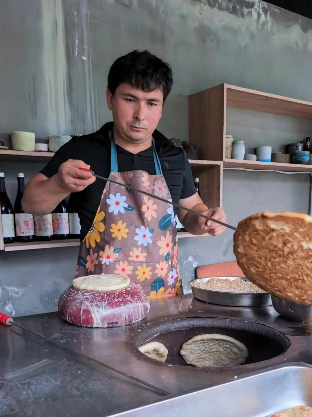 给我们制作烤馕的阿布师傅是新疆人,除了烤馕,他还有一门手艺——制作烤包子。
