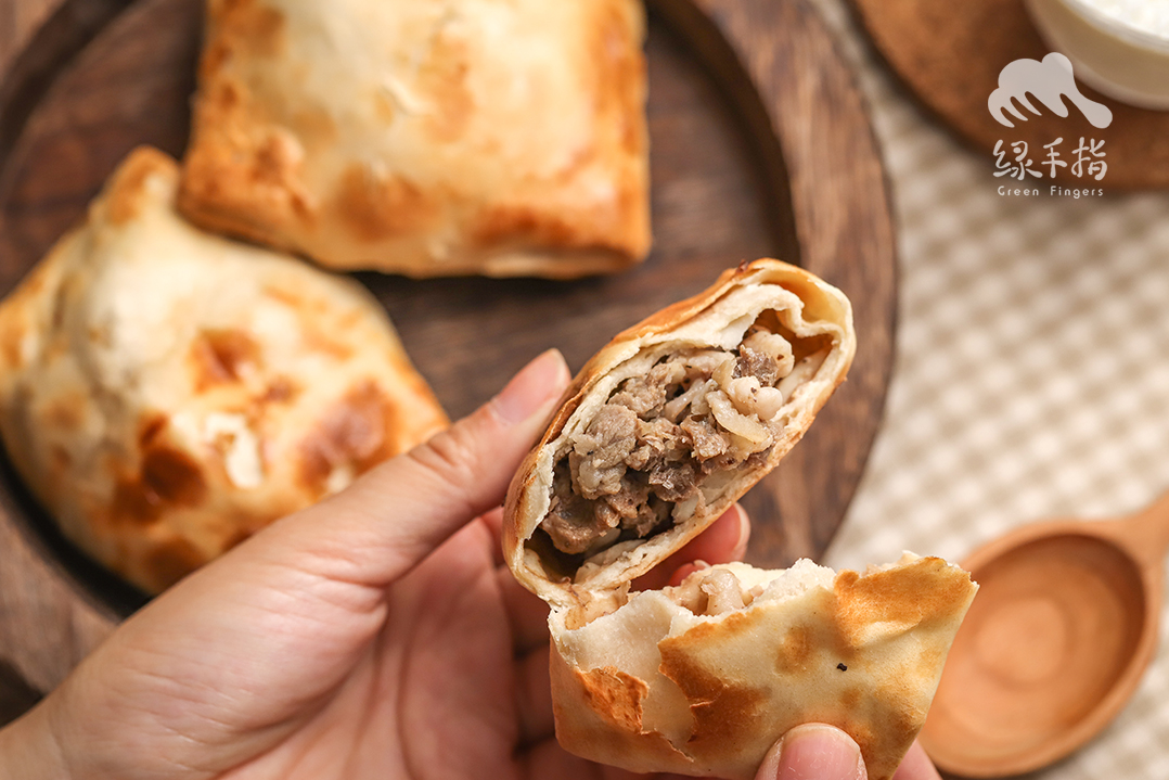 包子皮用死面制成,使用生态面粉加鸡蛋和面,牛肉馅加上洋葱碎,用湖盐、黑胡椒调味,用面皮包好馅料之后,放入炉中烤制,色泽金黄。
