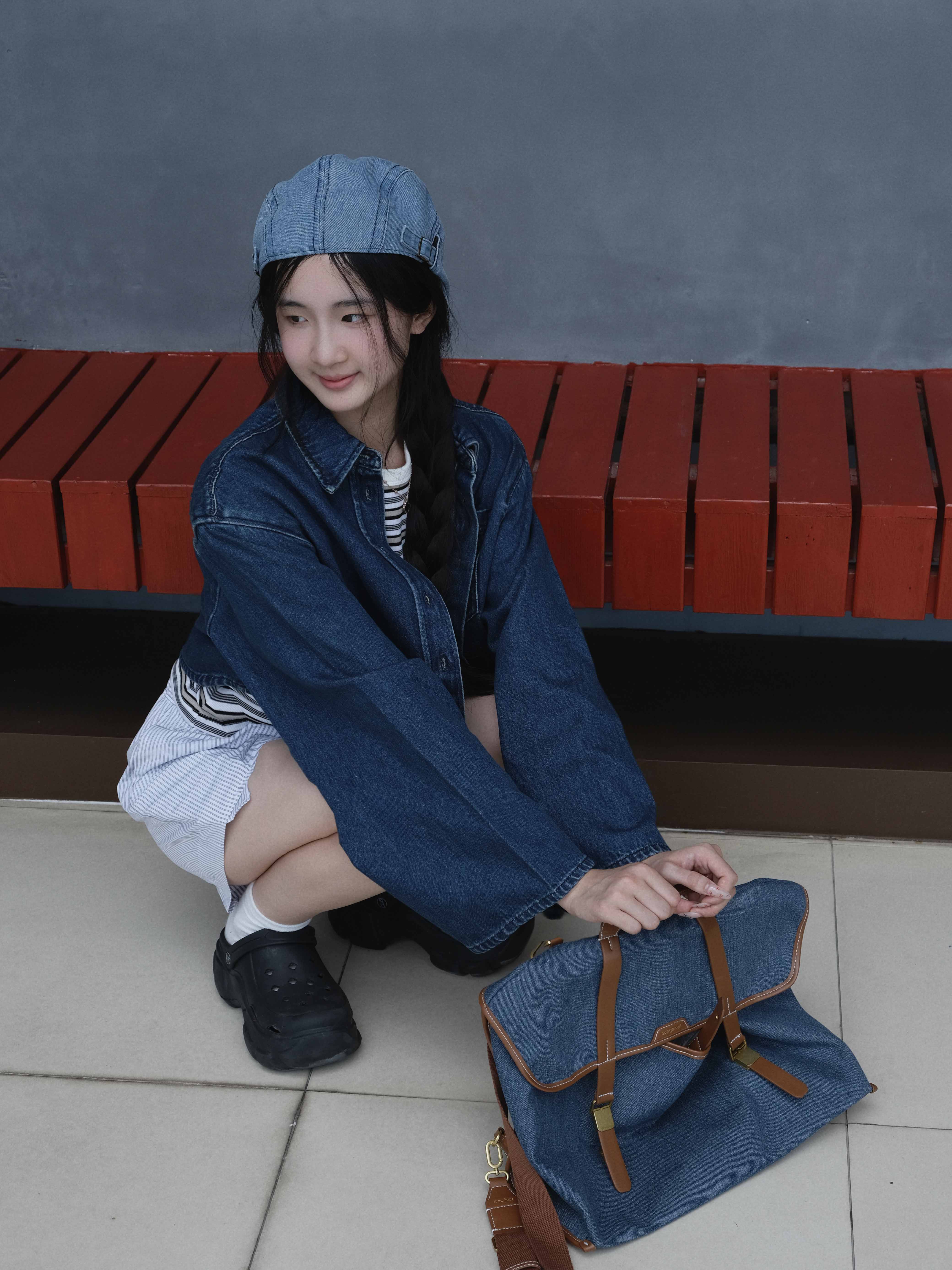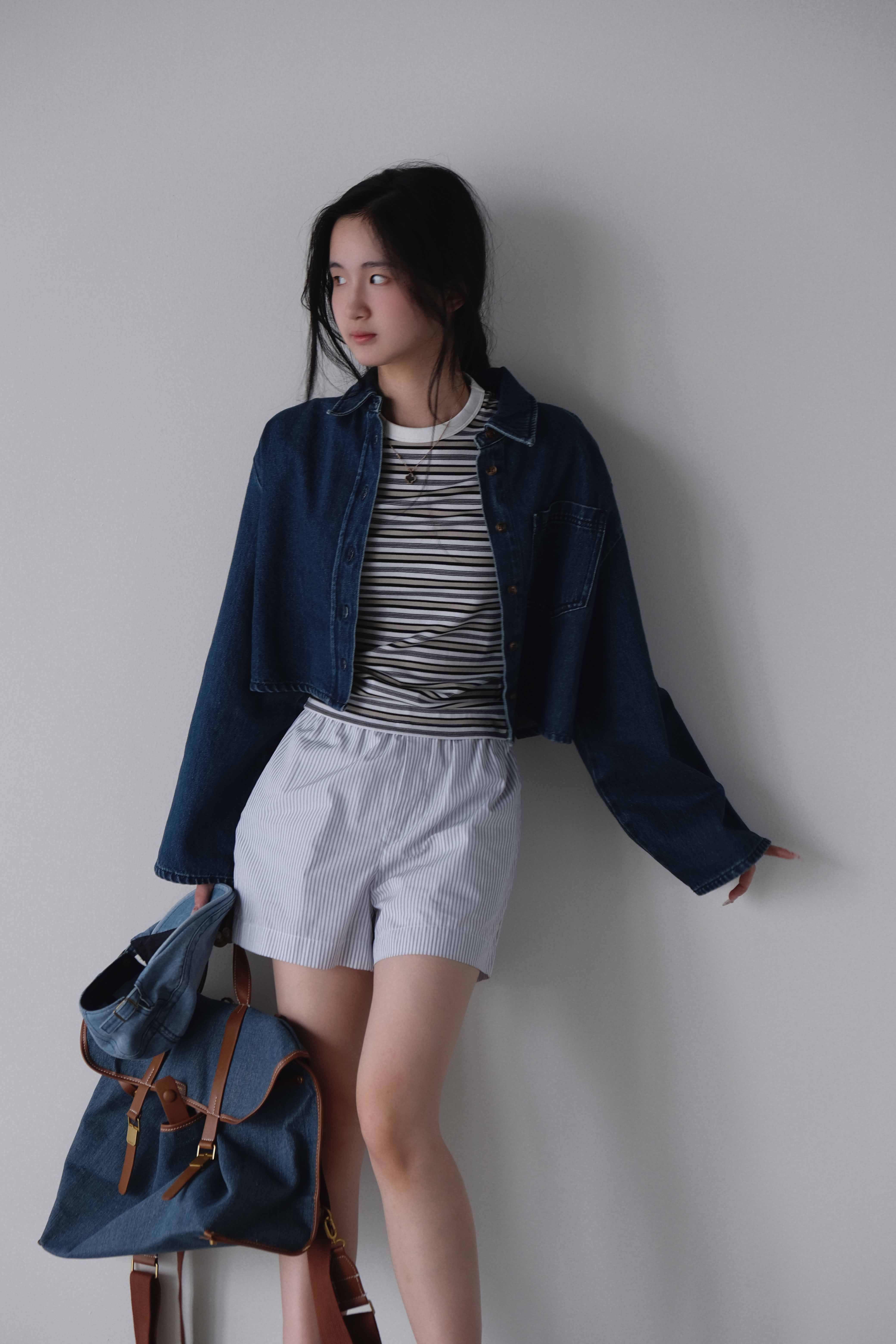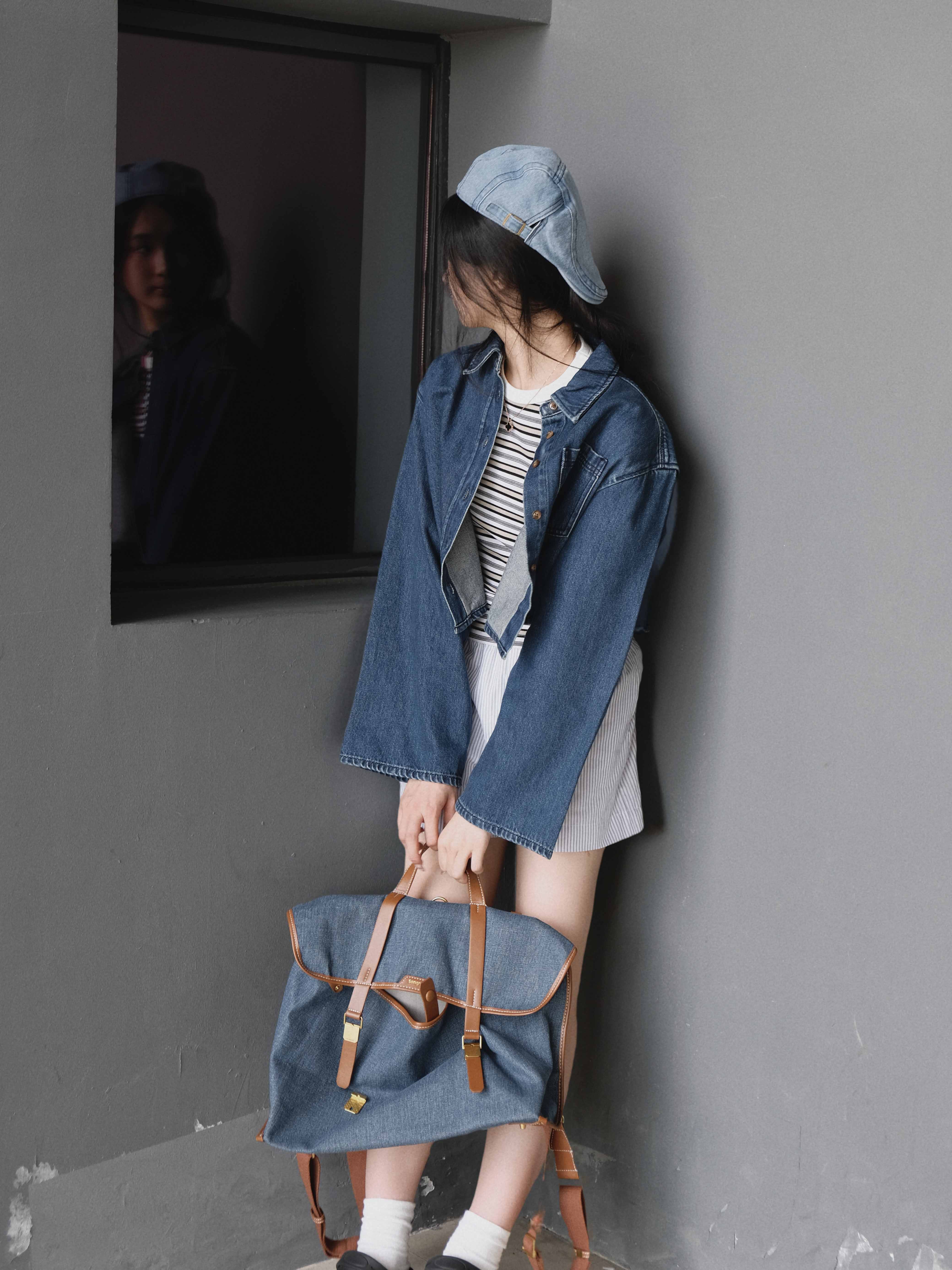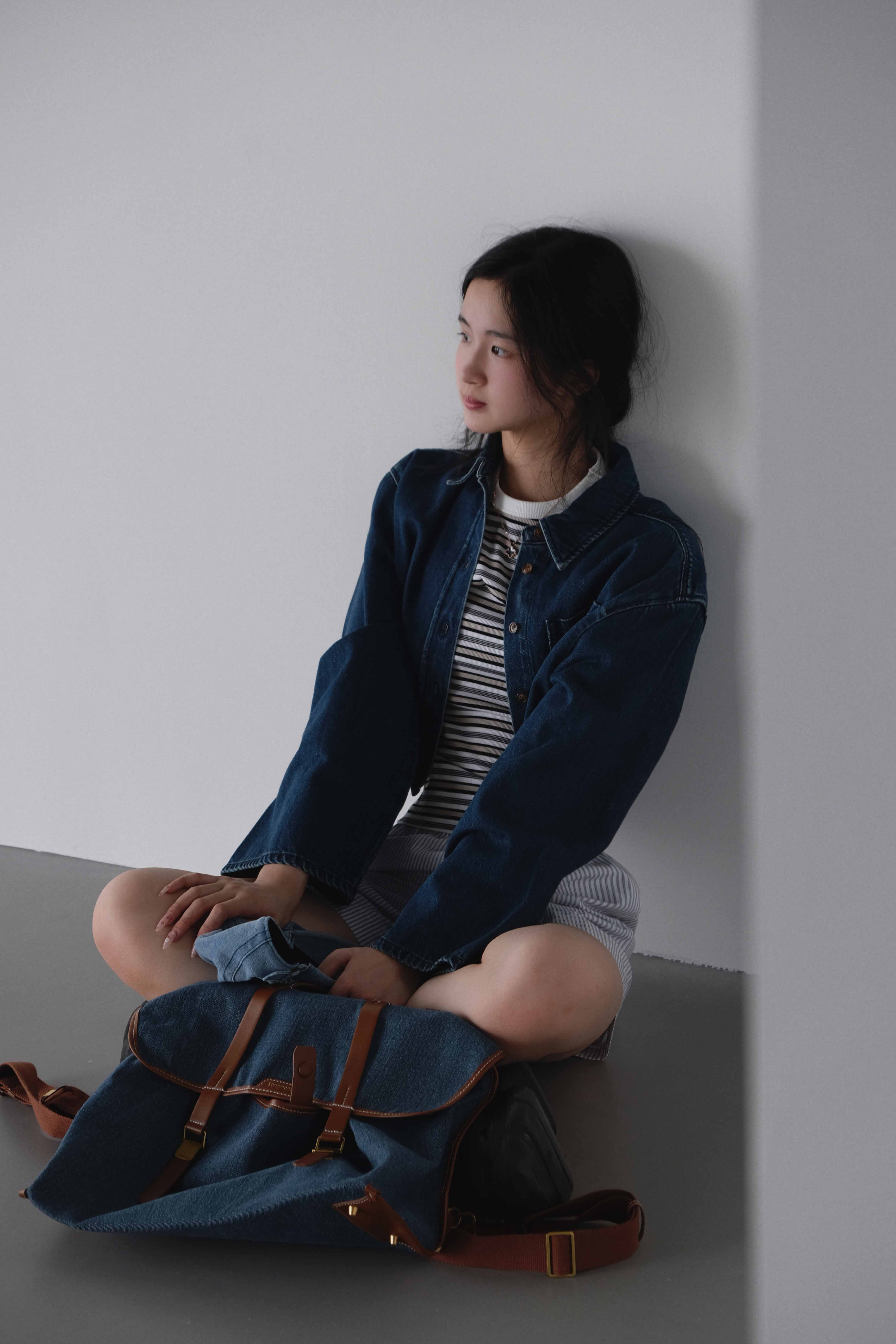 顺丰包邮14812洛诗琳2025春季新款复古Polo领短款牛仔外套158210
