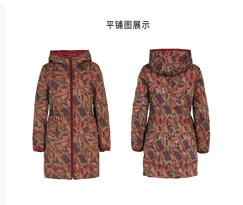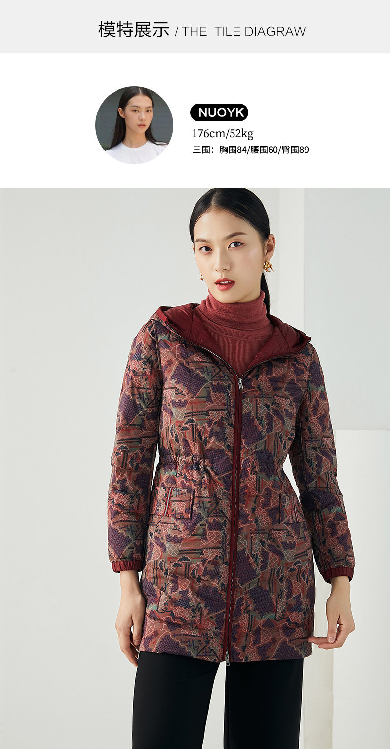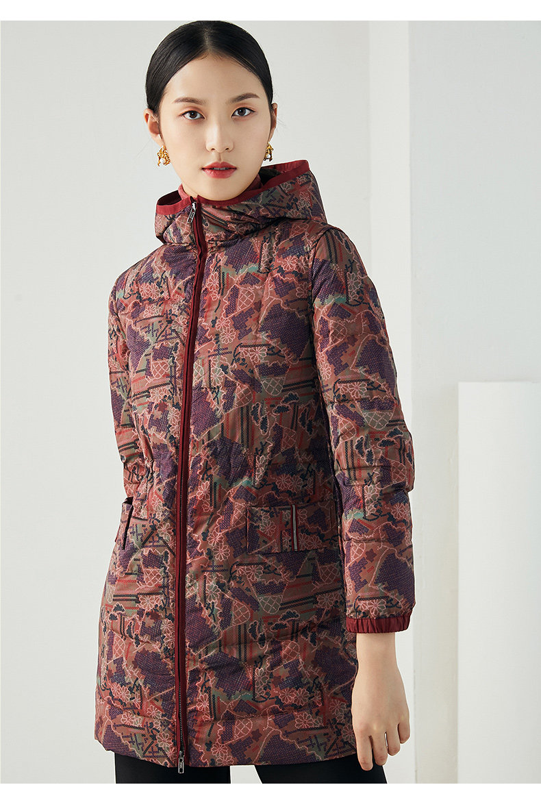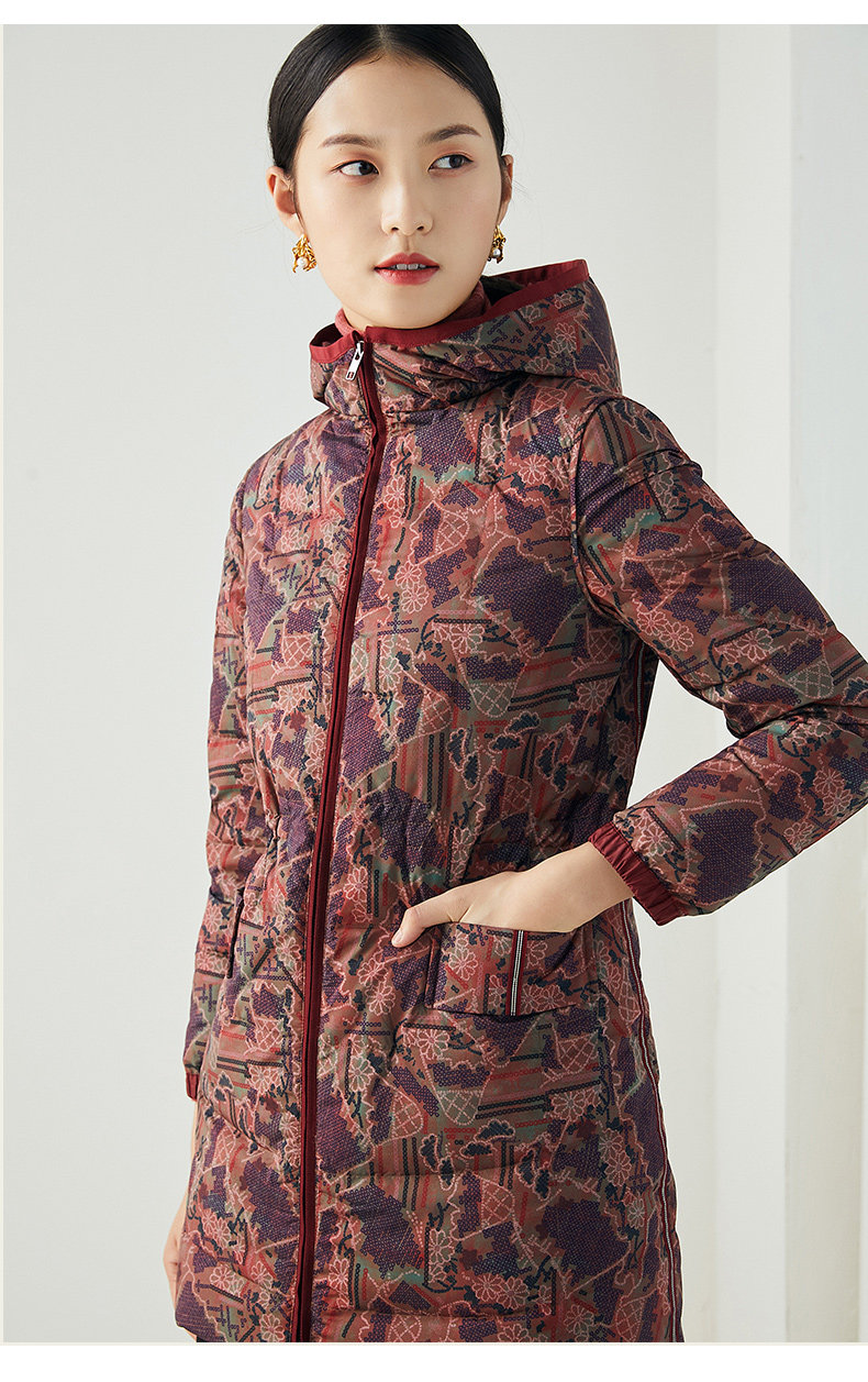 乔万尼串珠印花日式设计抗寒保暖双面穿中长款羽绒服ES4T417