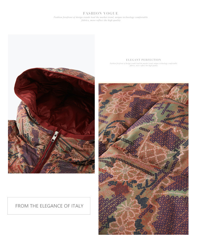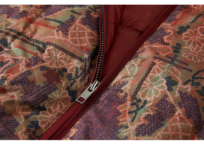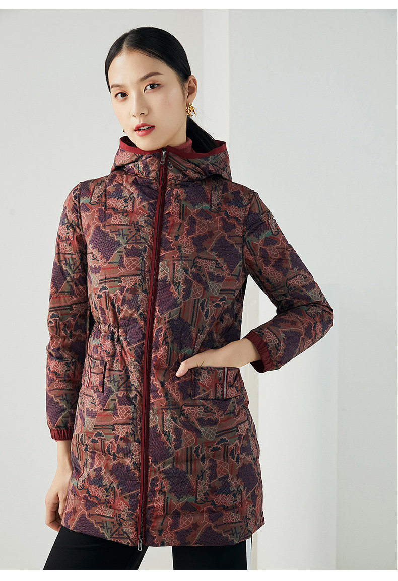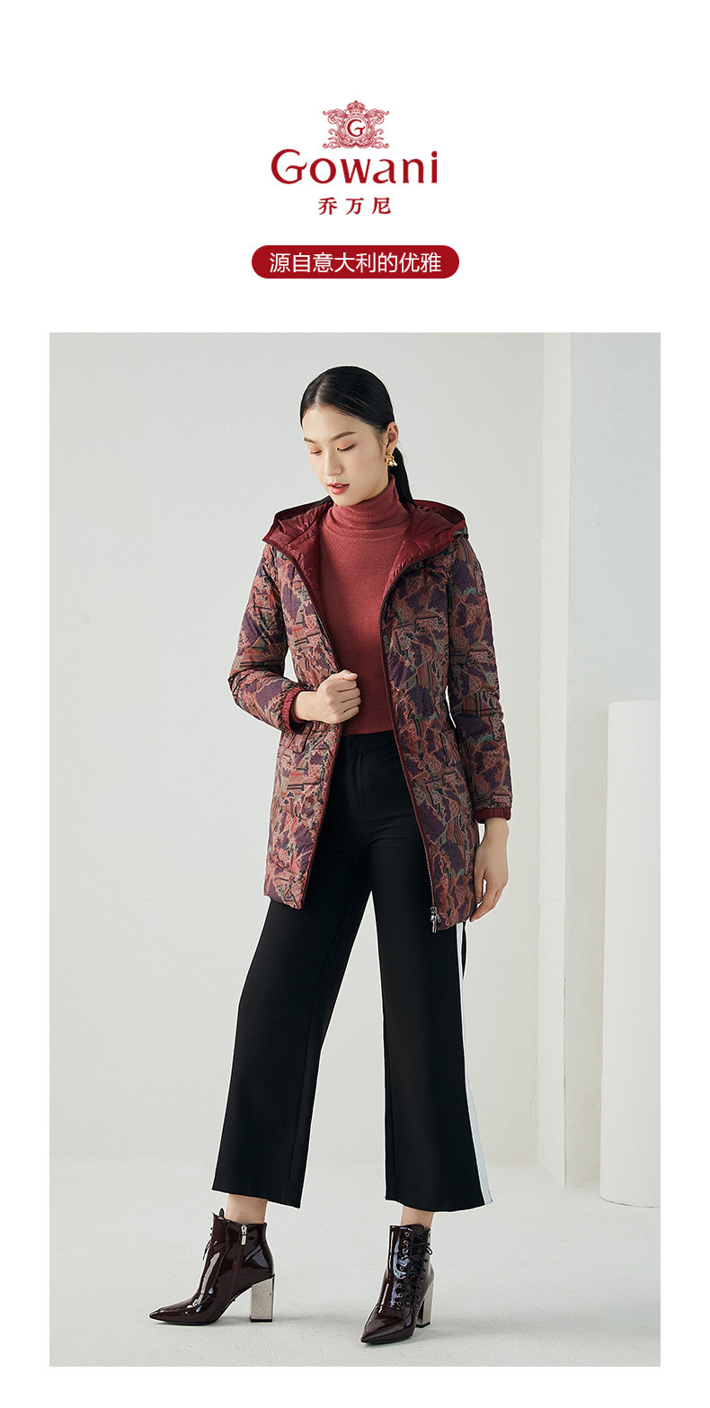 乔万尼串珠印花日式设计抗寒保暖双面穿中长款羽绒服ES4T417