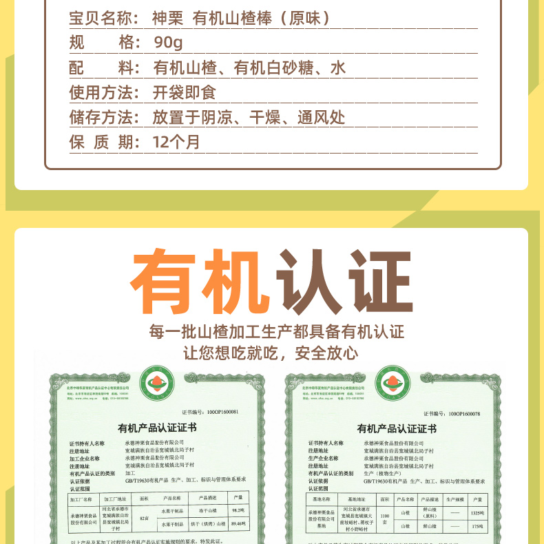 正耕 神栗有机山楂棒棒糖 原味90g*3